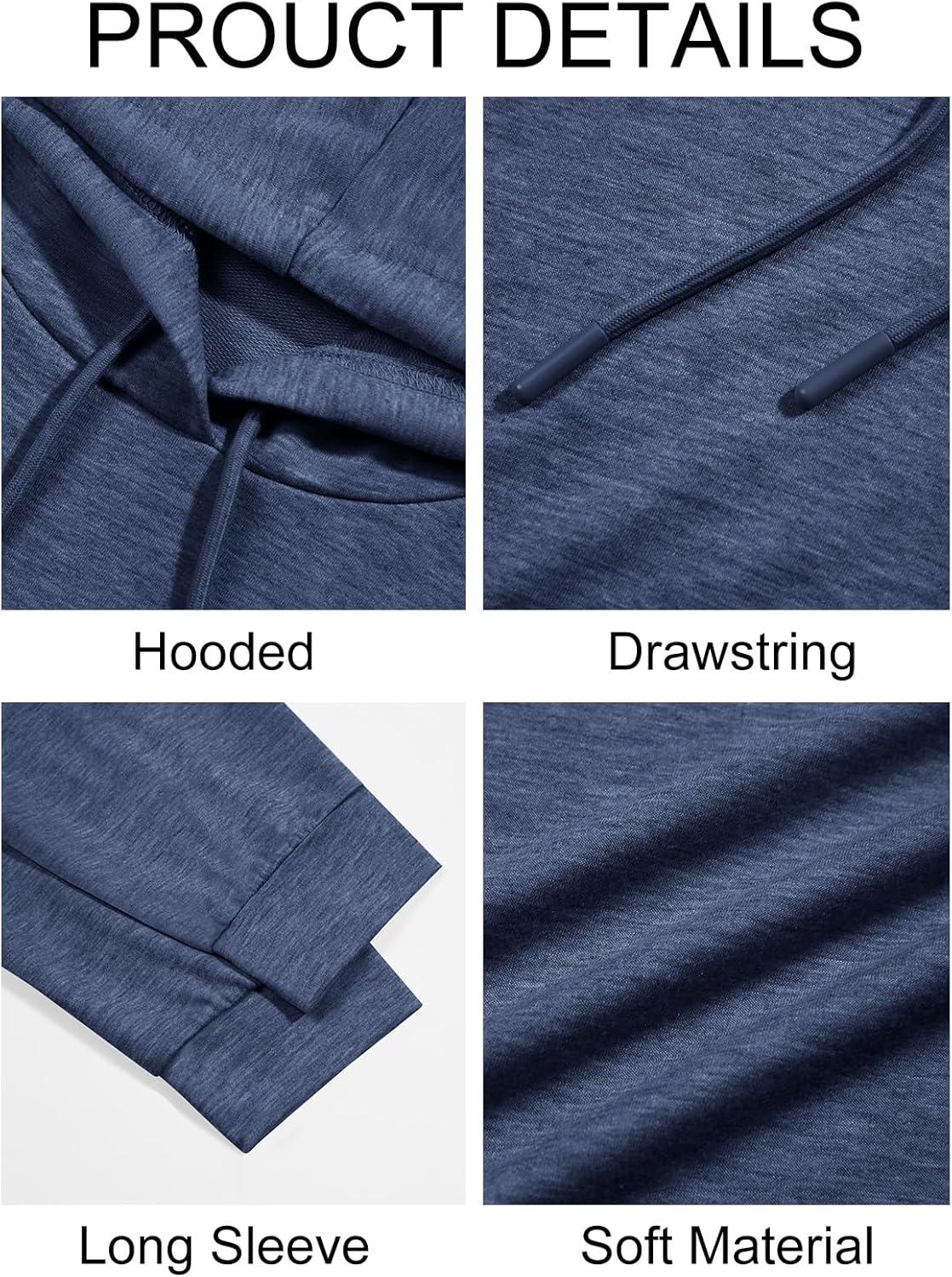 Runcati Mens Lightweight Hoodies Pullover Long Sleeve Casual Workout Athletic Shirt Hooded Sweatshirts(Navy)