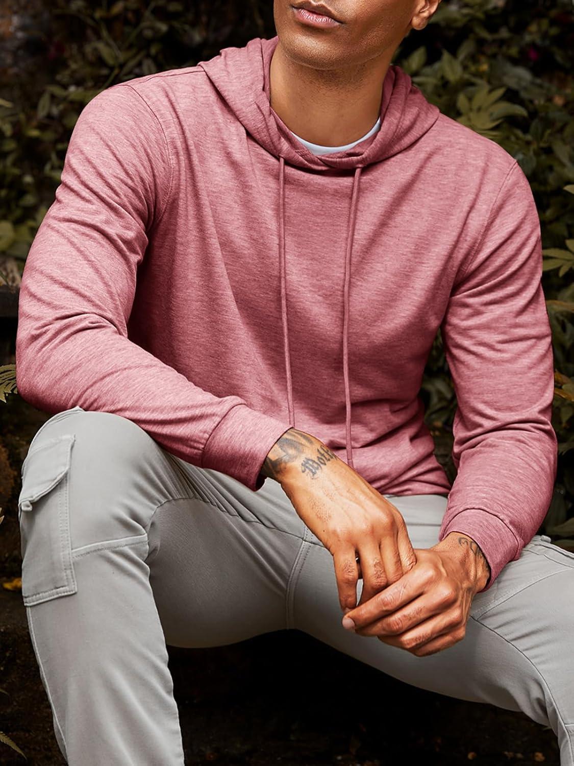 Runcati Mens Lightweight Hoodies Pullover Long Sleeve Casual Workout Athletic Shirt Hooded Sweatshirts(Wine Red)