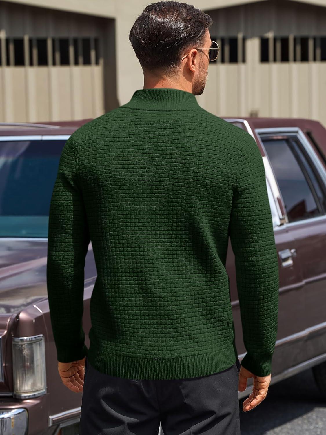 Runcati Mens Quarter Zip Pullover Sweaters Mock Neck Slim Fit Lightweight Pullover Waffle Knit Casual Polo Sweater(Army Green)