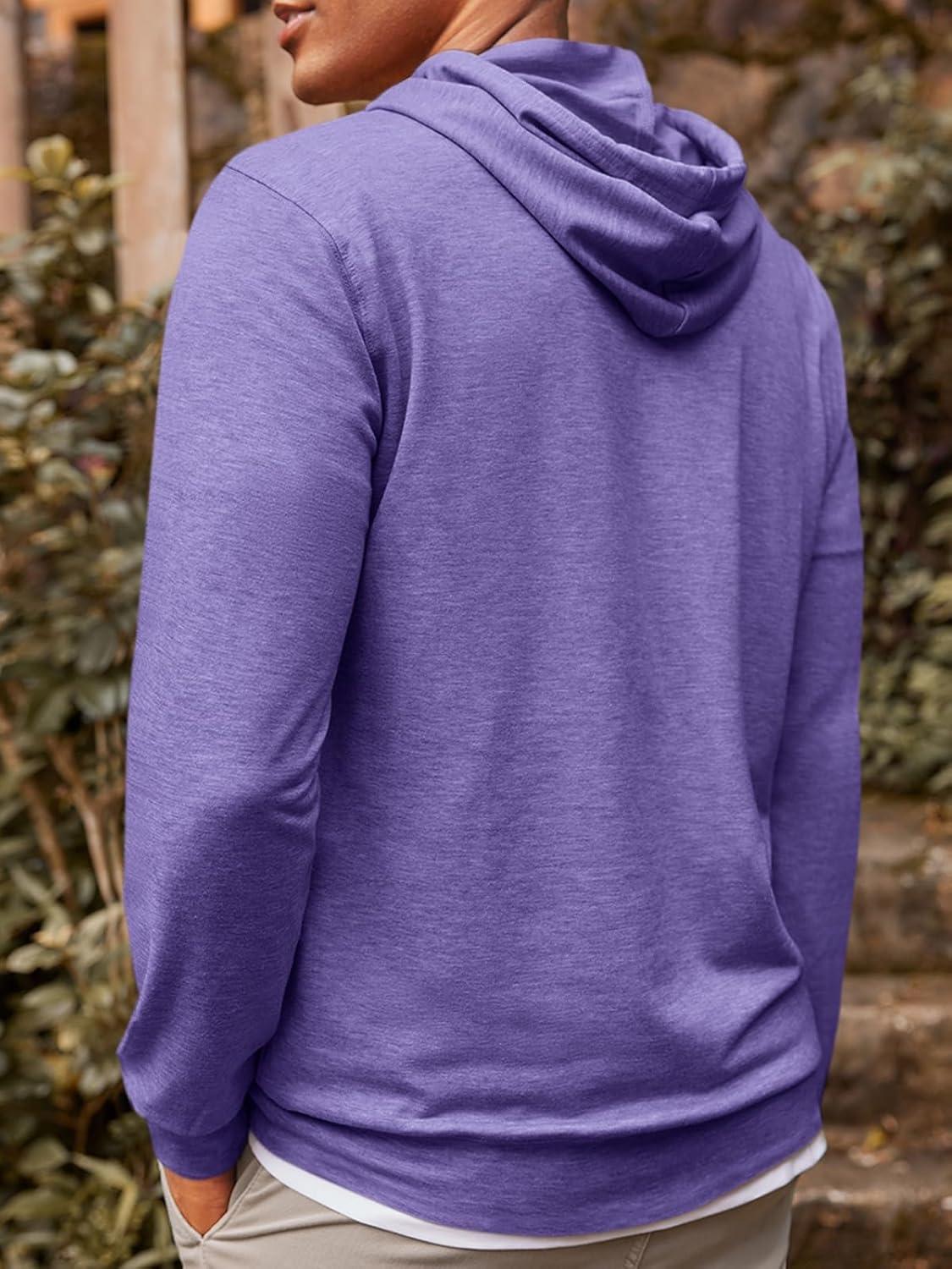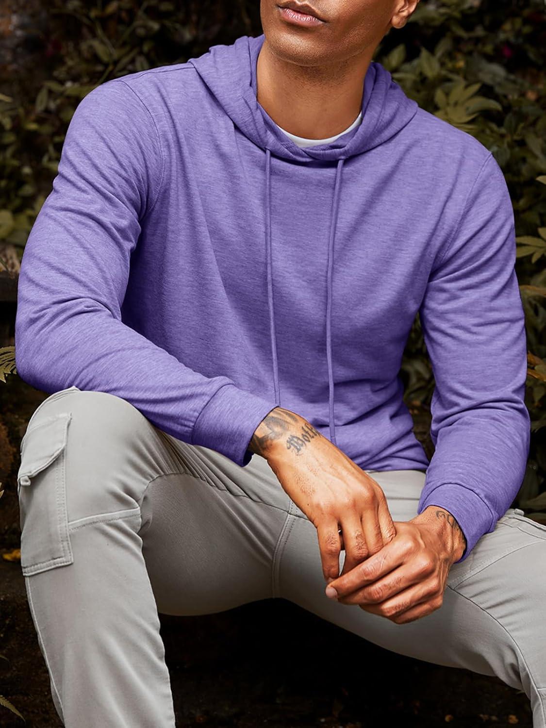 Runcati Mens Lightweight Hoodies Pullover Long Sleeve Casual Workout Athletic Shirt Hooded Sweatshirts(Violet)
