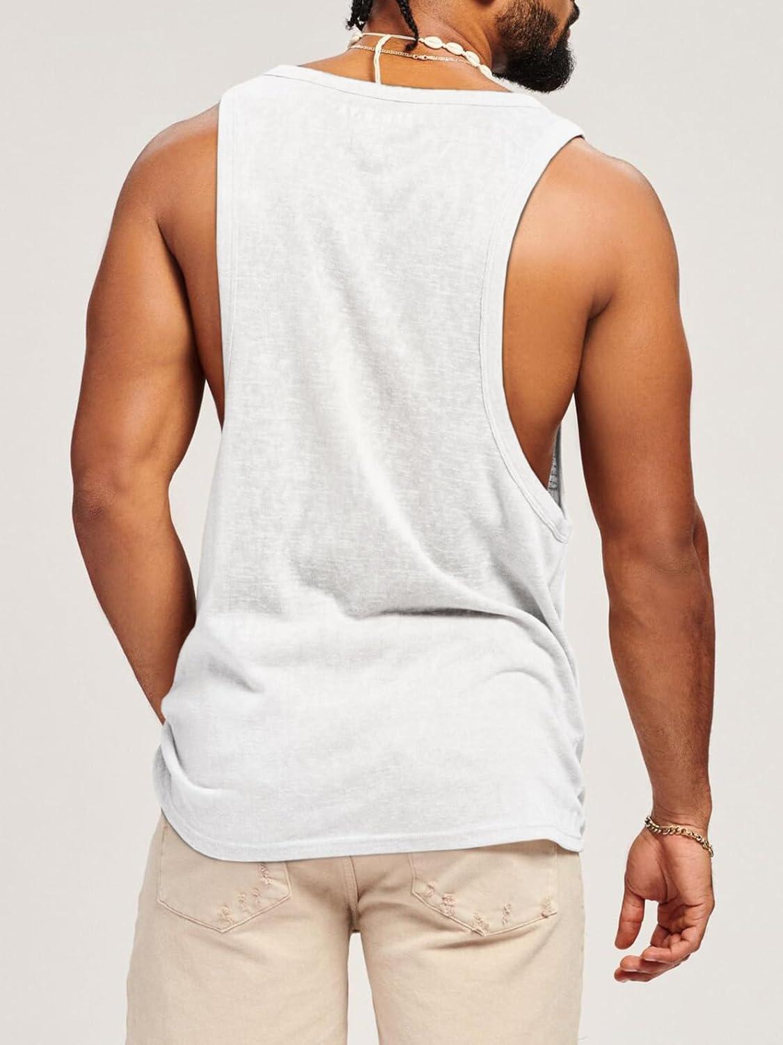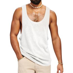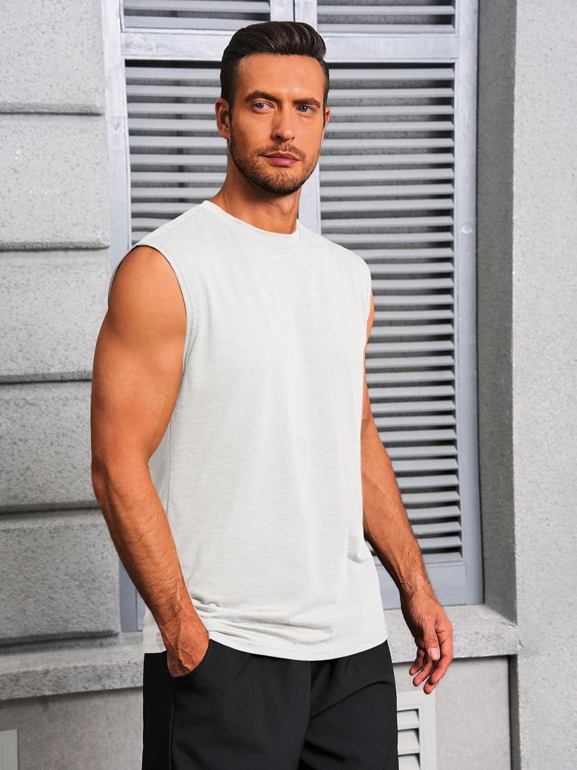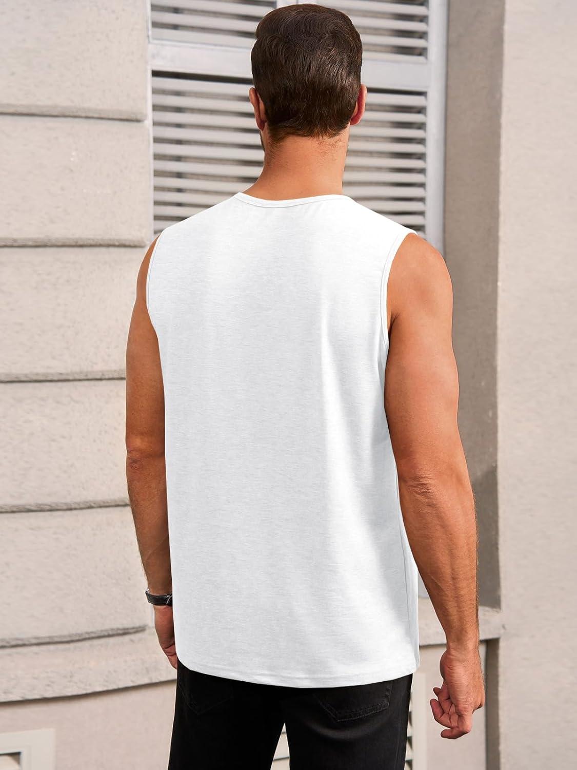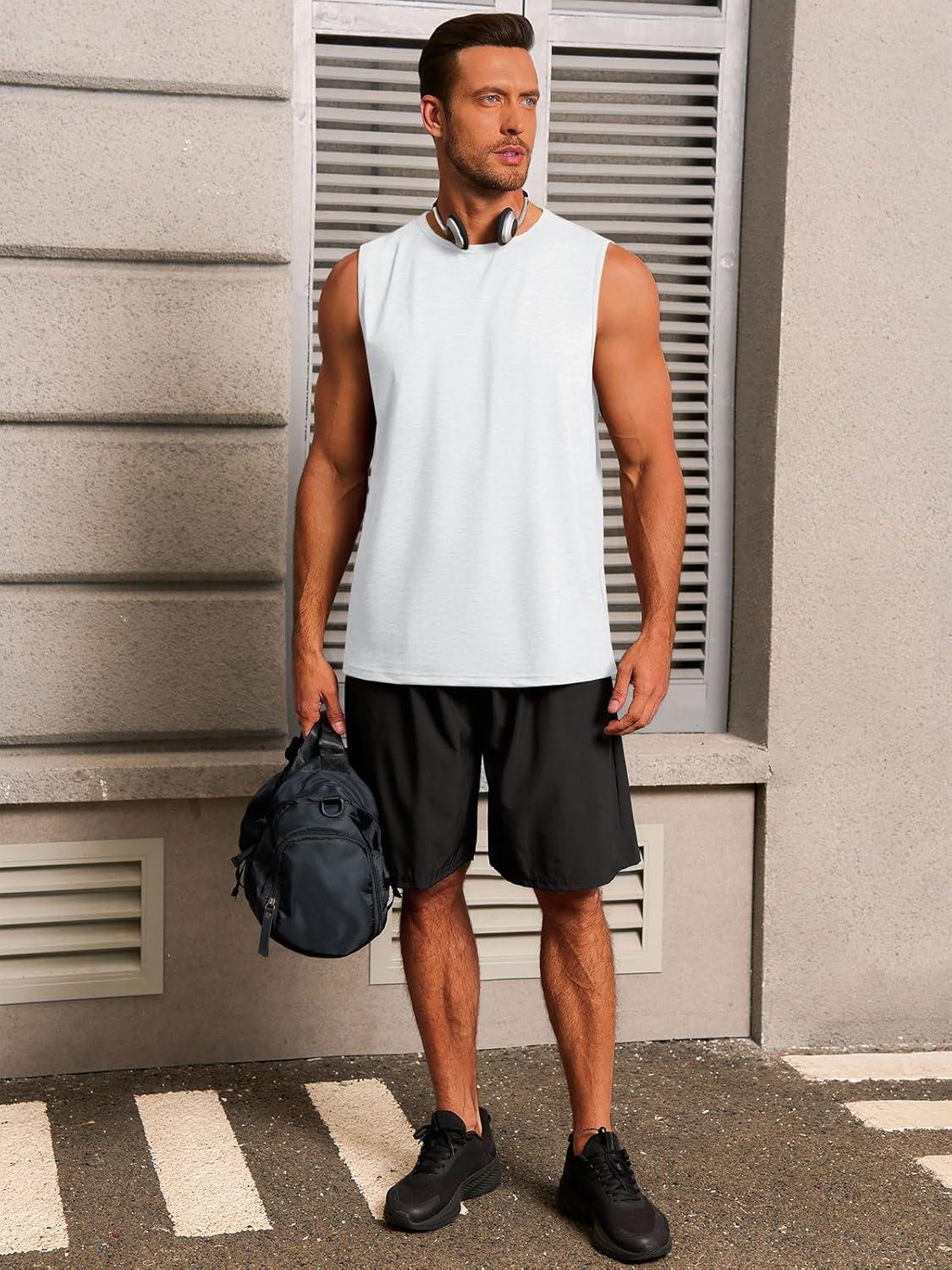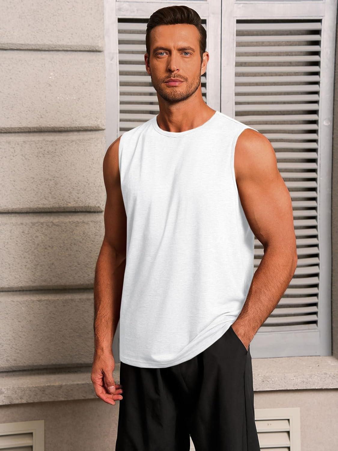 • Runcati Mens Workout Tank Tops Sleeveless Gym Muscle Athletic T Shirts Casual Summer Beach Tops(White)