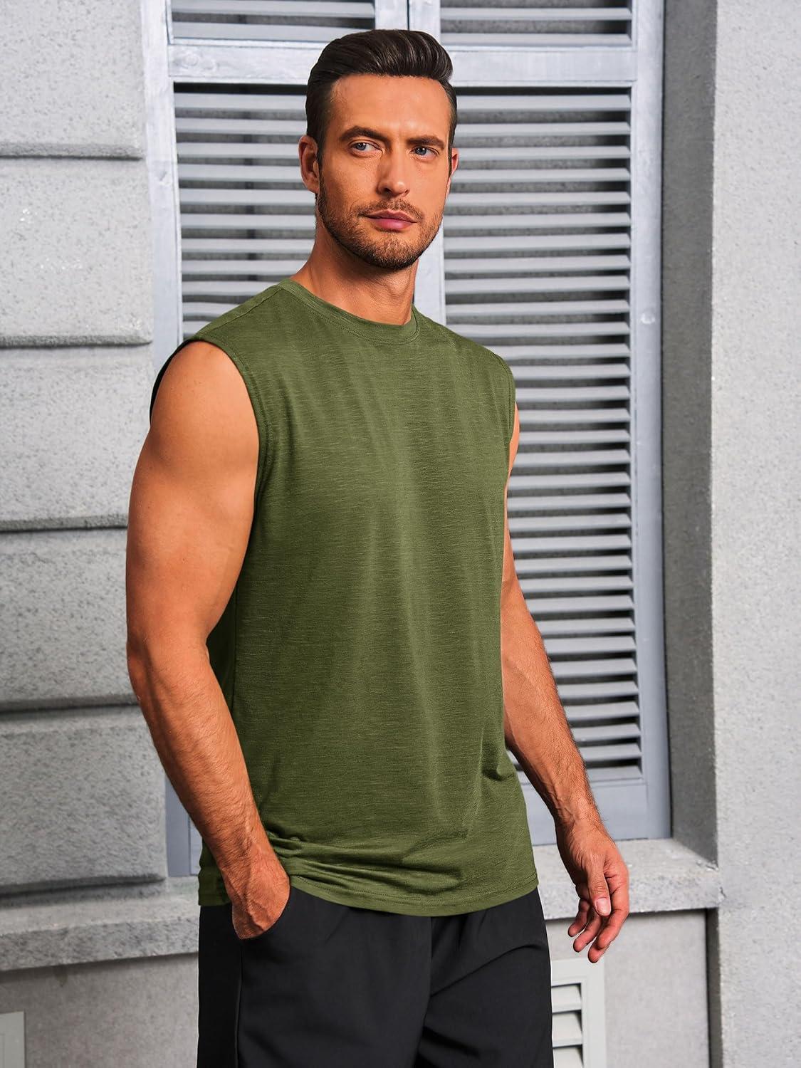 Runcati Mens Workout Tank Tops Sleeveless Shirt Muscle Gym Bodybuilding Fitness Training Loose Fit T Shirts(Army Green)