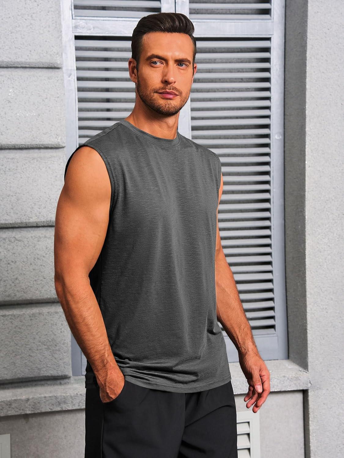 Runcati Mens Workout Tank Tops Sleeveless Shirt Muscle Gym Bodybuilding Fitness Training Loose Fit T Shirts(Dark Grey)