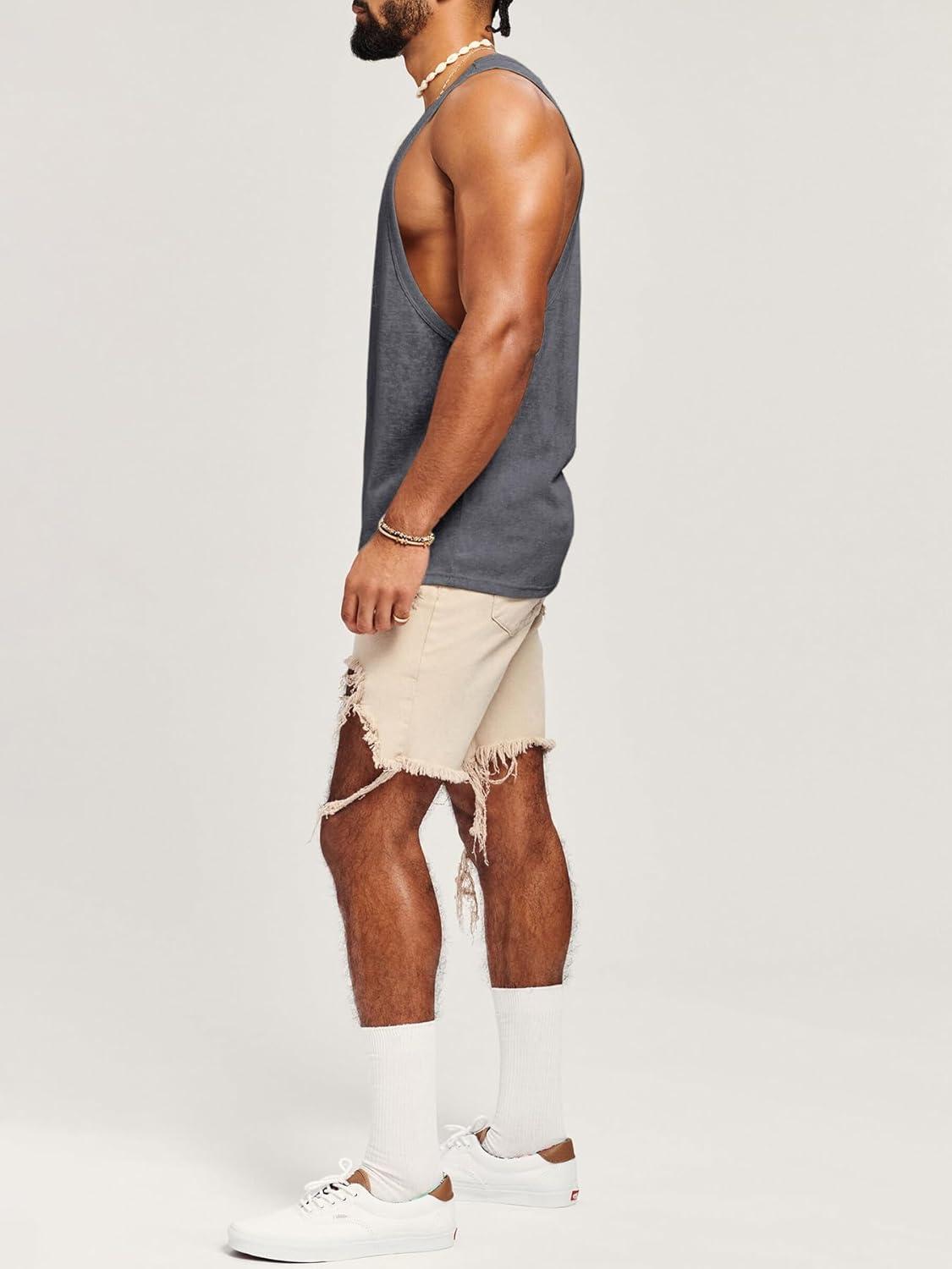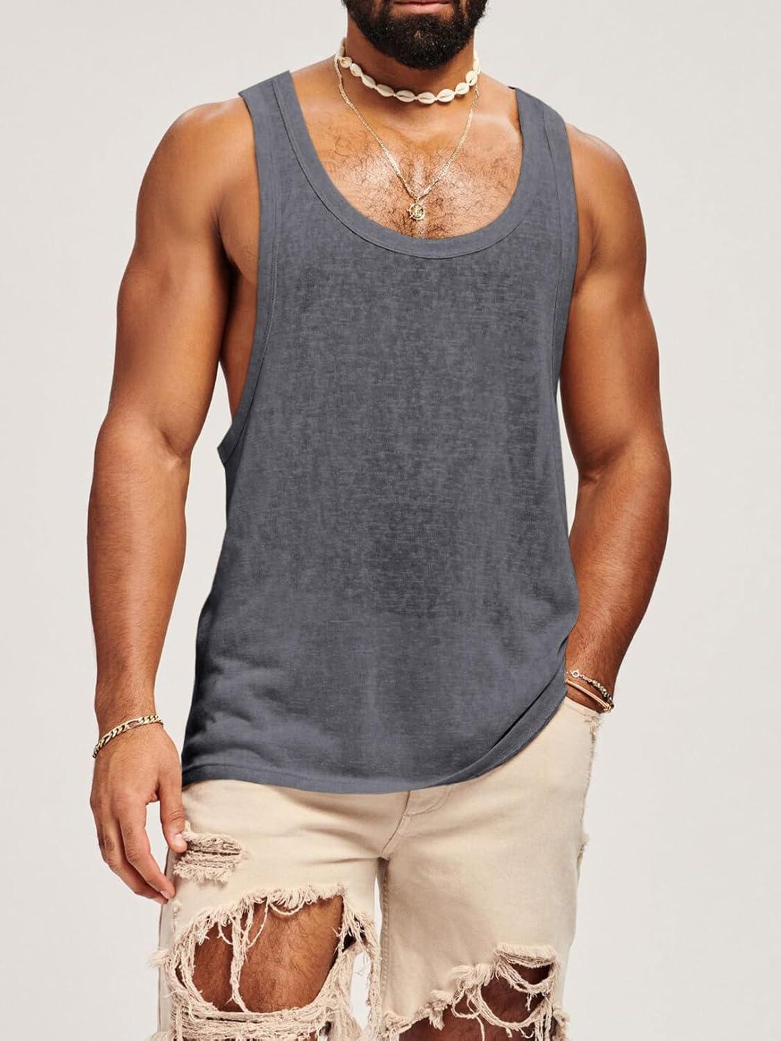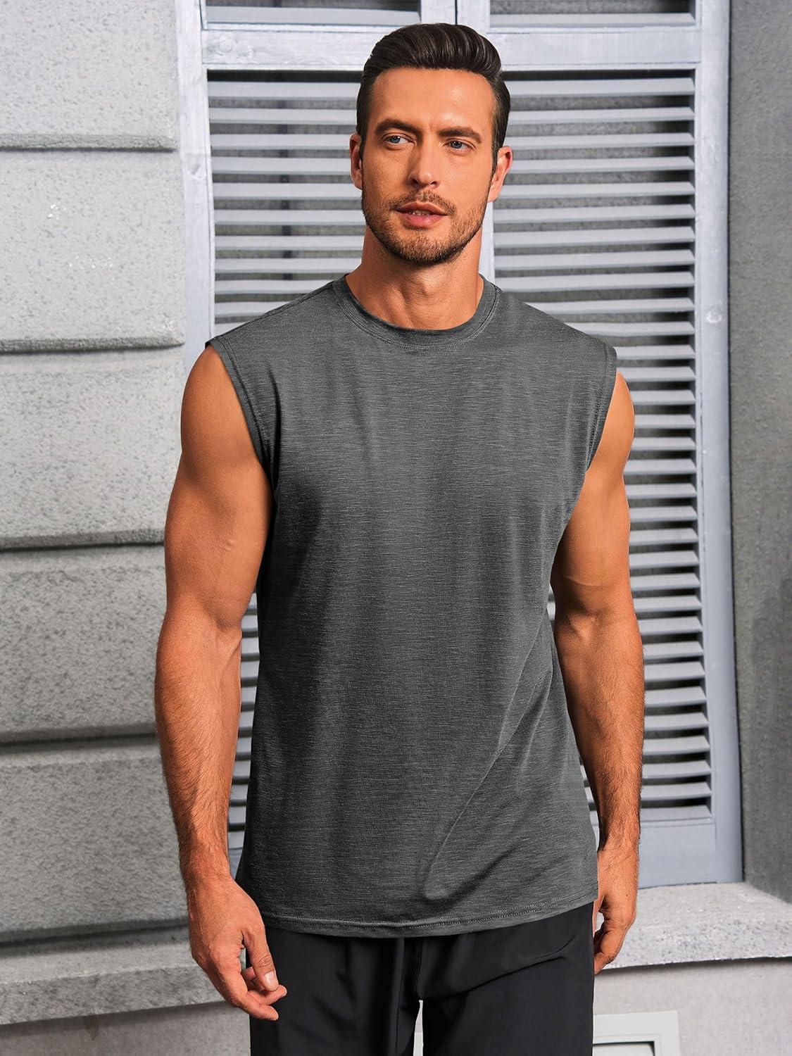 • Runcati Mens Workout Tank Tops Sleeveless Muscle Cut Off Shirt Athletic Gym T Shirts(Dark Gray)
