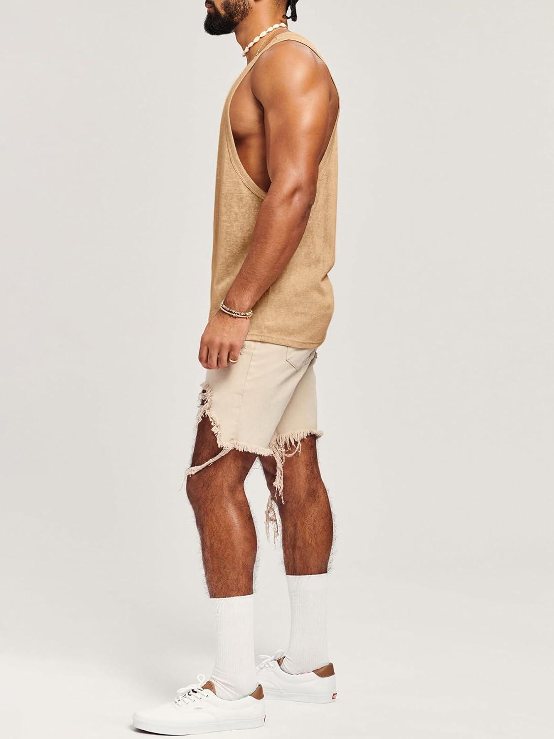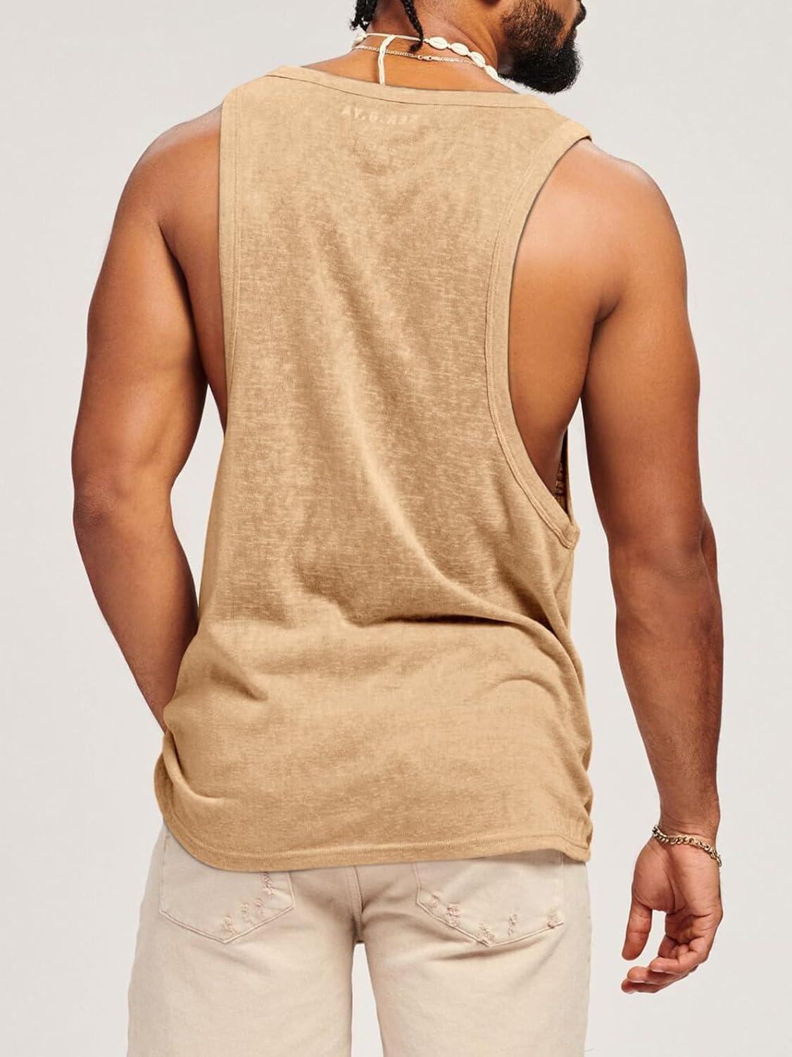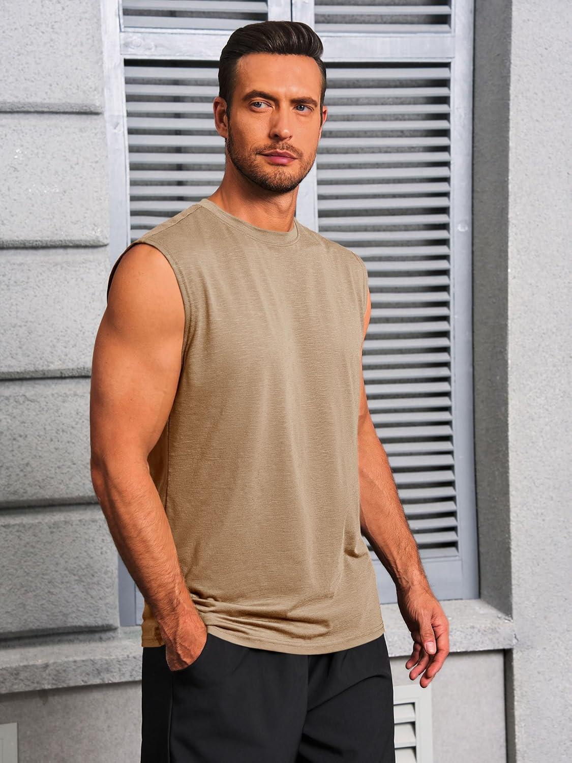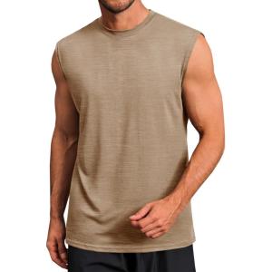 Runcati Mens Workout Tank Tops Sleeveless Muscle Cut Off Shirt Athletic Gym T Shirts(Khaki)