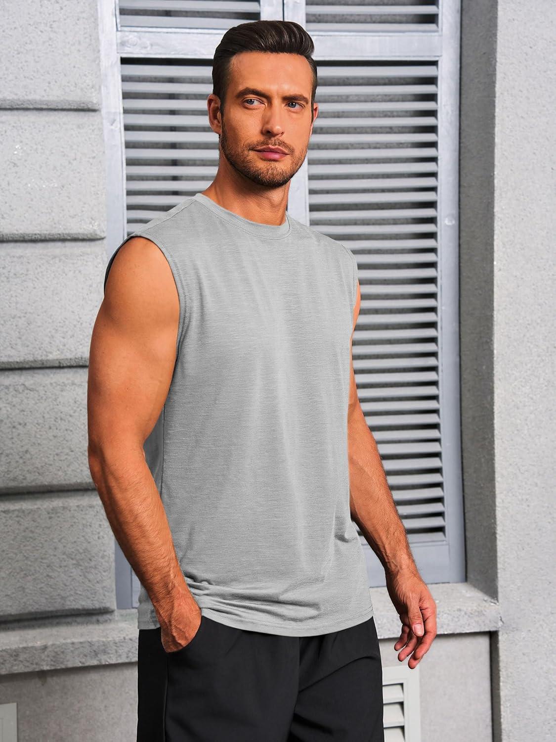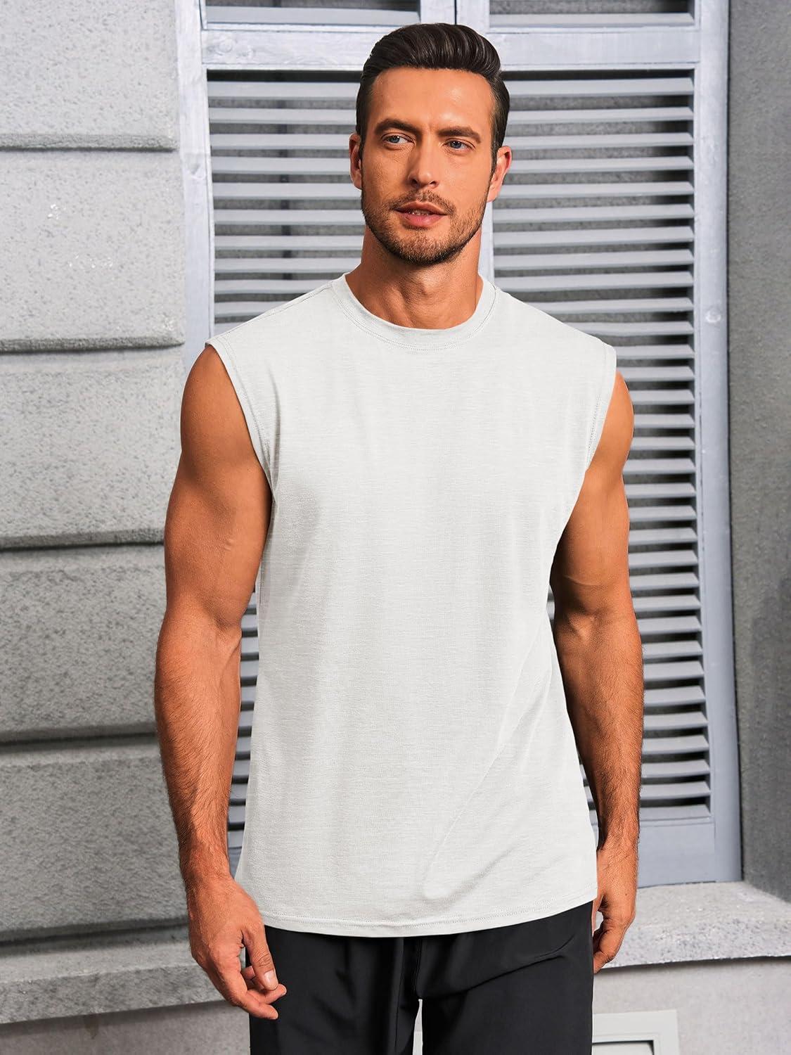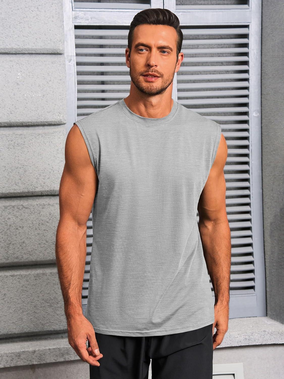 • Runcati Mens Workout Tank Tops Sleeveless Muscle Cut Off Shirt Athletic Gym T Shirts(Light Gray)