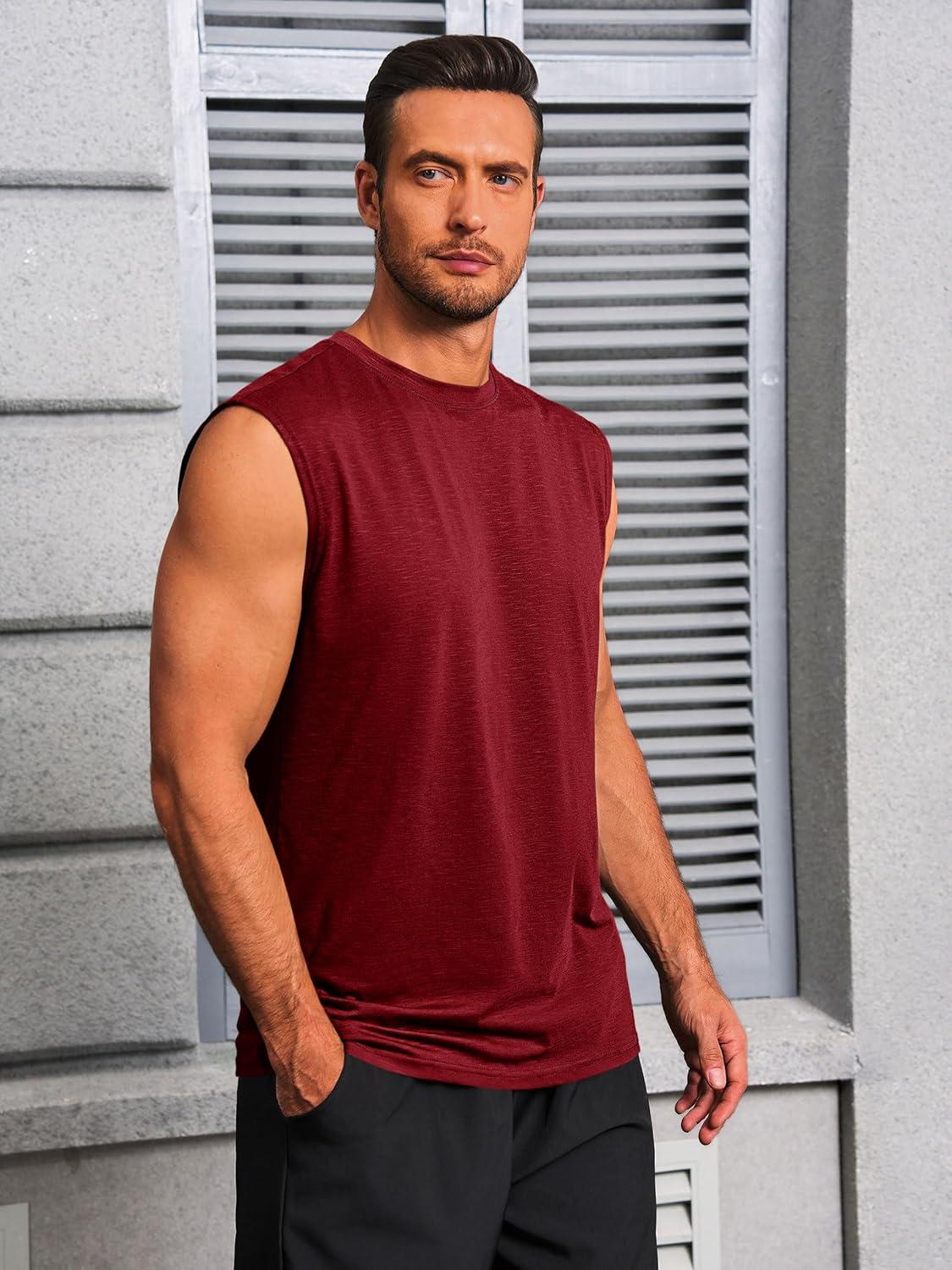 Runcati Mens Workout Tank Tops Sleeveless Shirt Muscle Gym Bodybuilding Fitness Training Loose Fit T Shirts(Burgundy)