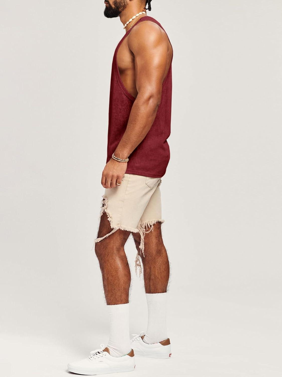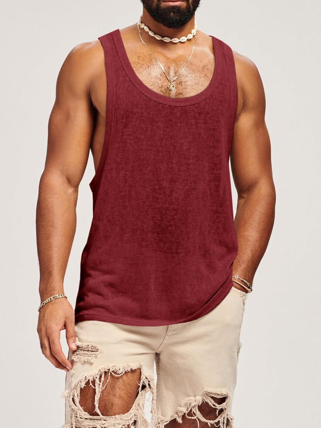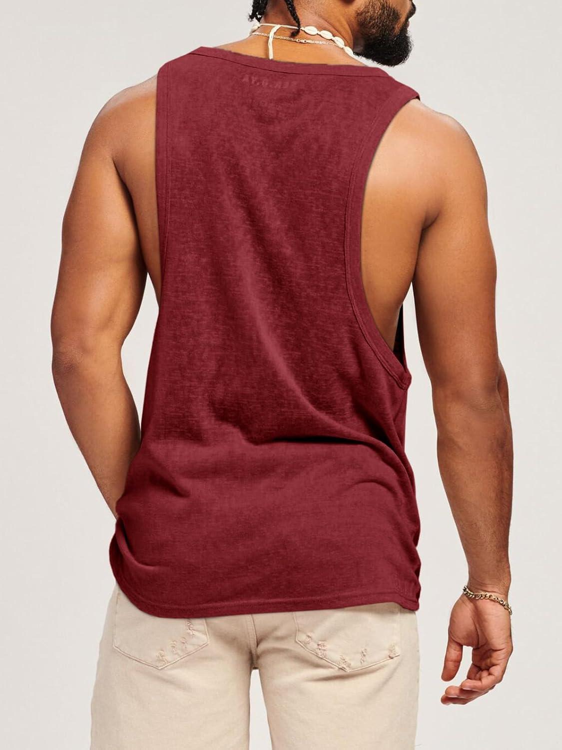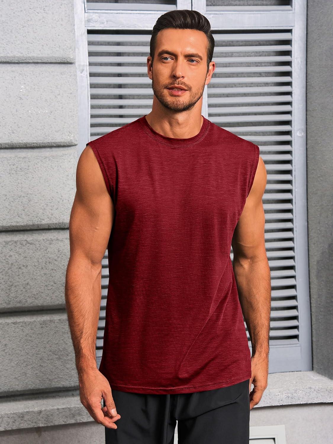 • Runcati Mens Workout Tank Tops Sleeveless Muscle Cut Off Shirt Athletic Gym T Shirts(Wine Red)