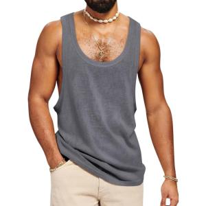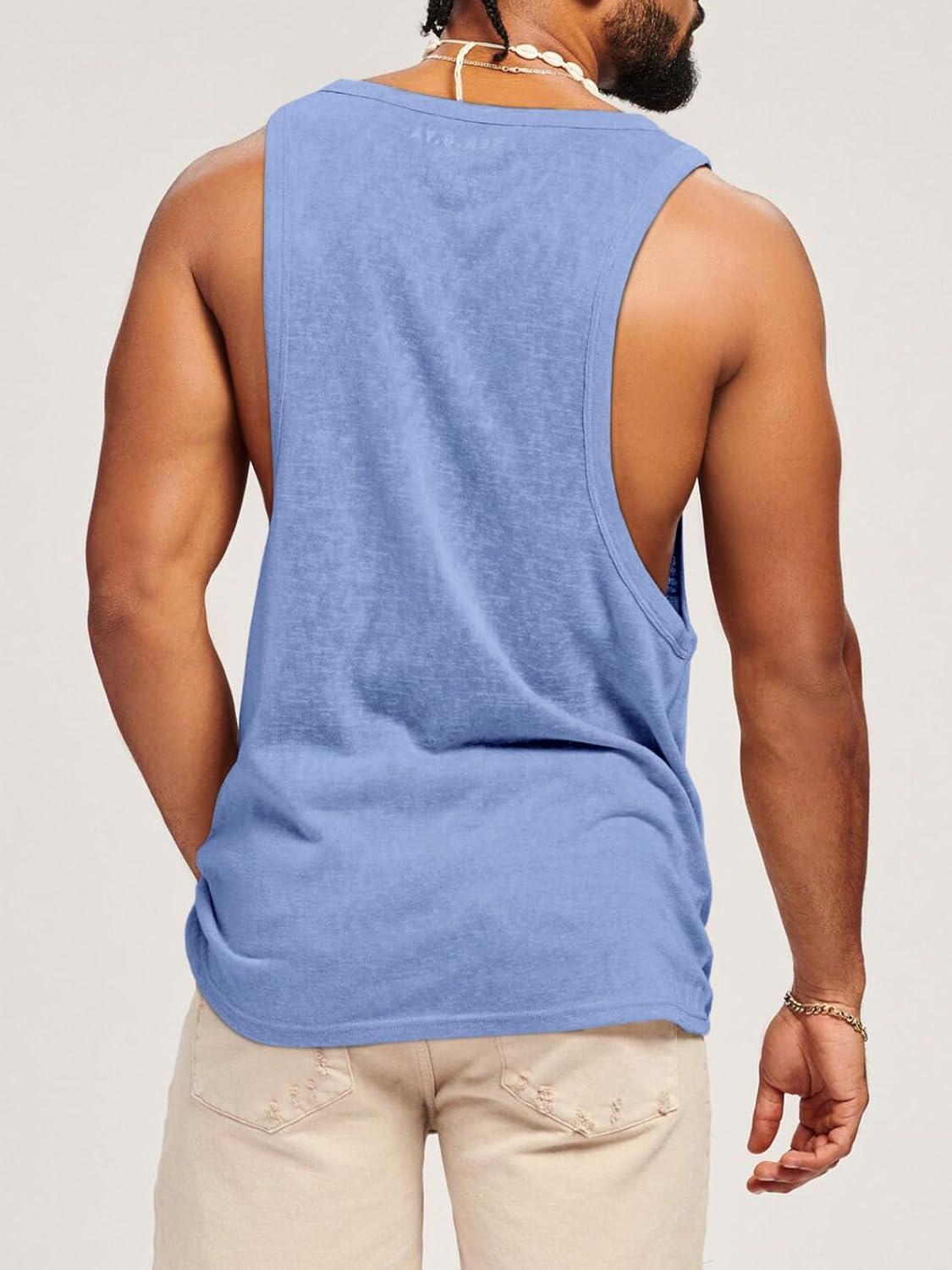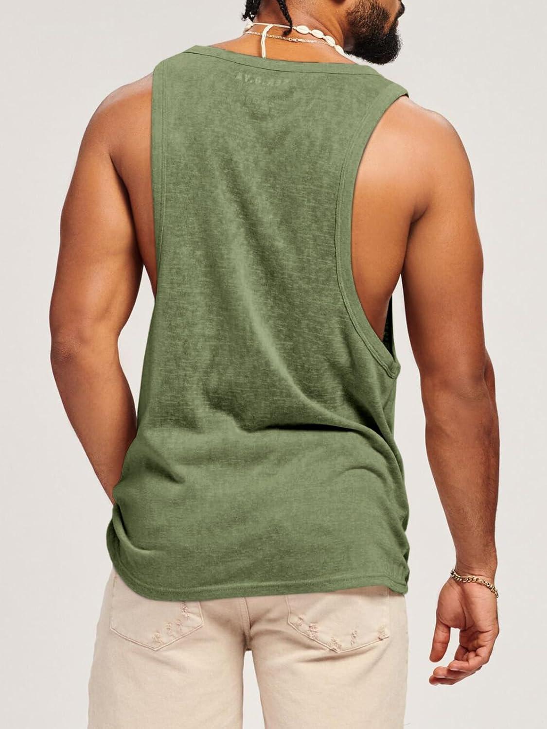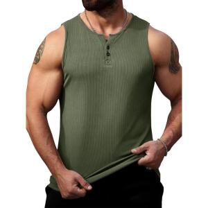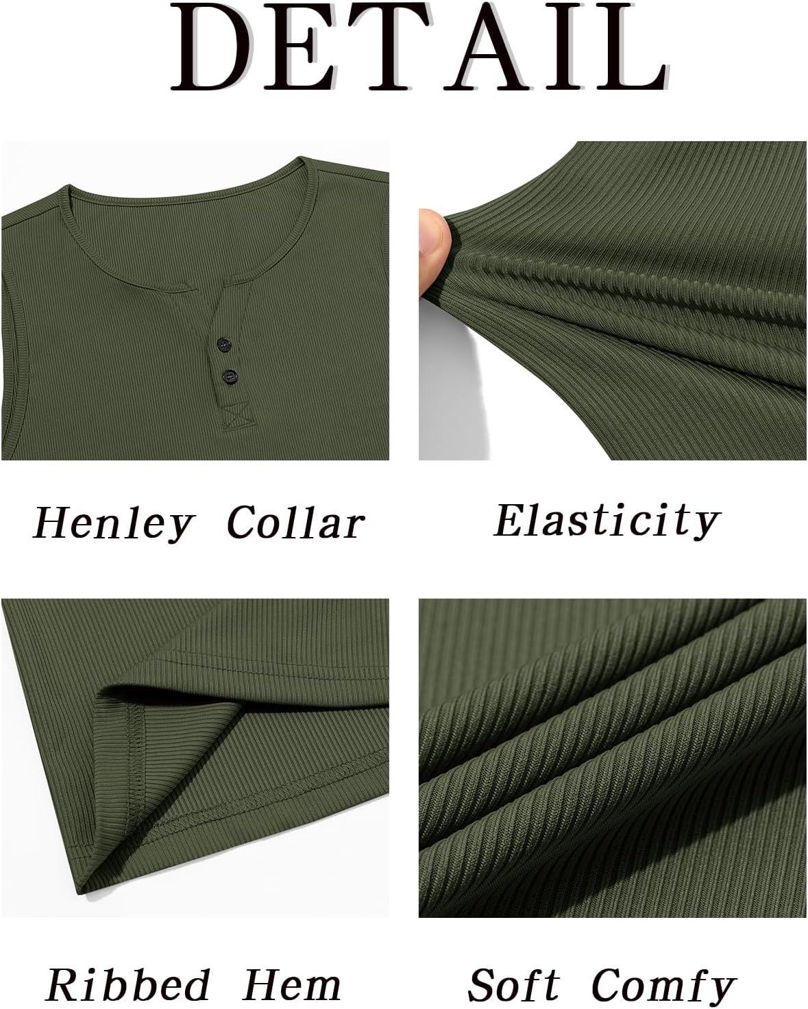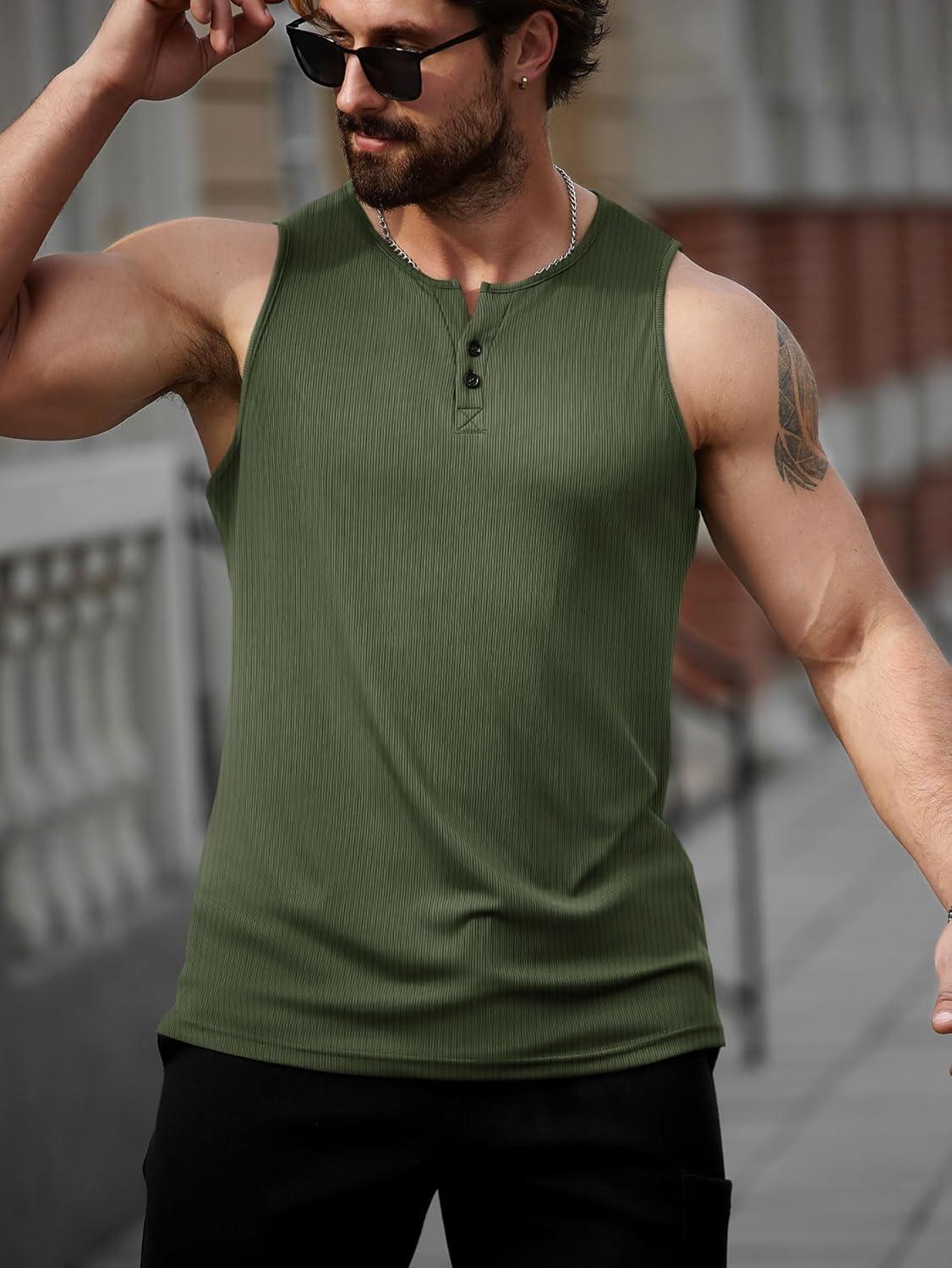 • Runcati Mens Workout Tank Tops Summer Gym Muscle Ribbed Sleeveless Henley Shirt Casual Knitted Slim Fit Beach Tee(Army Green)