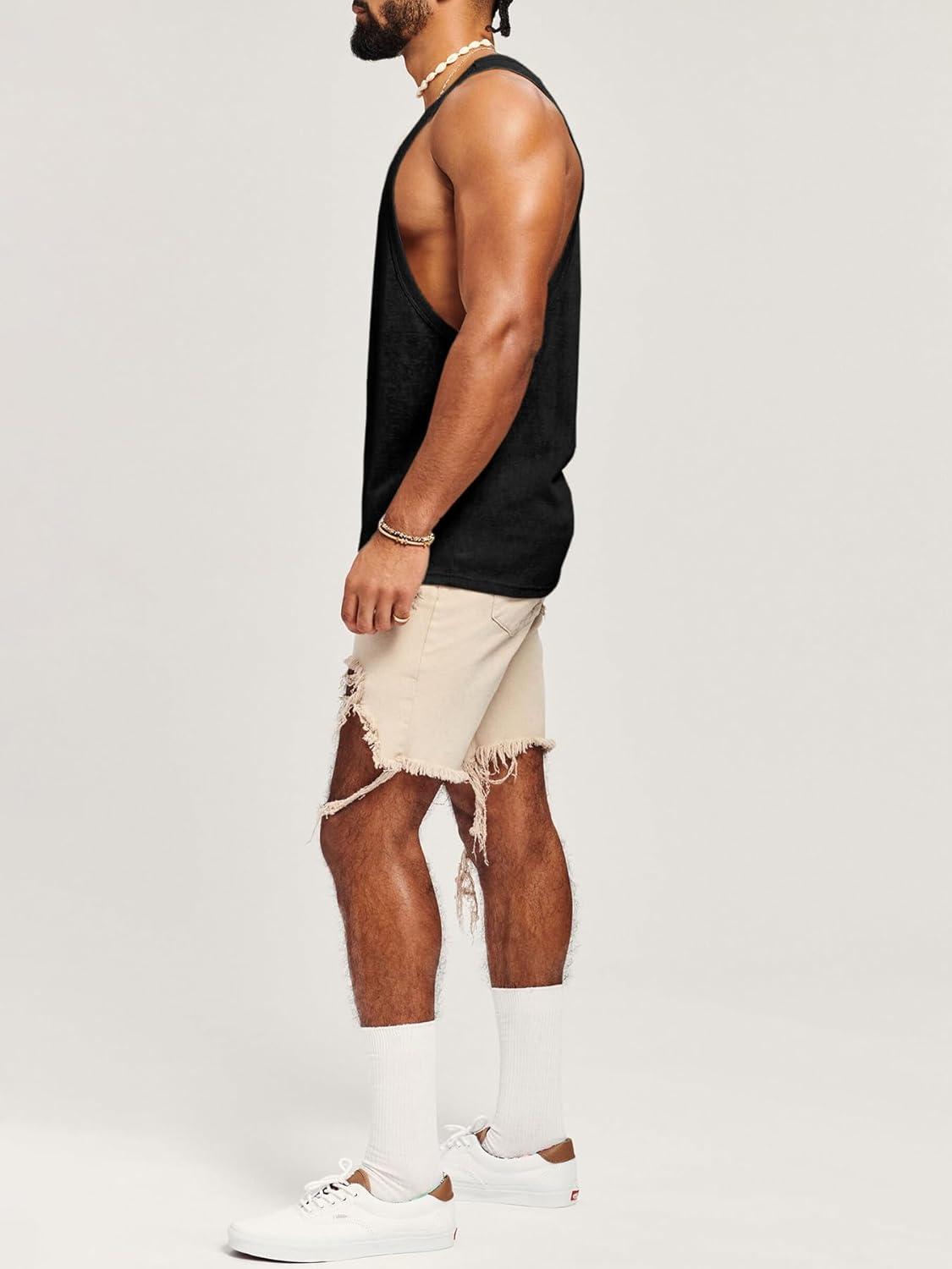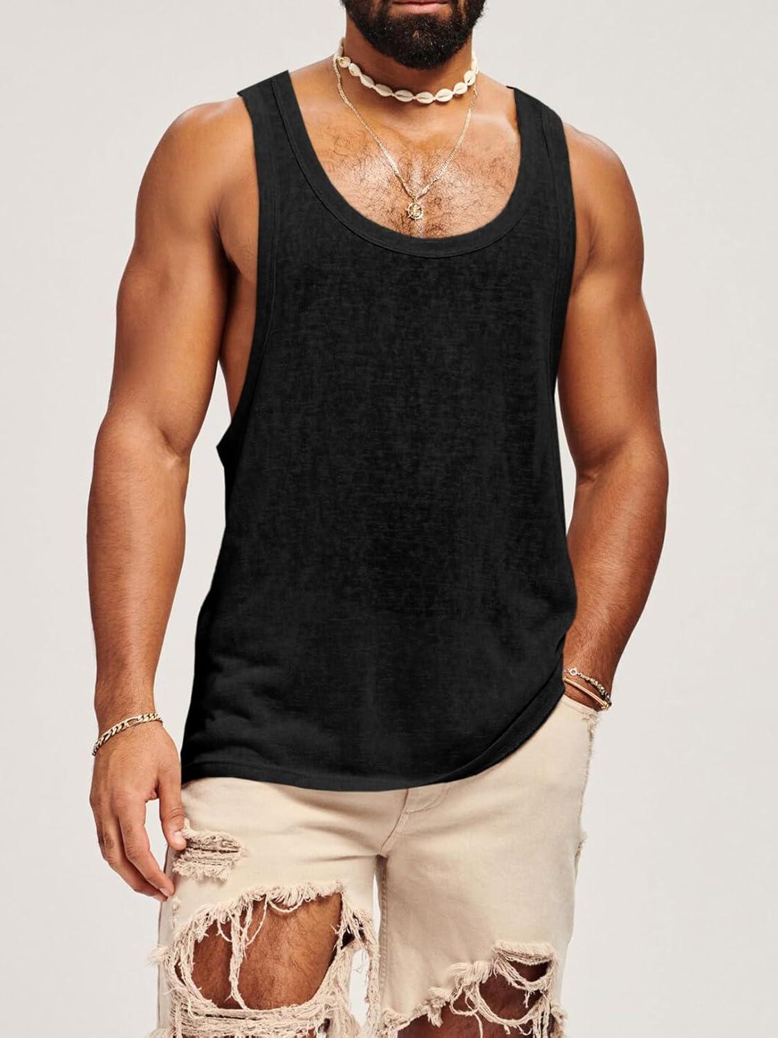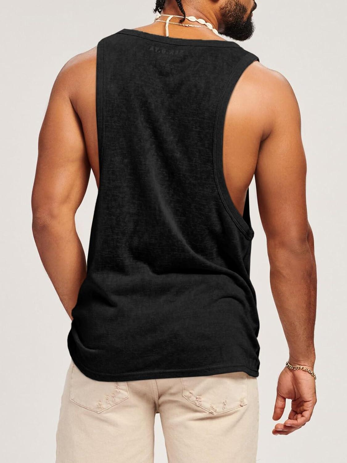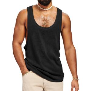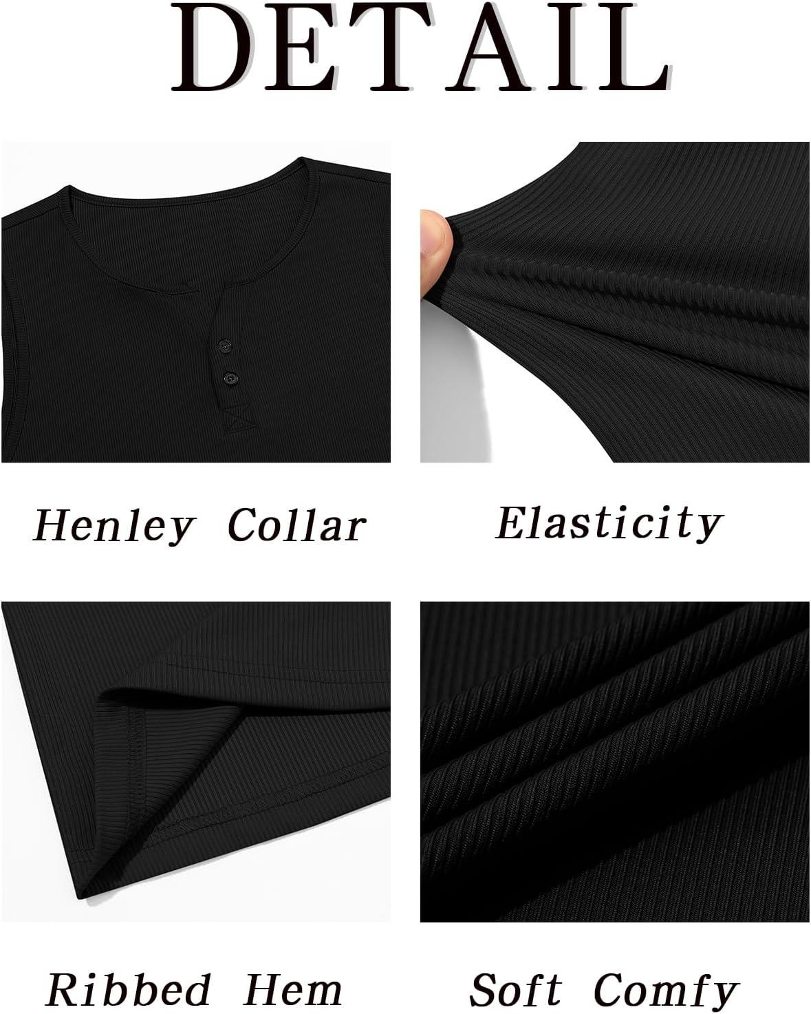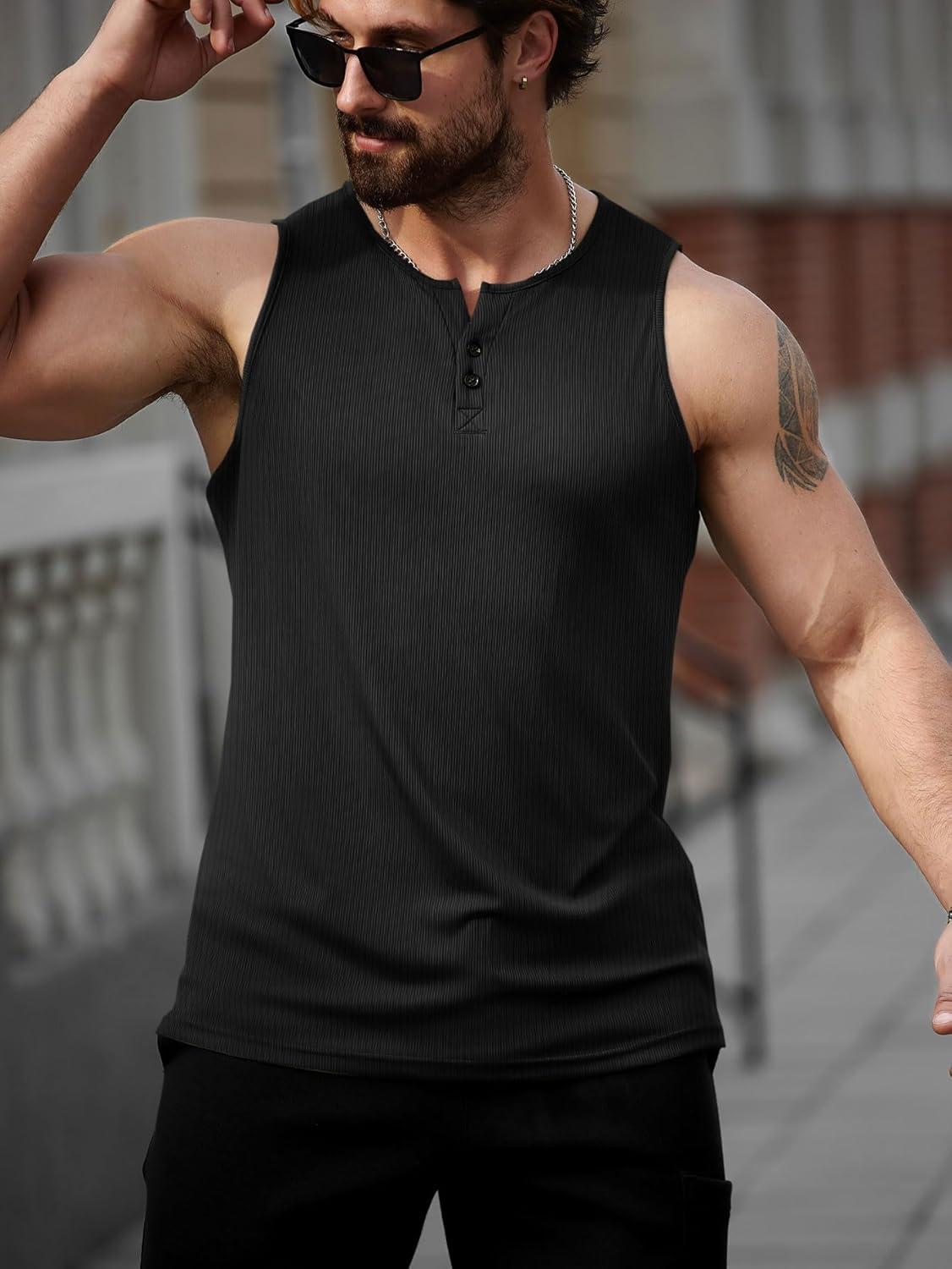 • Runcati Mens Workout Tank Tops Summer Gym Muscle Ribbed Sleeveless Henley Shirt Casual Knitted Slim Fit Beach Tee(Black)