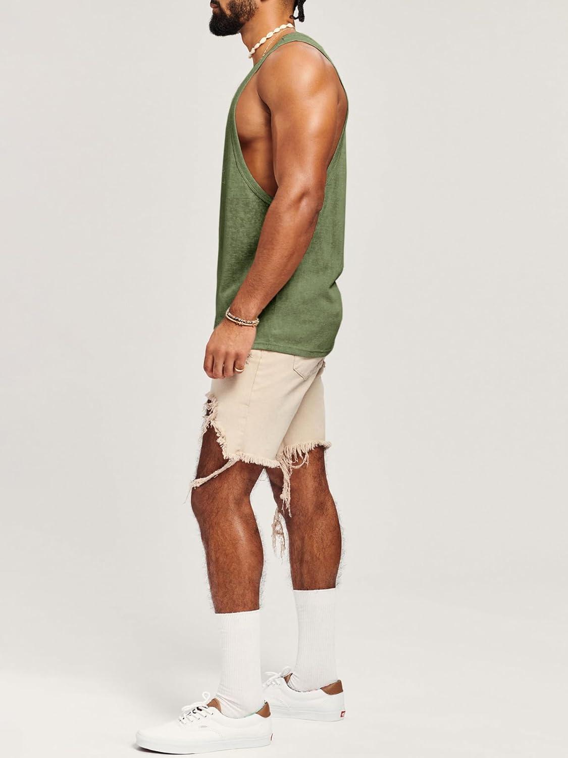 • Runcati Mens Workout Tank Tops Sleeveless Muscle Cut Off Shirt Athletic Gym T Shirts(Army Green)