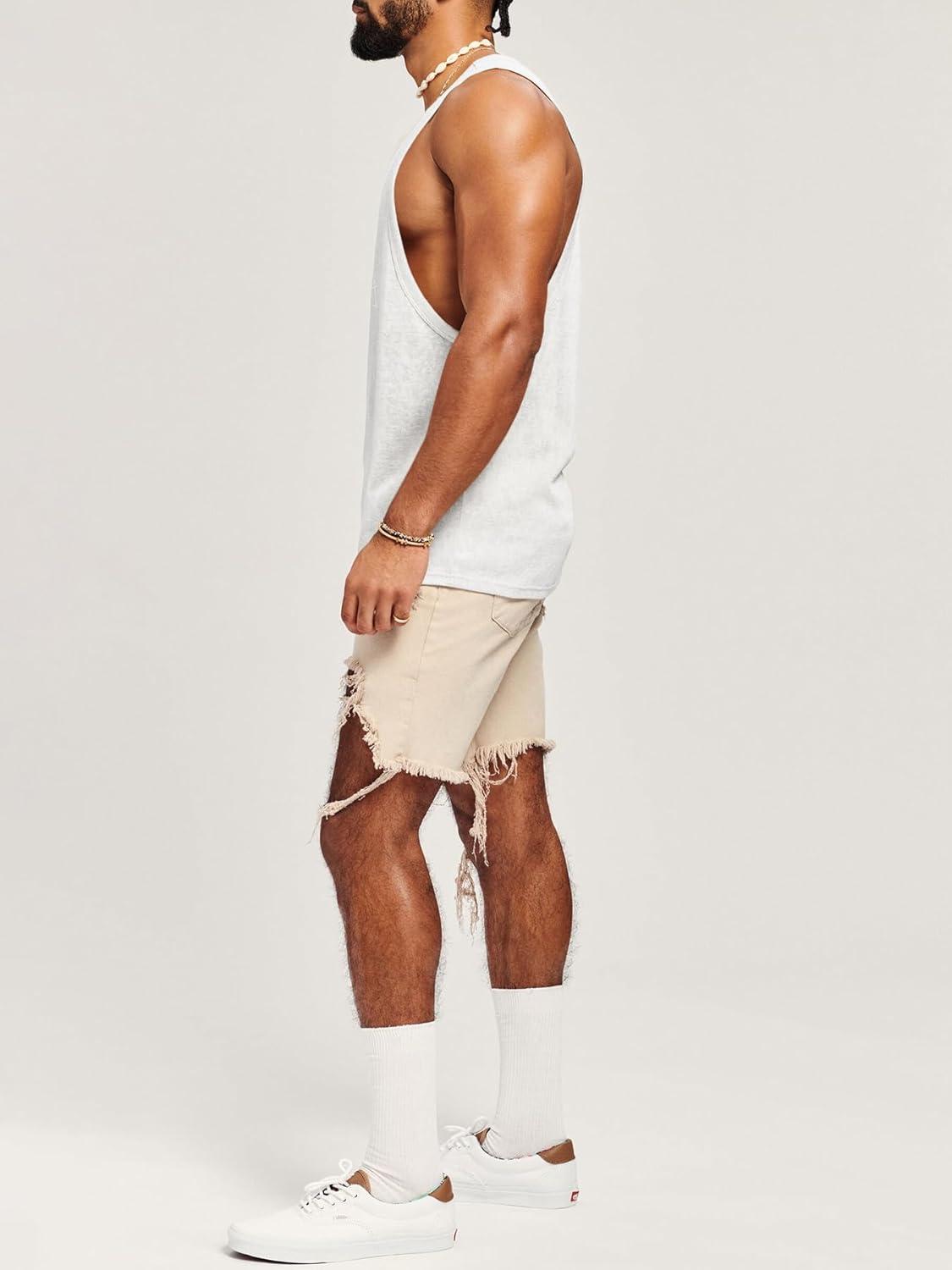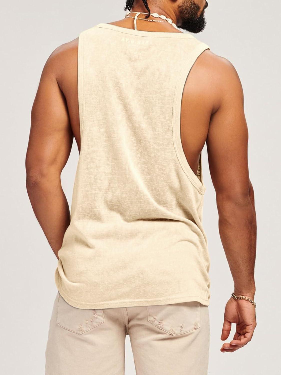 • Runcati Mens Workout Tank Tops Sleeveless Shirt Muscle Gym Bodybuilding Fitness Training Loose Fit T Shirts(Beige)