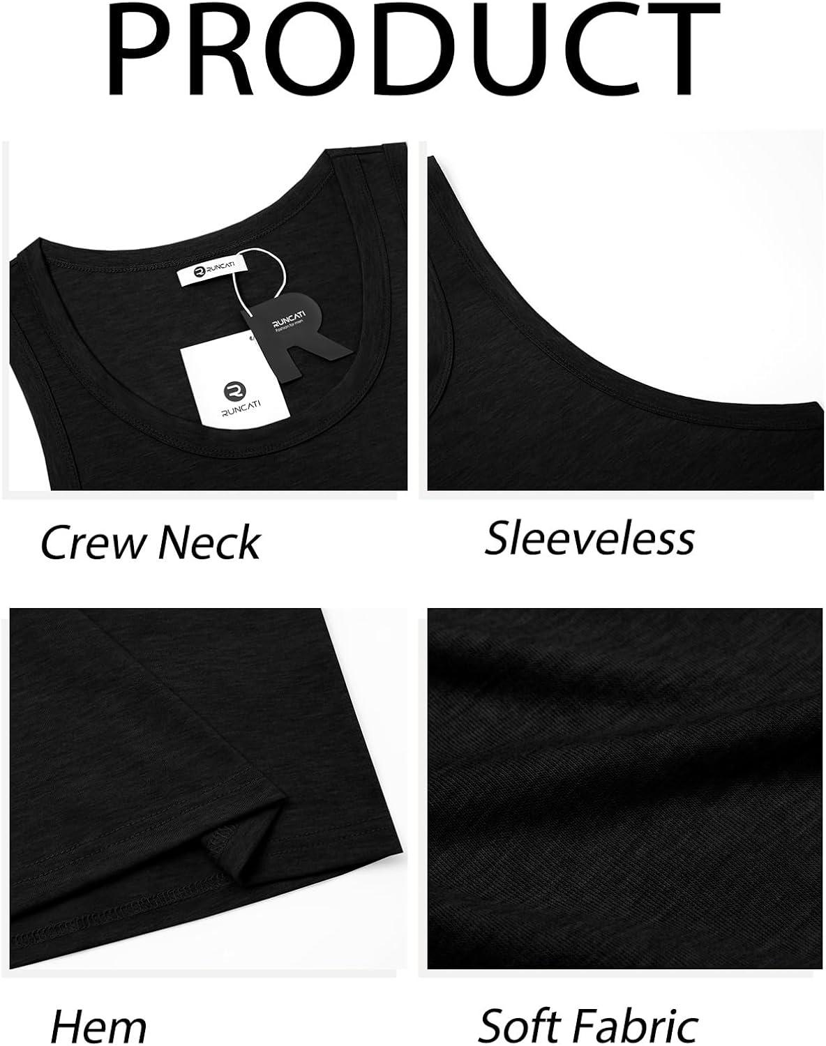 Runcati Mens Workout Tank Tops Sleeveless Shirt Muscle Gym Bodybuilding Fitness Training Loose Fit T Shirts(Black)