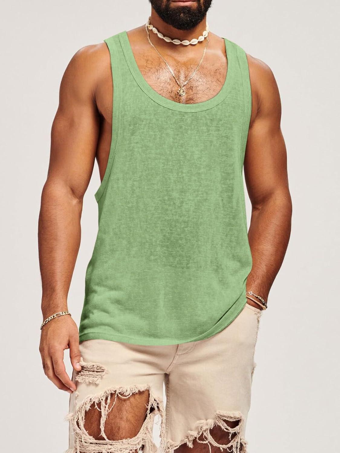 Runcati Mens Workout Tank Tops Sleeveless Shirt Muscle Gym Bodybuilding Fitness Training Loose Fit T Shirts(Mint)