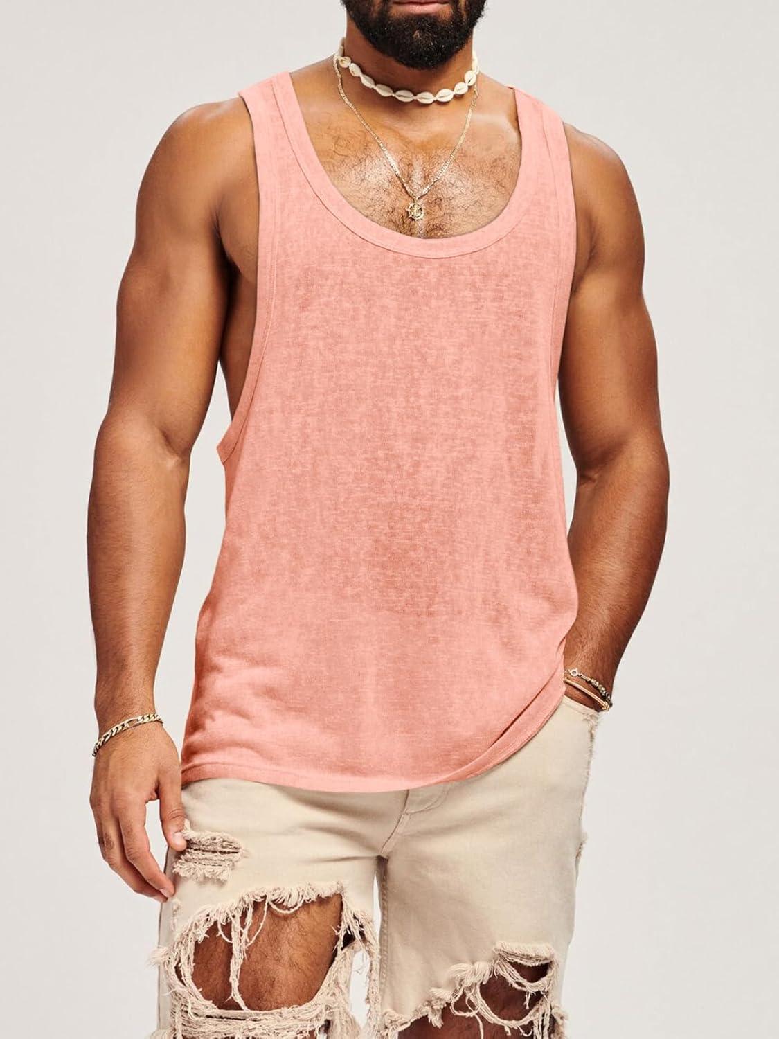 • Runcati Mens Workout Tank Tops Sleeveless Shirt Muscle Gym Bodybuilding Fitness Training Loose Fit T Shirts(Pink)