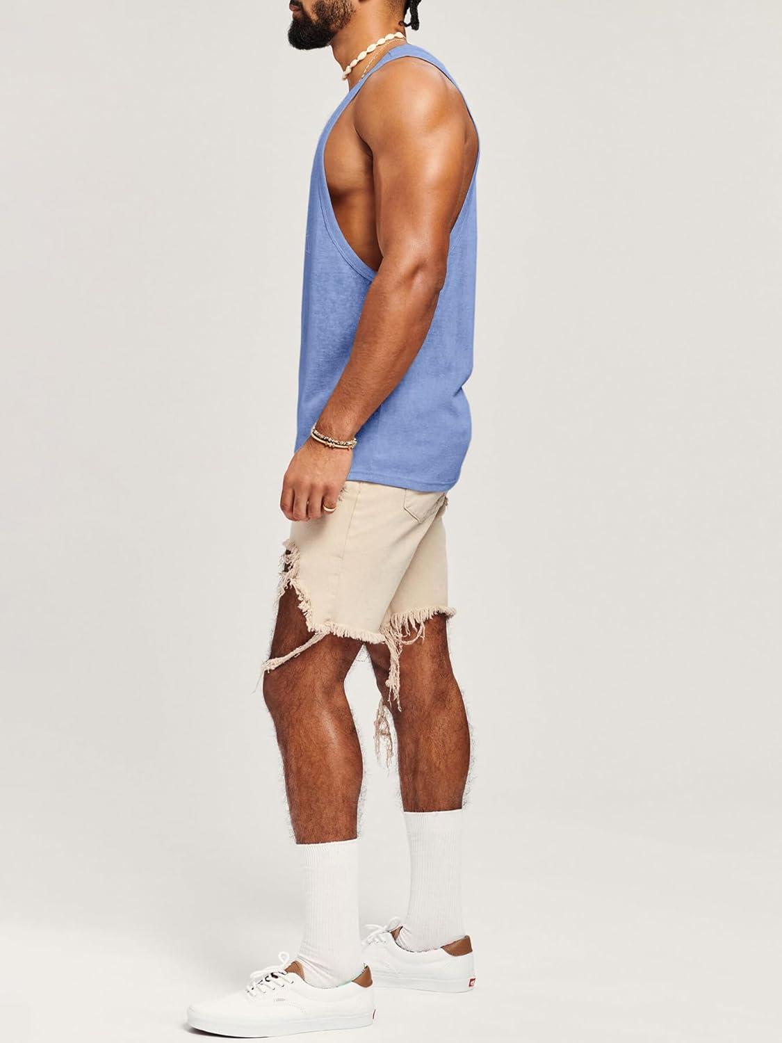 • Runcati Mens Workout Tank Tops Sleeveless Muscle Cut Off Shirt Athletic Gym T Shirts(Blue)