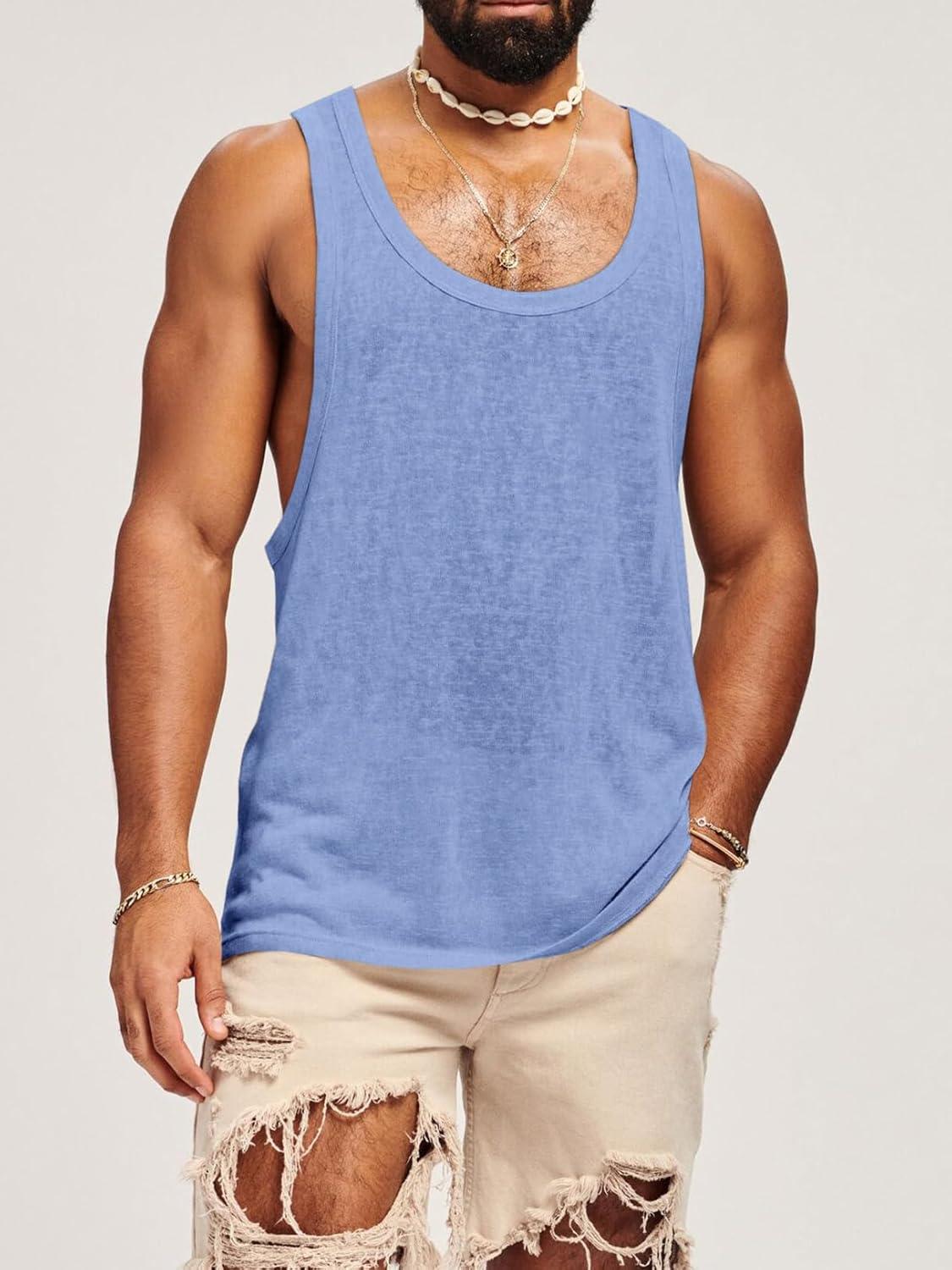 • Runcati Mens Workout Tank Tops Sleeveless Shirt Muscle Gym Bodybuilding Fitness Training Loose Fit T Shirts(Sky Blue)