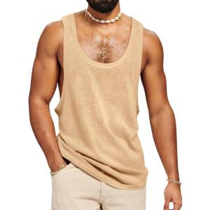 • Runcati Mens Workout Tank Tops Sleeveless Shirt Muscle Gym Bodybuilding Fitness Training Loose Fit T Shirts(Khaki)