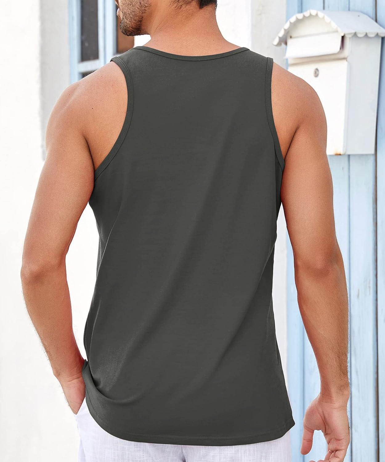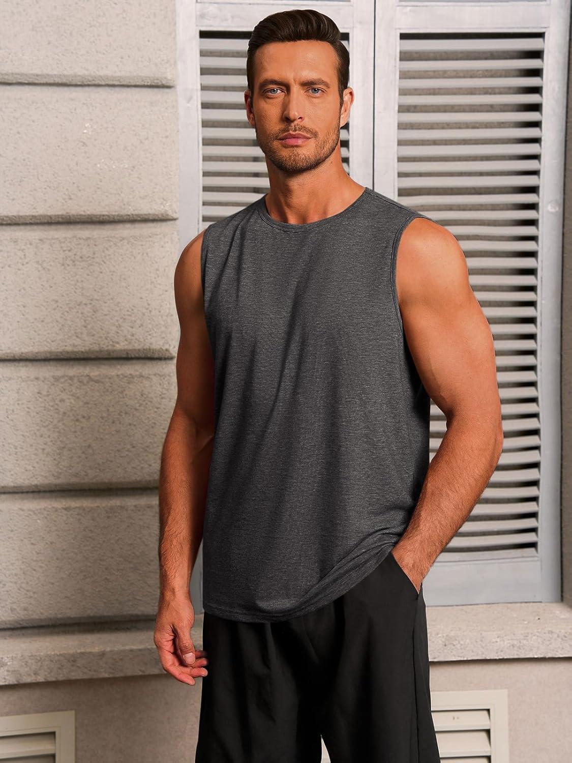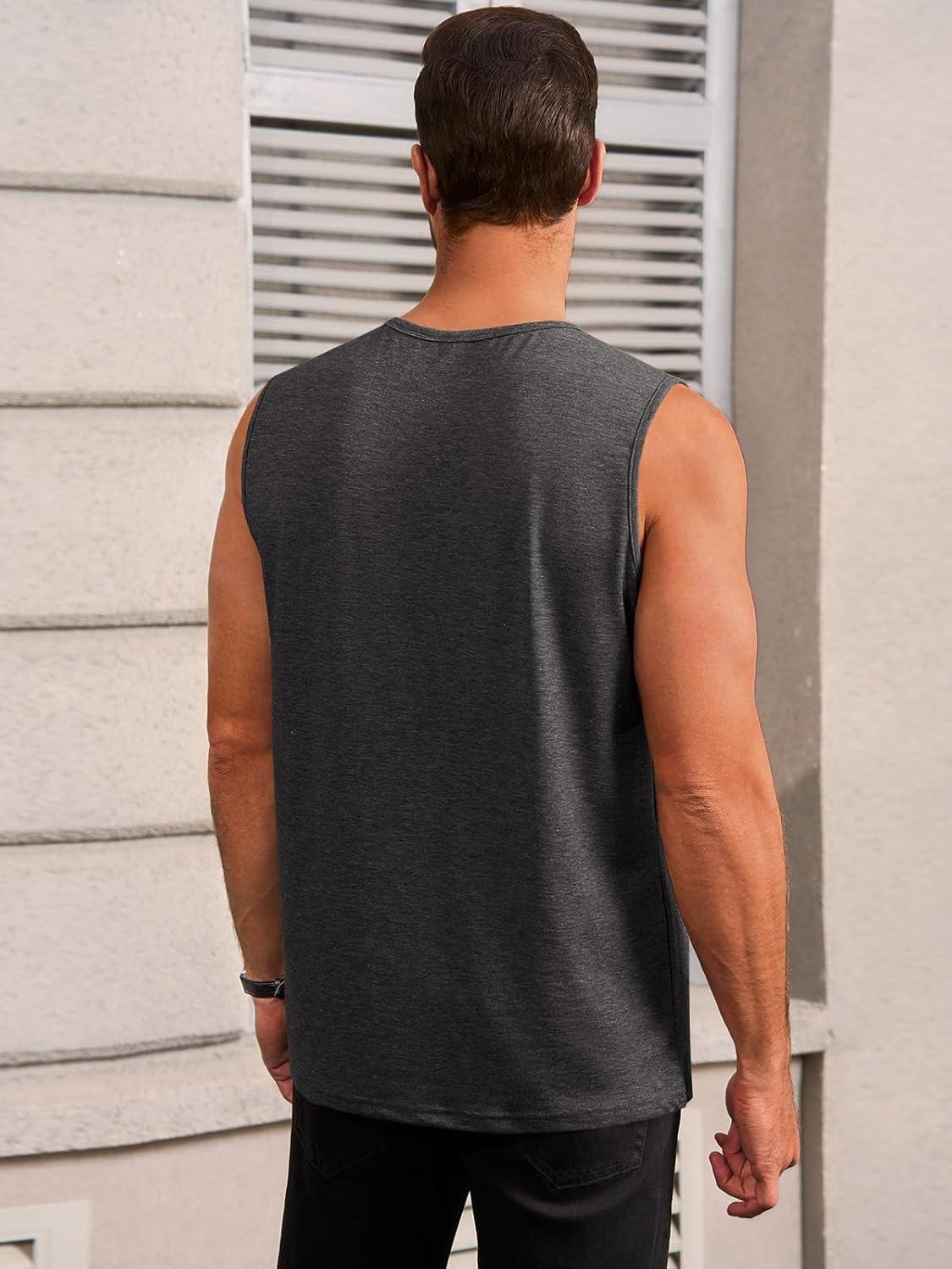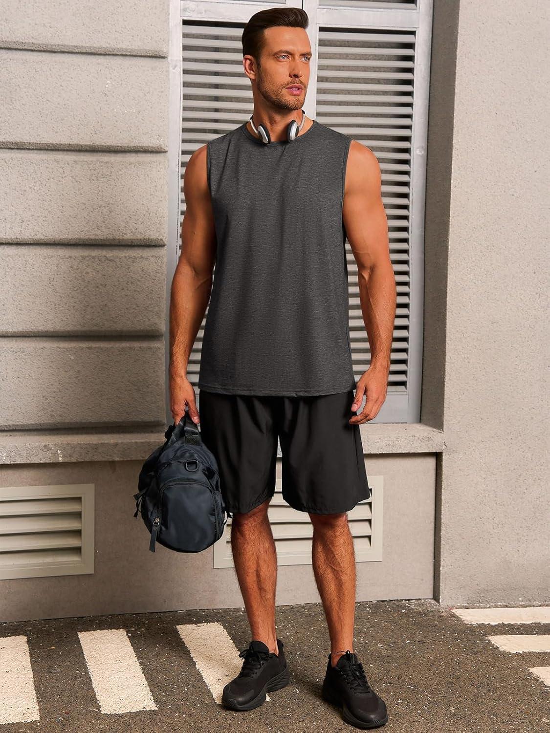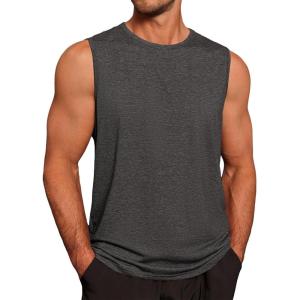 Runcati Mens Workout Tank Tops Sleeveless Gym Muscle Athletic T Shirts Casual Summer Beach Tops(Dark Grey)