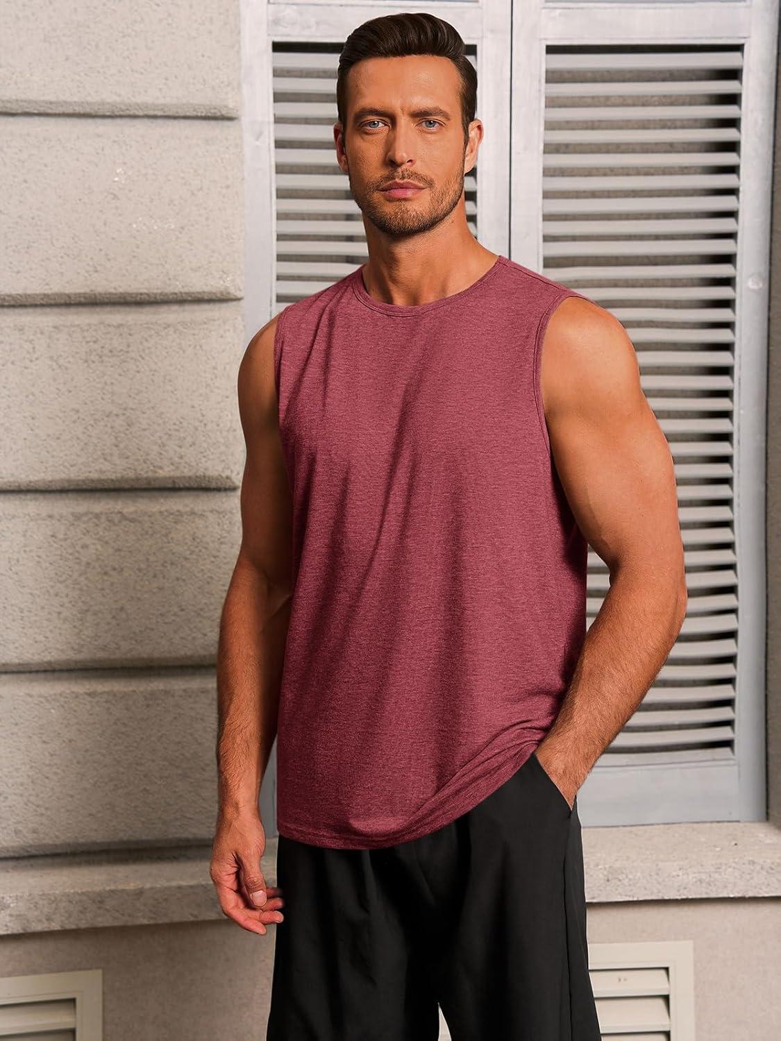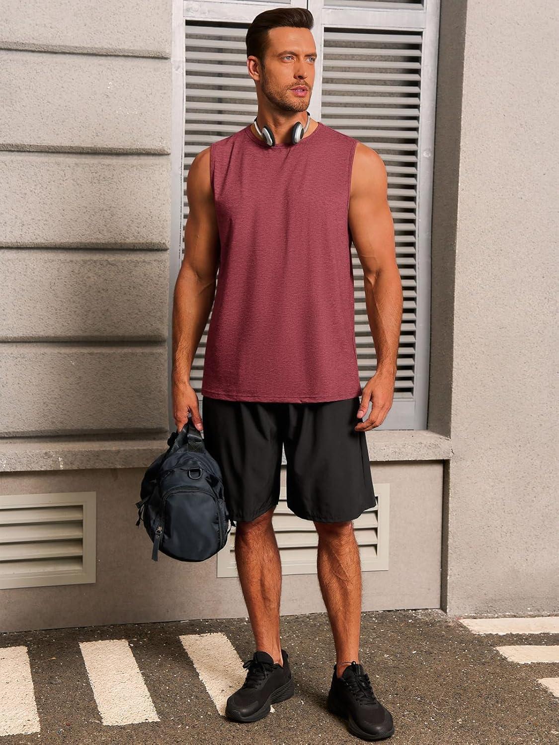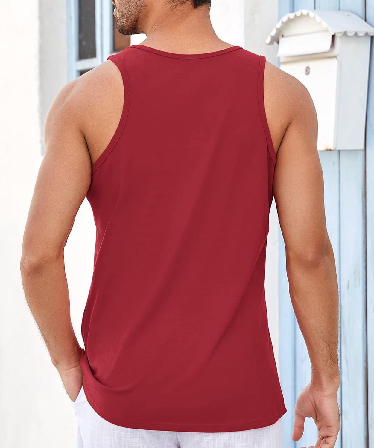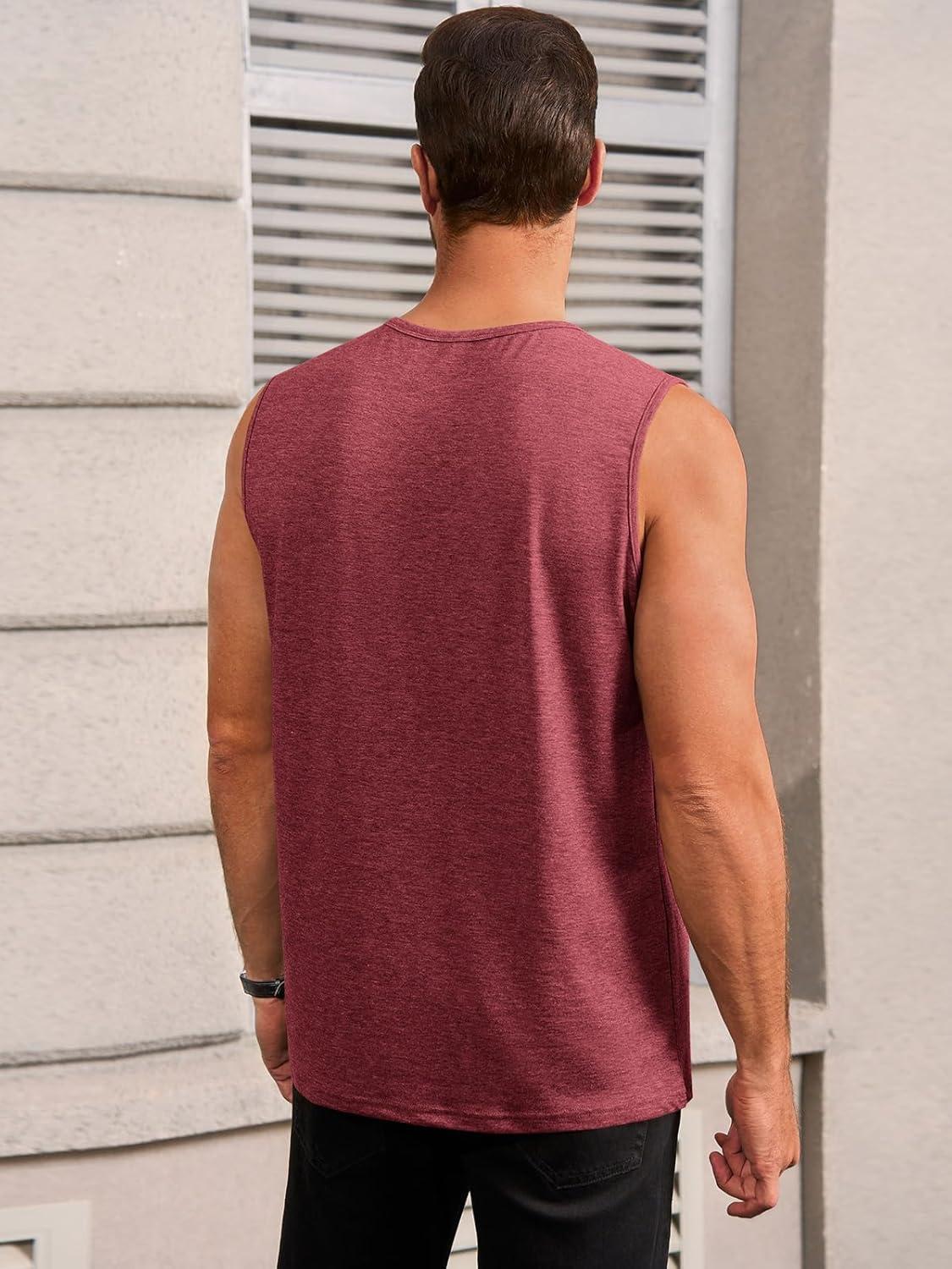 Runcati Mens Workout Tank Tops Sleeveless Gym Muscle Athletic T Shirts Casual Summer Beach Tops(Burgundy)
