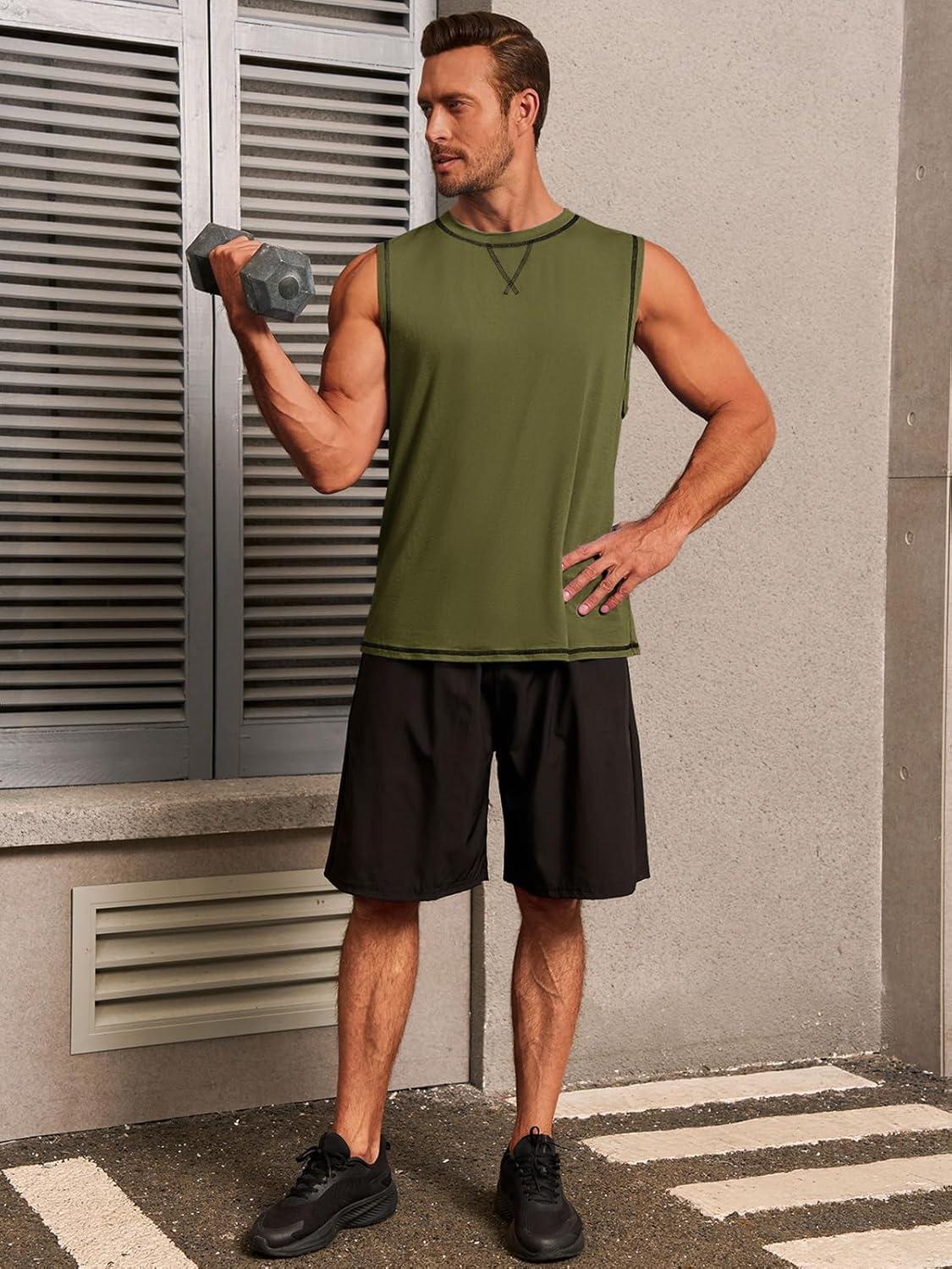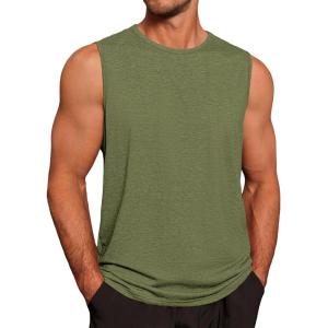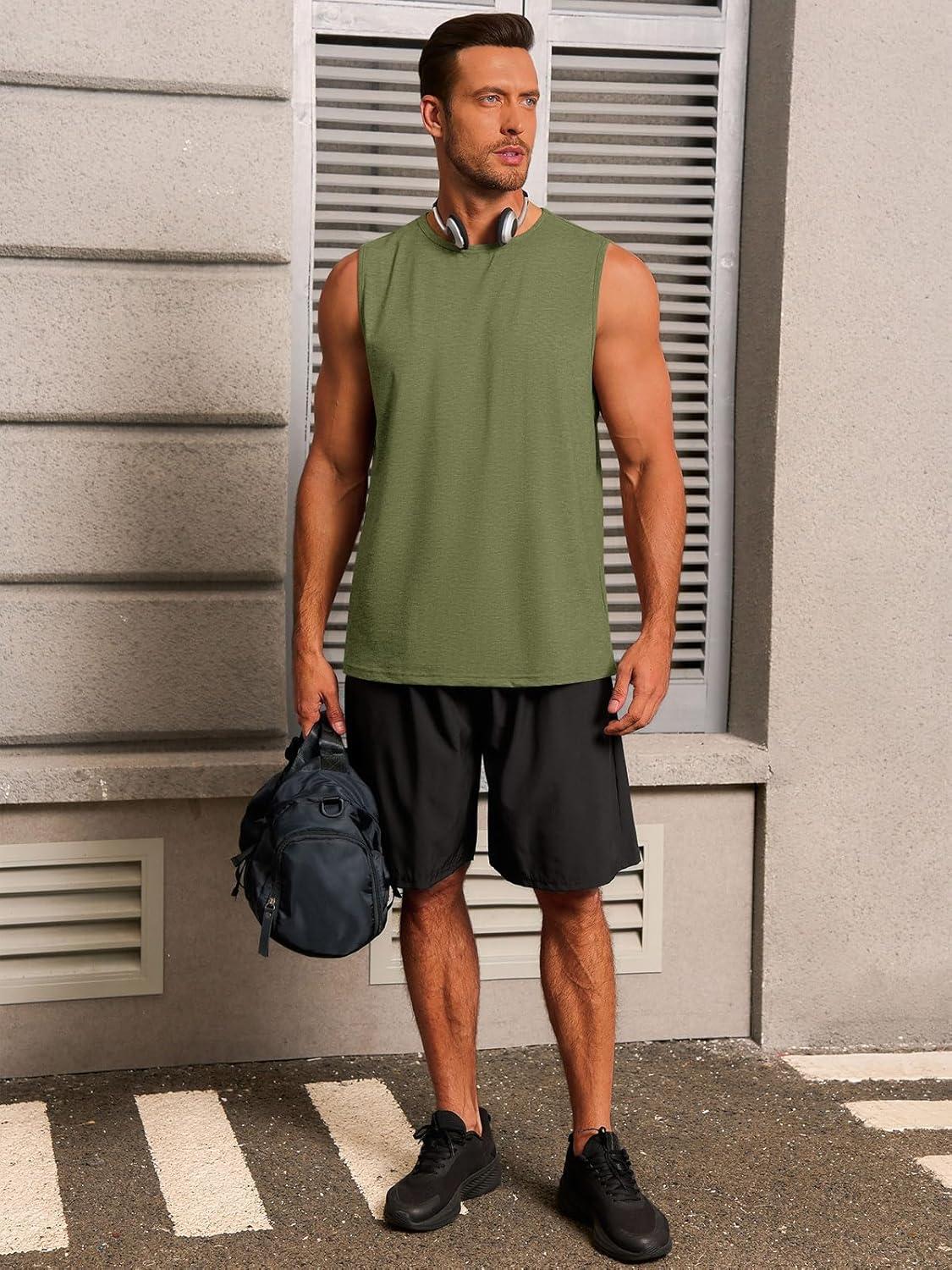 Runcati Mens Workout Tank Tops Sleeveless Gym Muscle Athletic T Shirts Casual Summer Beach Tops(Army Green)