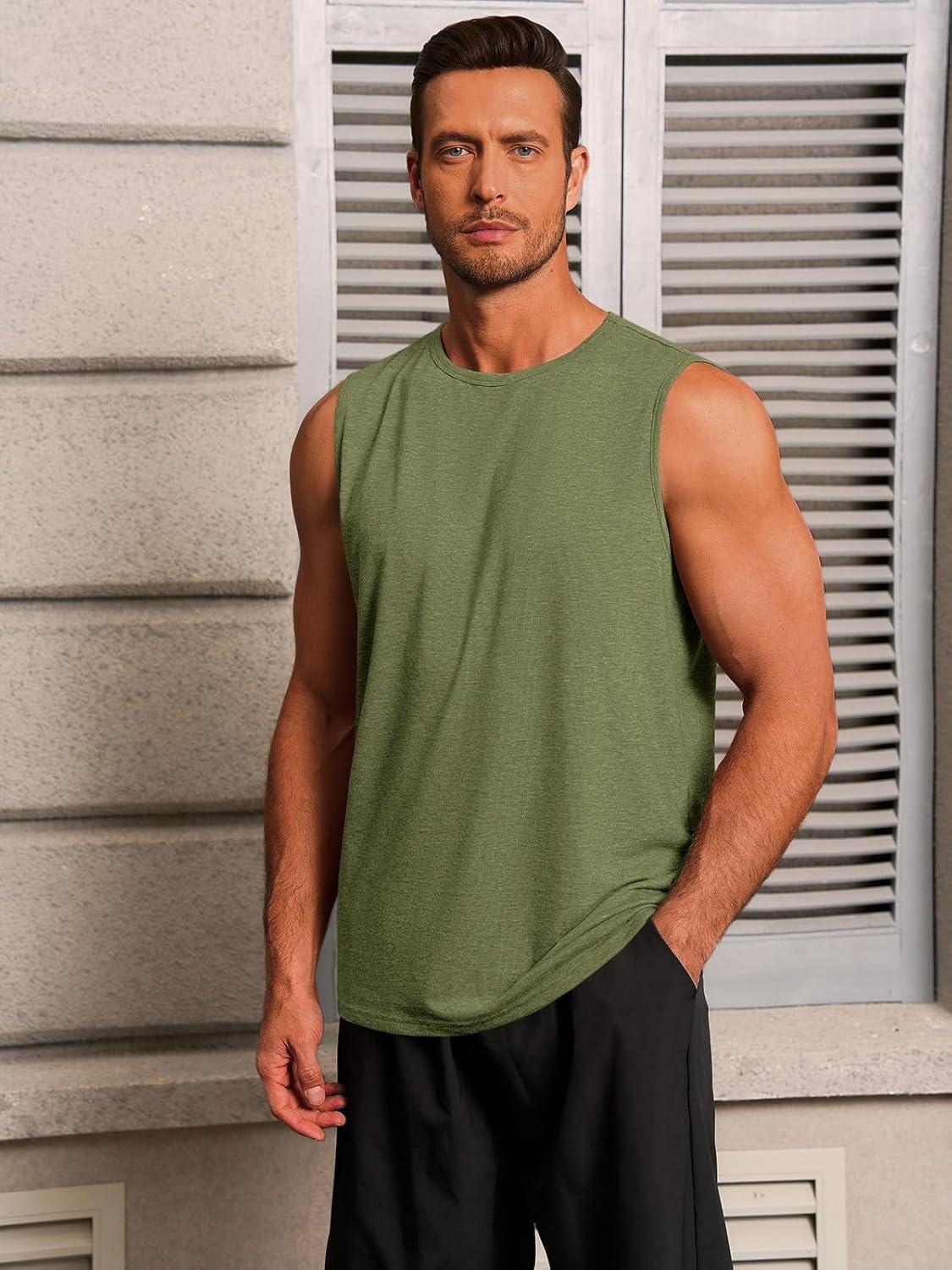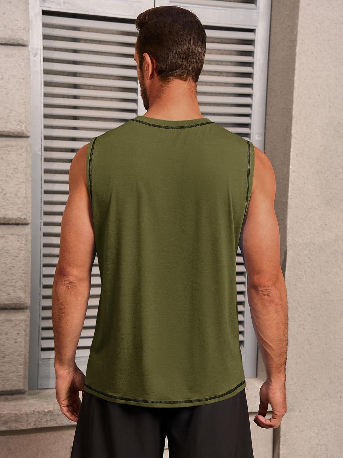 Runcati Mens Workout Tank Tops Sleeveless Casual Crewneck Beach T Shirt Muscle Athletic Gym Running Tee(Army Green)
