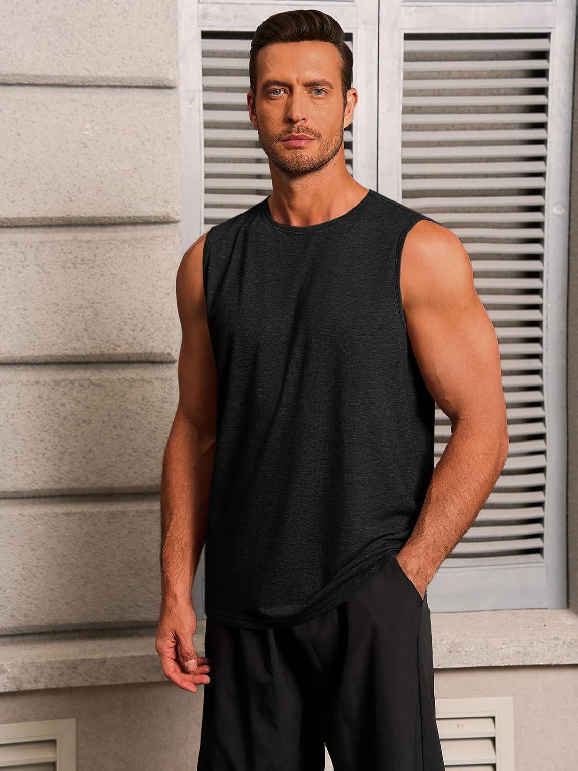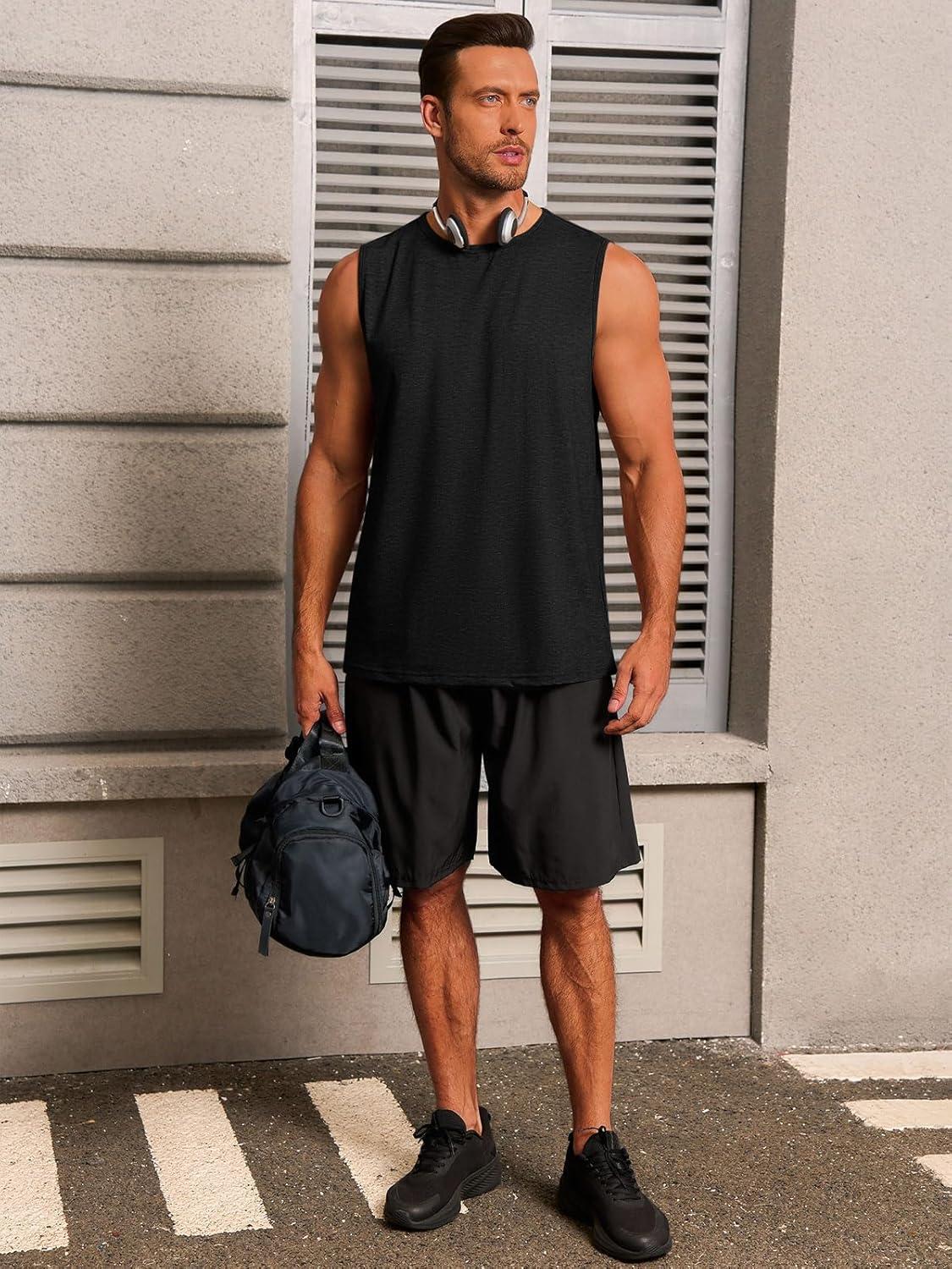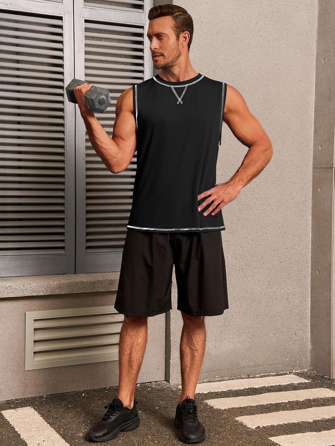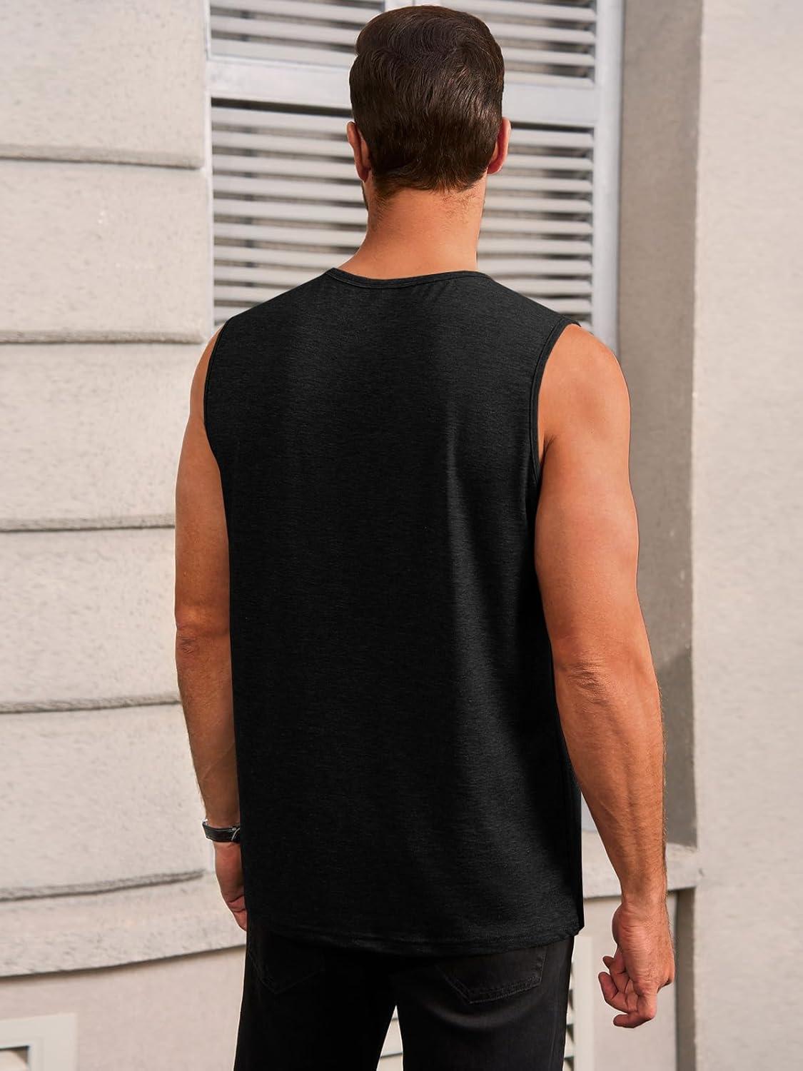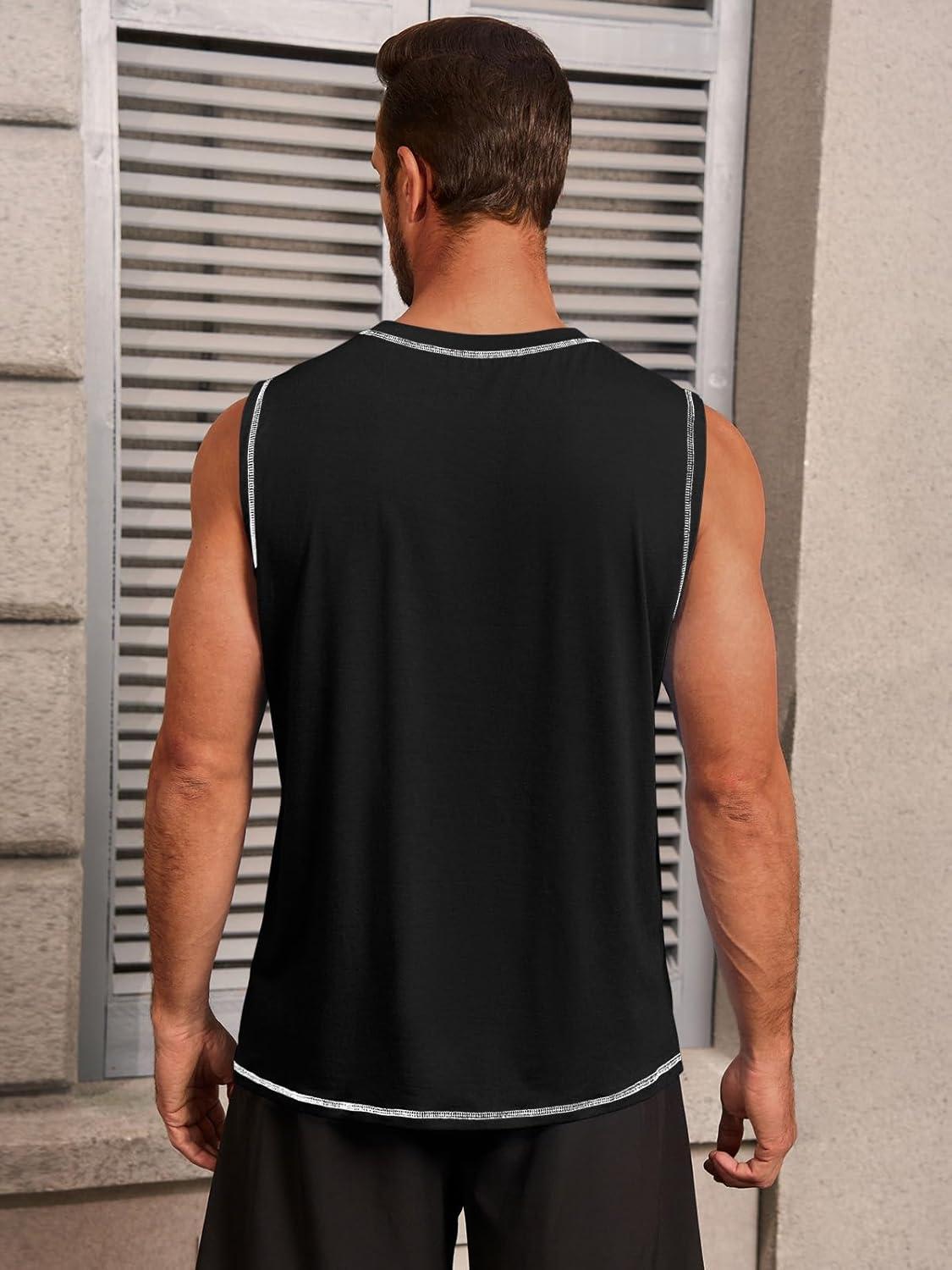Runcati Mens Workout Tank Tops Sleeveless Gym Muscle Athletic T Shirts Casual Summer Beach Tops(Black)