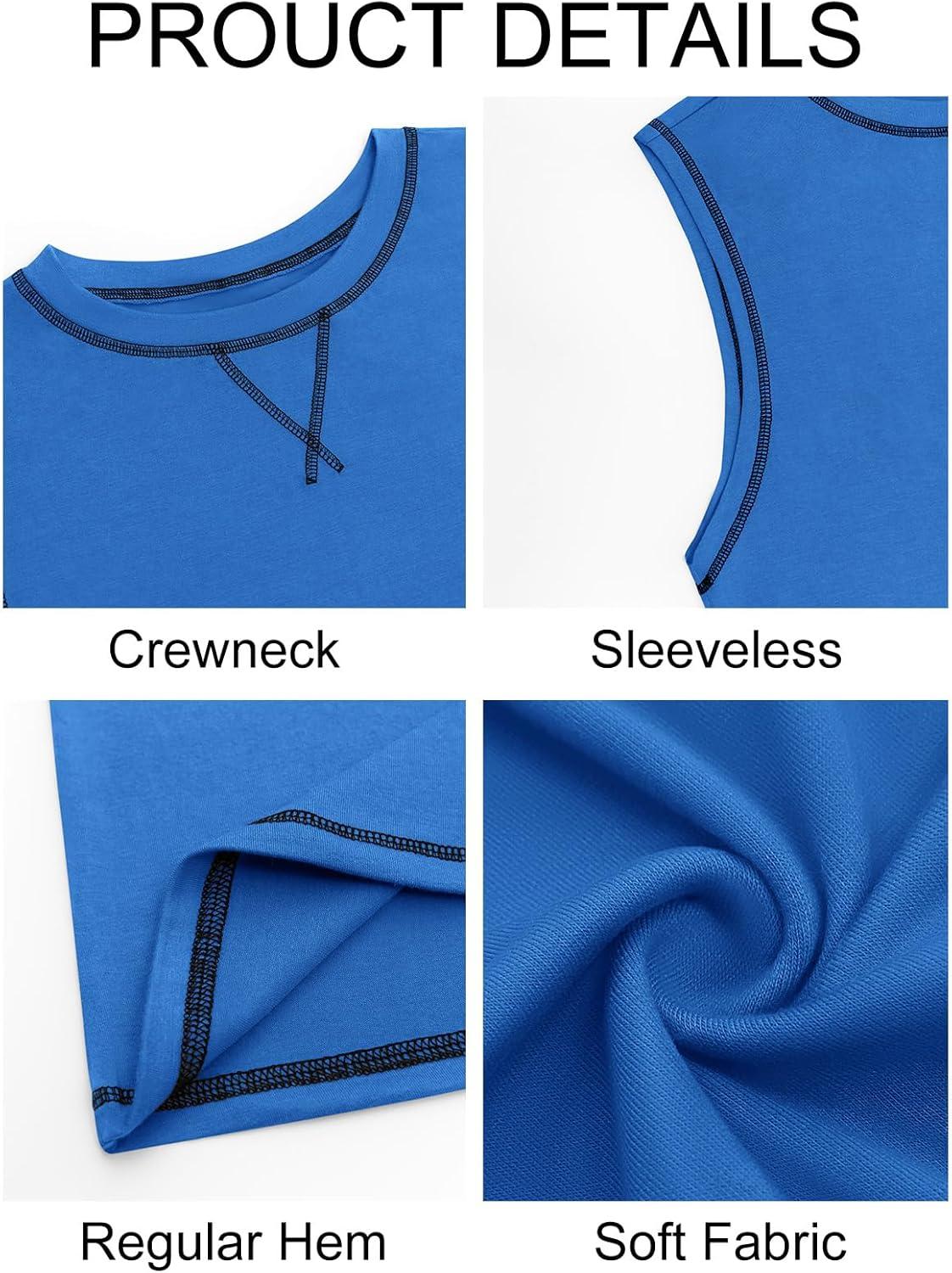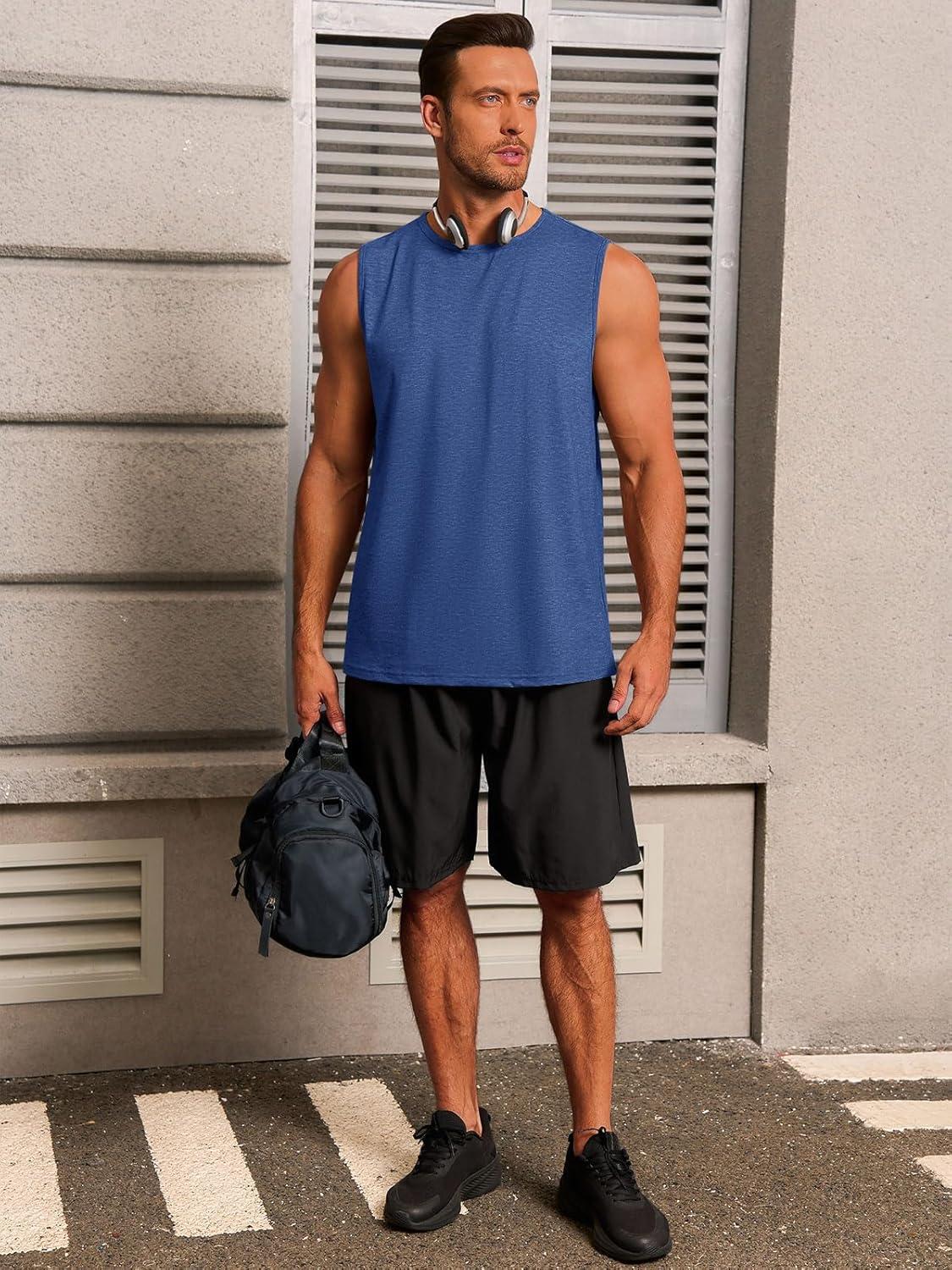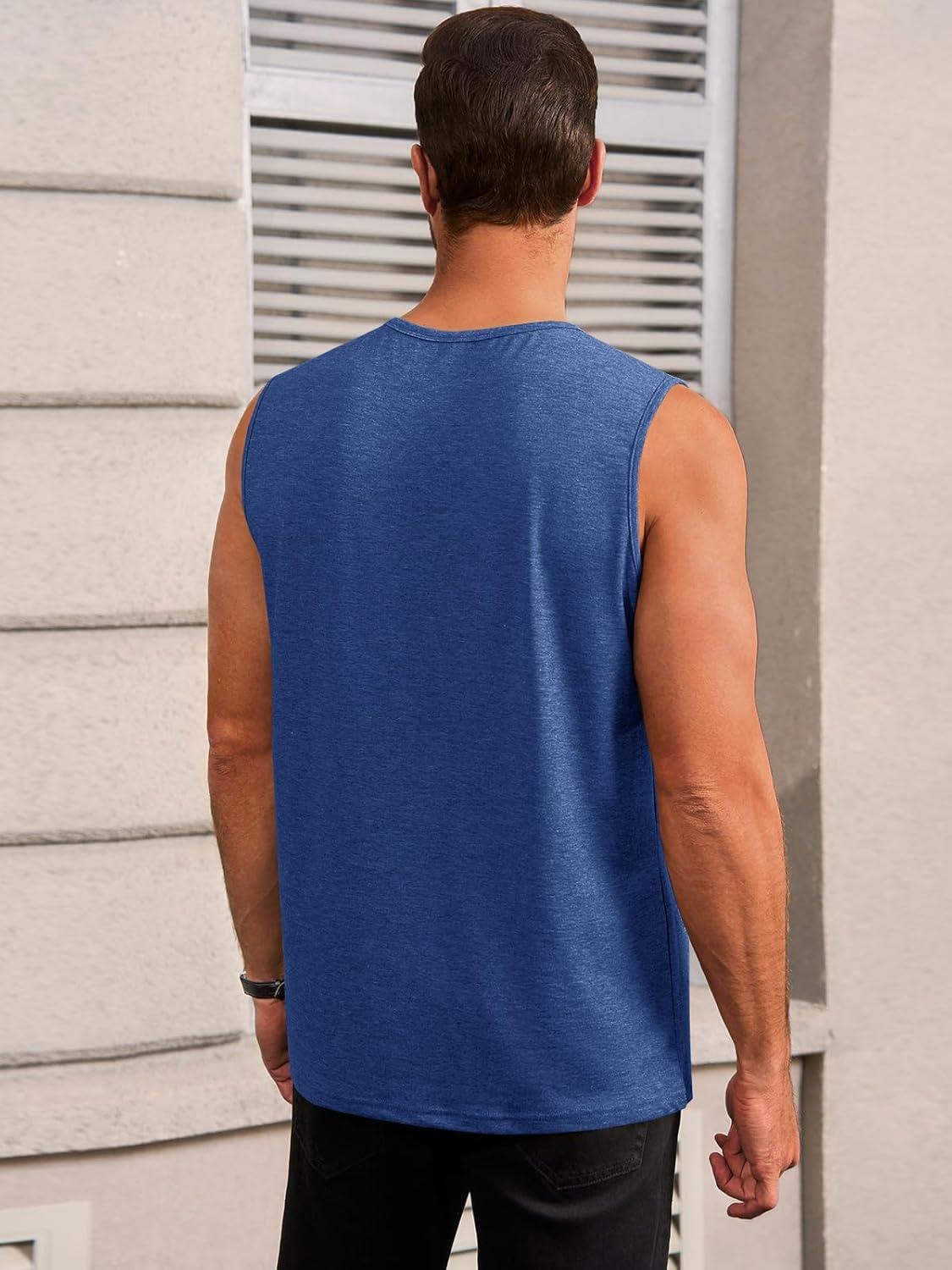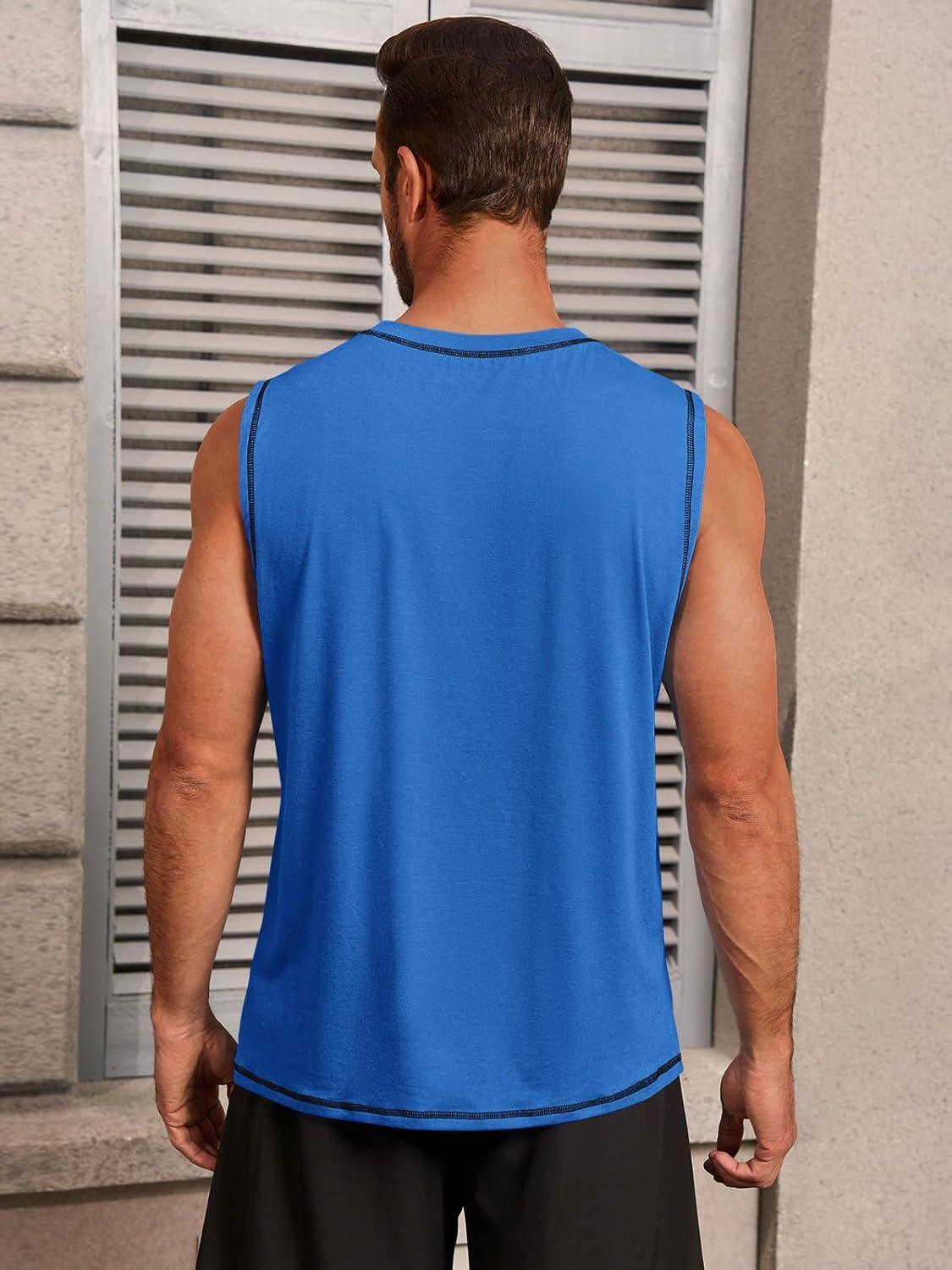 Runcati Mens Workout Tank Tops Sleeveless Casual Crewneck Beach T Shirt Muscle Athletic Gym Running Tee(Blue)
