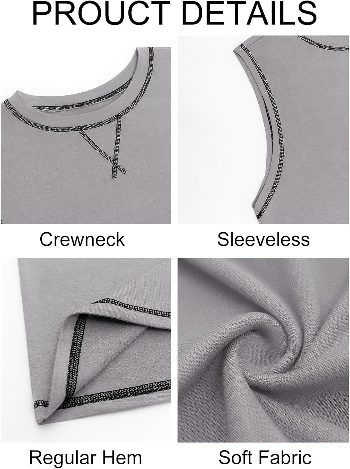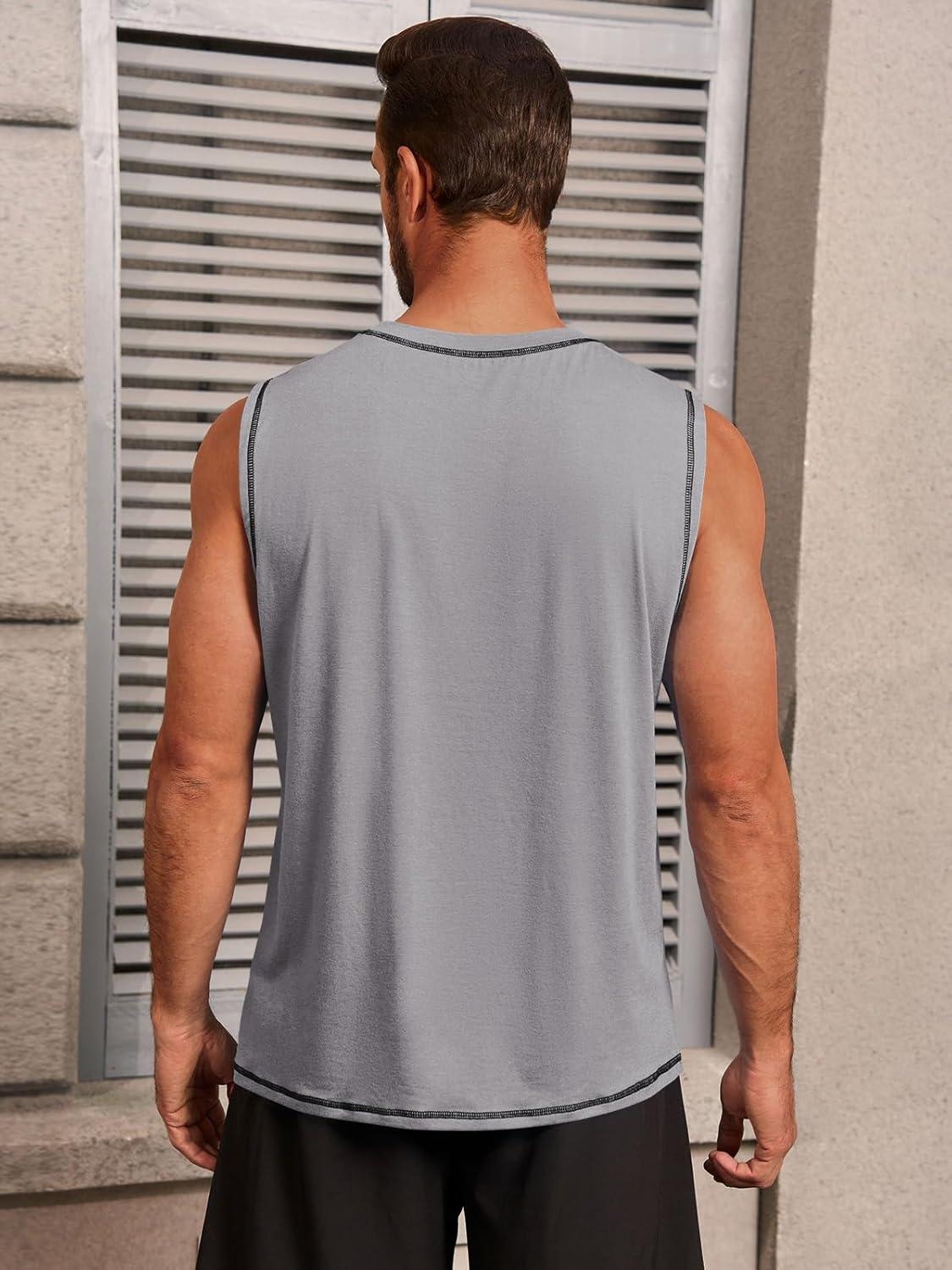 Runcati Mens Workout Tank Tops Sleeveless Casual Crewneck Beach T Shirt Muscle Athletic Gym Running Tee(Grey)