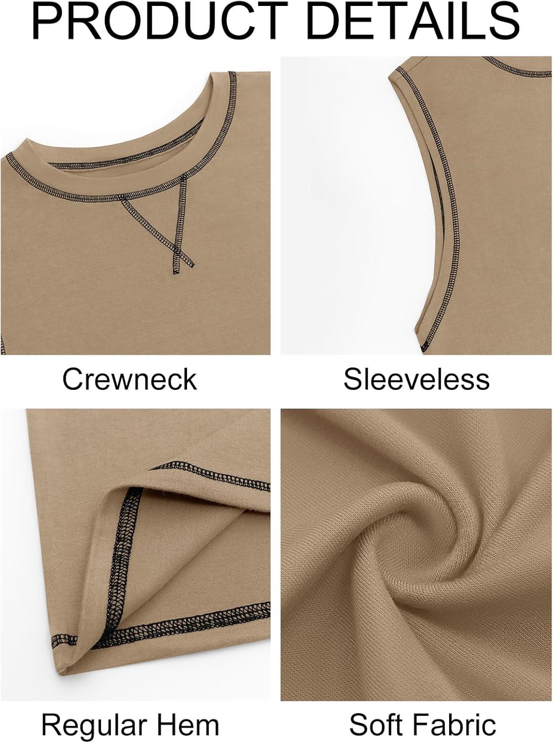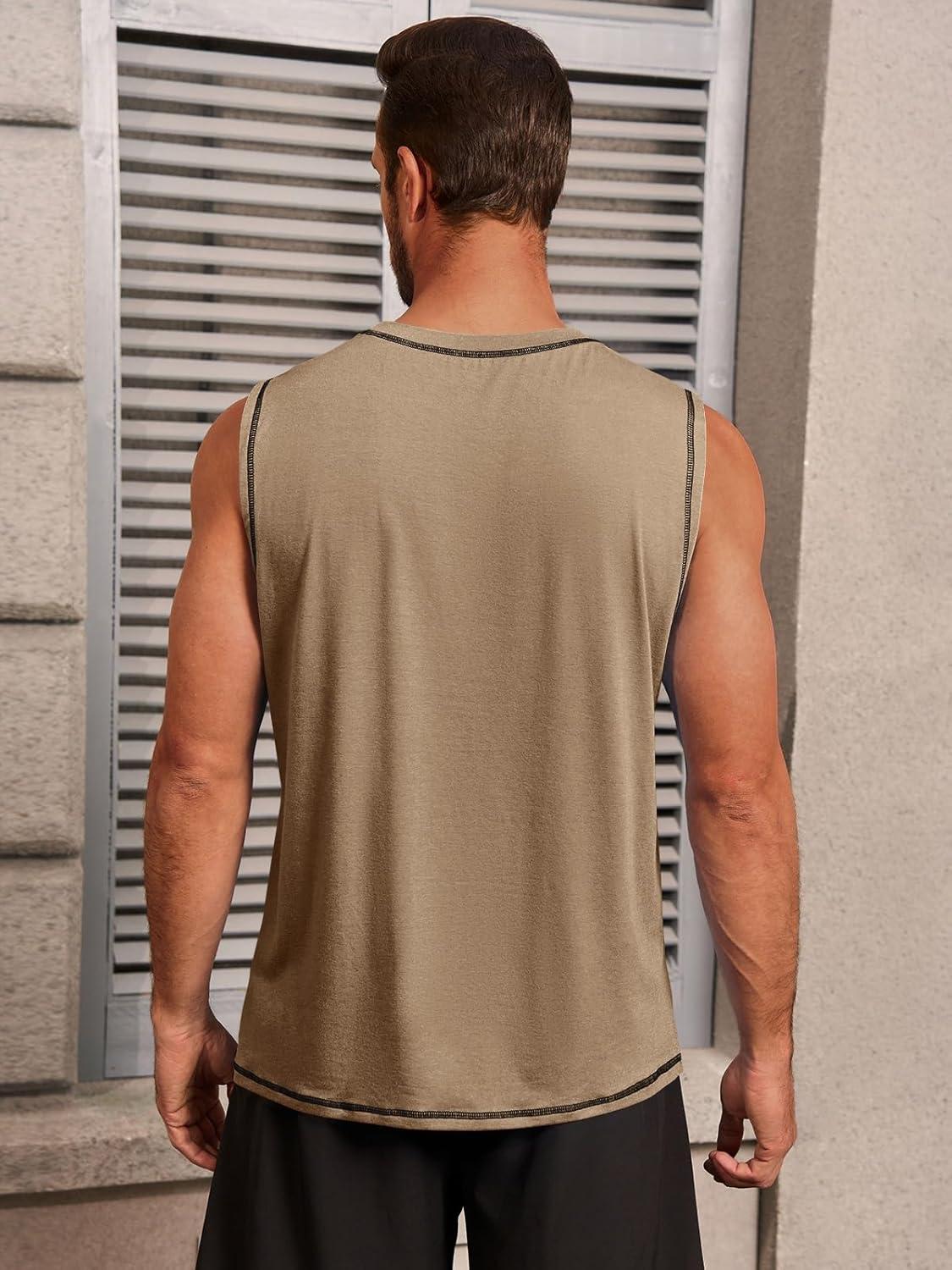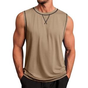Runcati Mens Workout Tank Tops Sleeveless Casual Crewneck Beach T Shirt Muscle Athletic Gym Running Tee(Khaki)