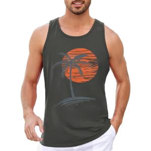 Runcati Mens Workout Tank Tops Gym Sleeveless Shirts Palm Tree Vintage Style T-Shirt(Grey)