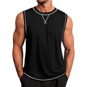 Runcati Mens Workout Tank Tops Sleeveless Casual Crewneck Beach T Shirt Muscle Athletic Gym Running Tee(Black)