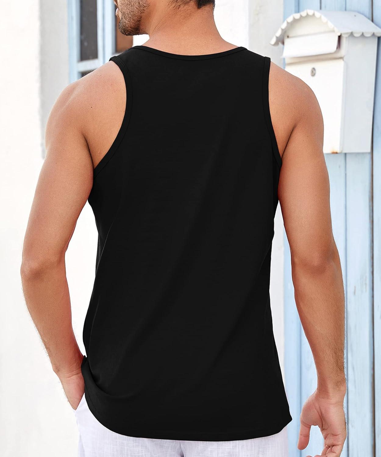 Runcati Mens Workout Tank Tops Sleeveless Gym Muscle Athletic T Shirts Casual Summer Beach Tops(Black)
