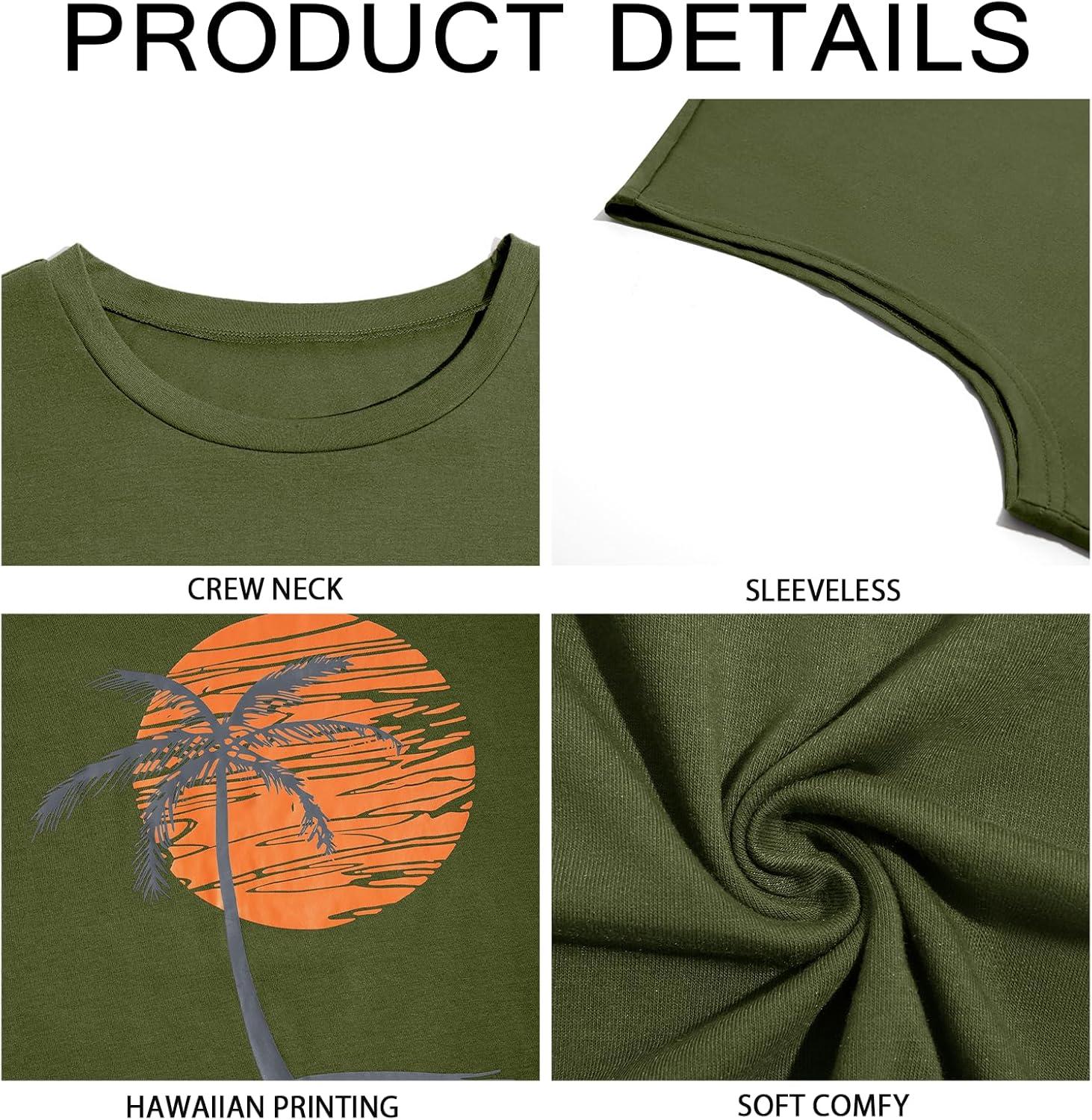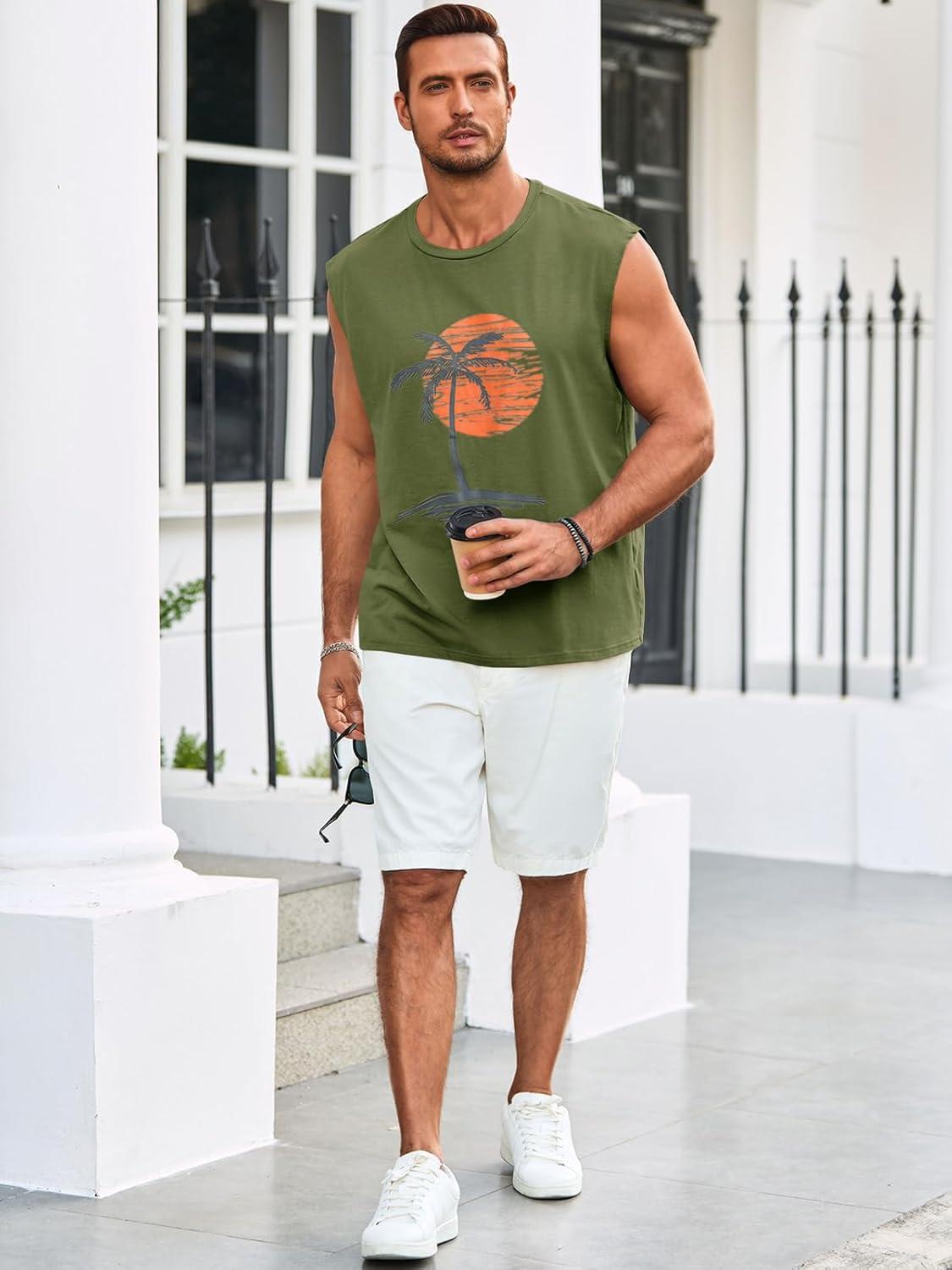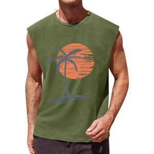 Runcati Mens Sleeveless Tank Tops Workout Gym Muscle Shirts Palm Tree Vintage Hawaiian Summer Beach T Shirts(Army Green)