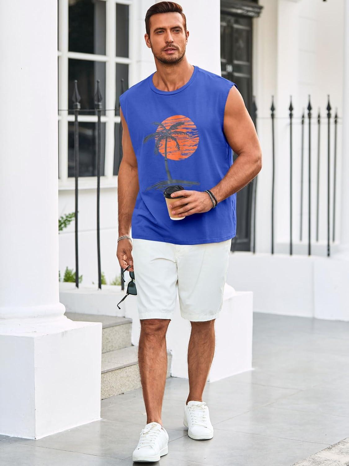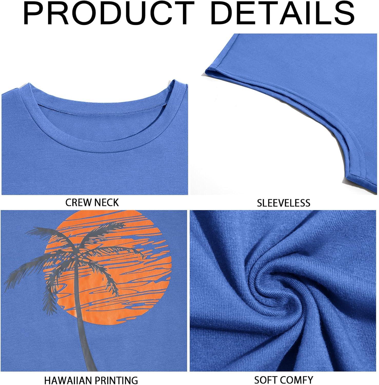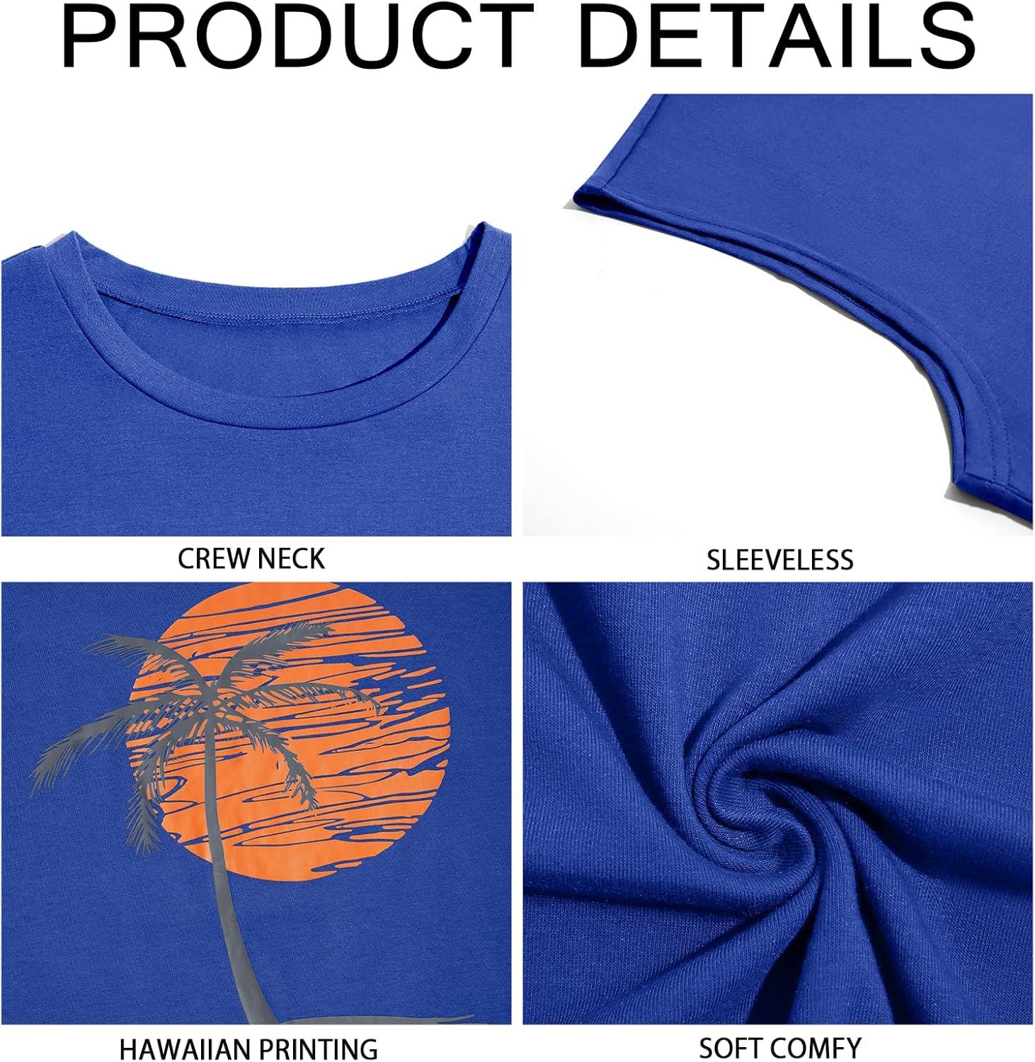 Runcati Mens Sleeveless Tank Tops Workout Gym Muscle Shirts Palm Tree Vintage Hawaiian Summer Beach T Shirts(Blue)