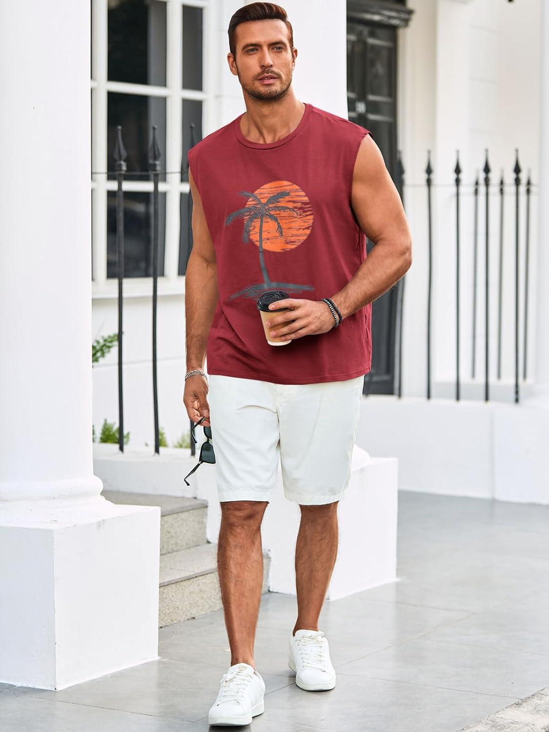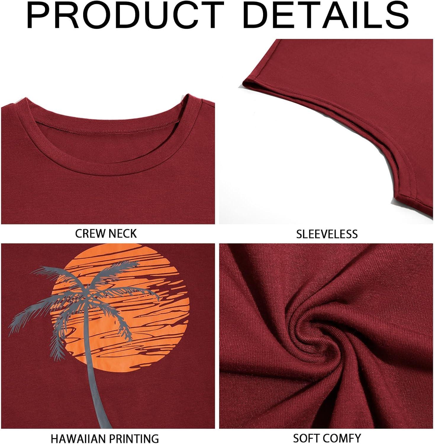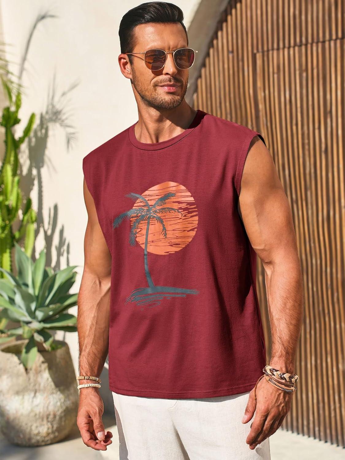 Runcati Mens Sleeveless Tank Tops Workout Gym Muscle Shirts Palm Tree Vintage Hawaiian Summer Beach T Shirts(Red)