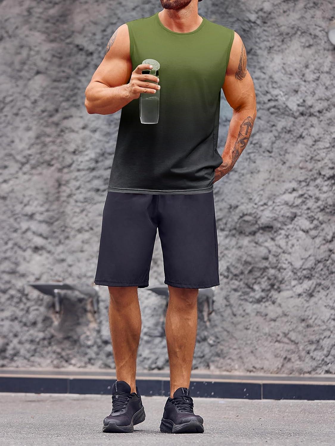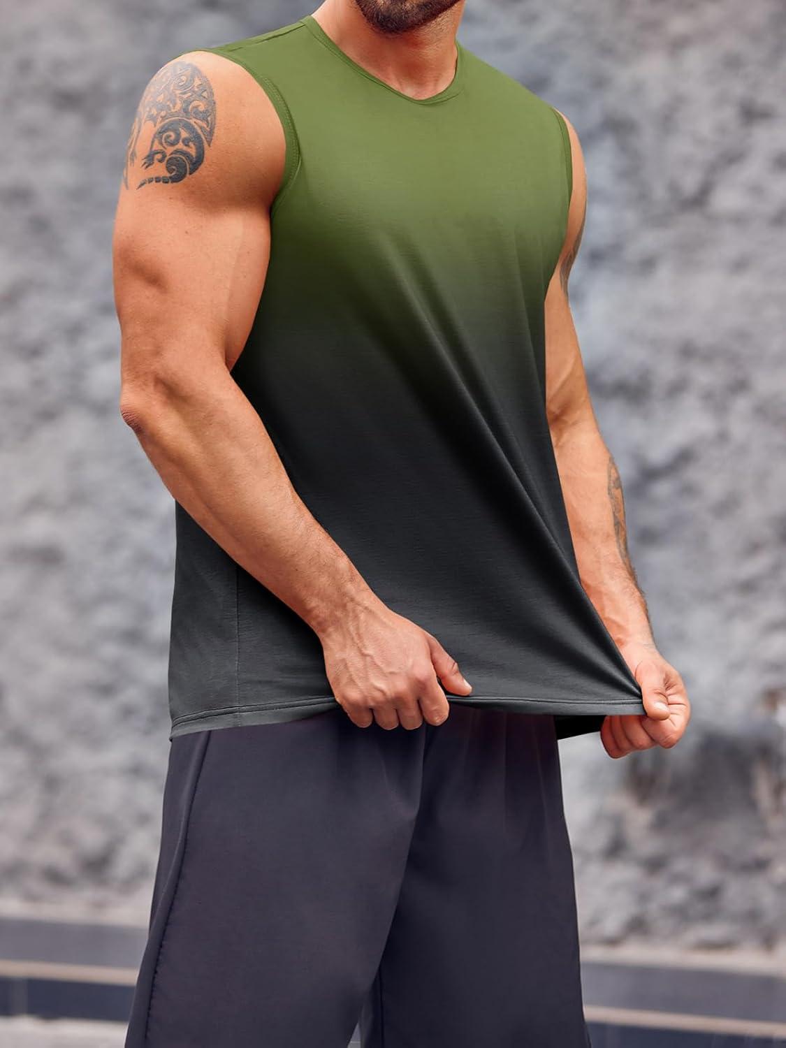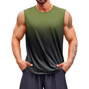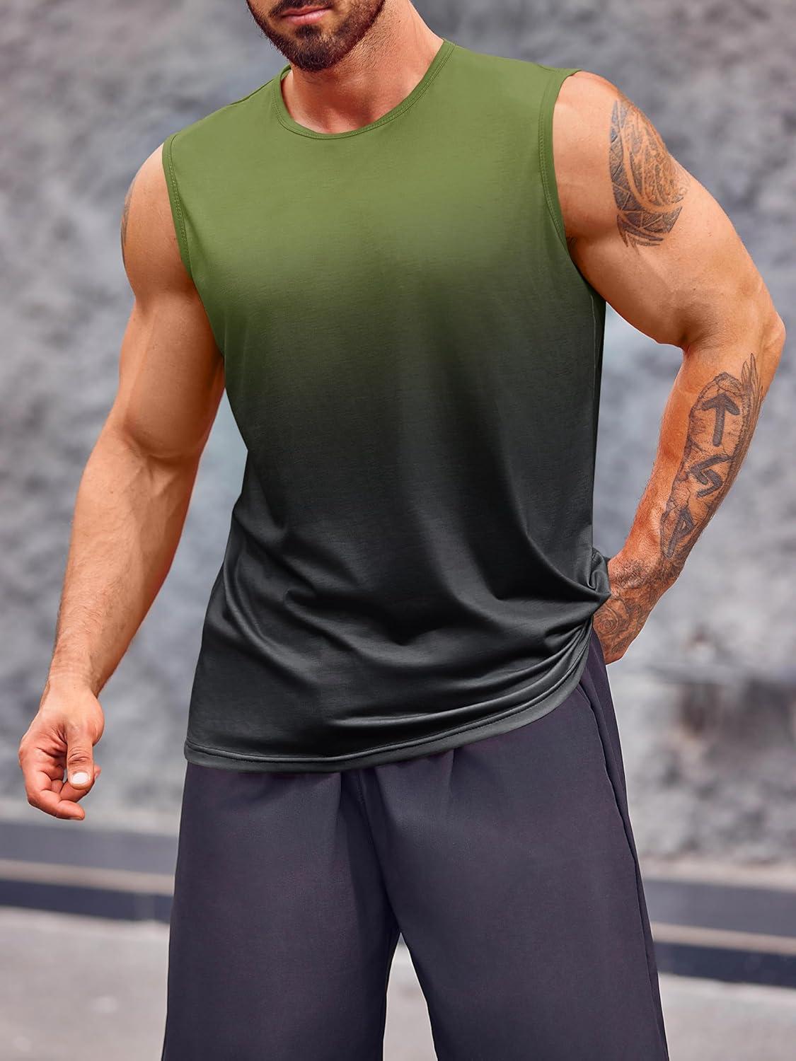 Runcati Mens Sleeveless Tank Tops Workout Muscle Gym T Shirts Crew Neck Gradient Tee Tops(Army Green)