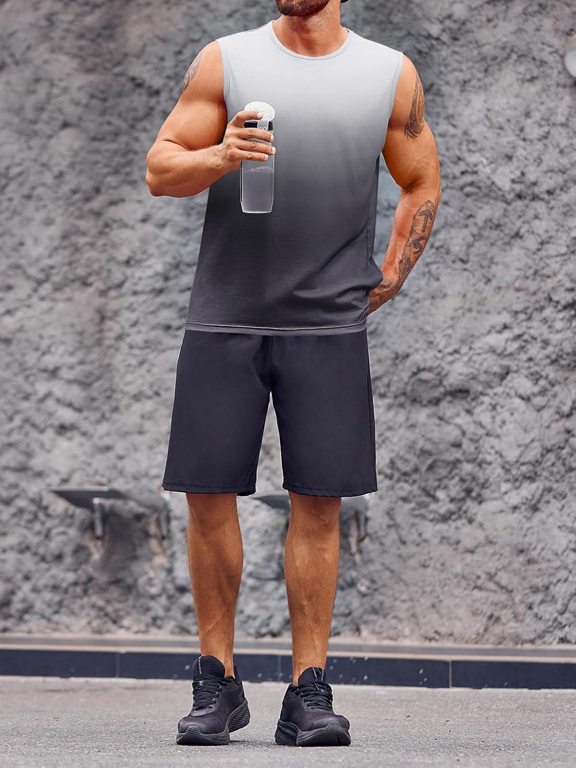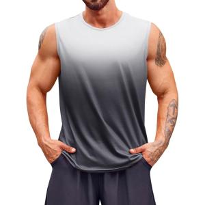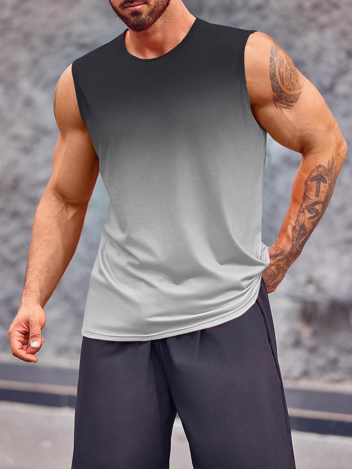 Runcati Mens Sleeveless Tank Tops Workout Muscle Gym T Shirts Crew Neck Gradient Tee Tops(Light Grey)