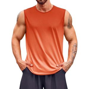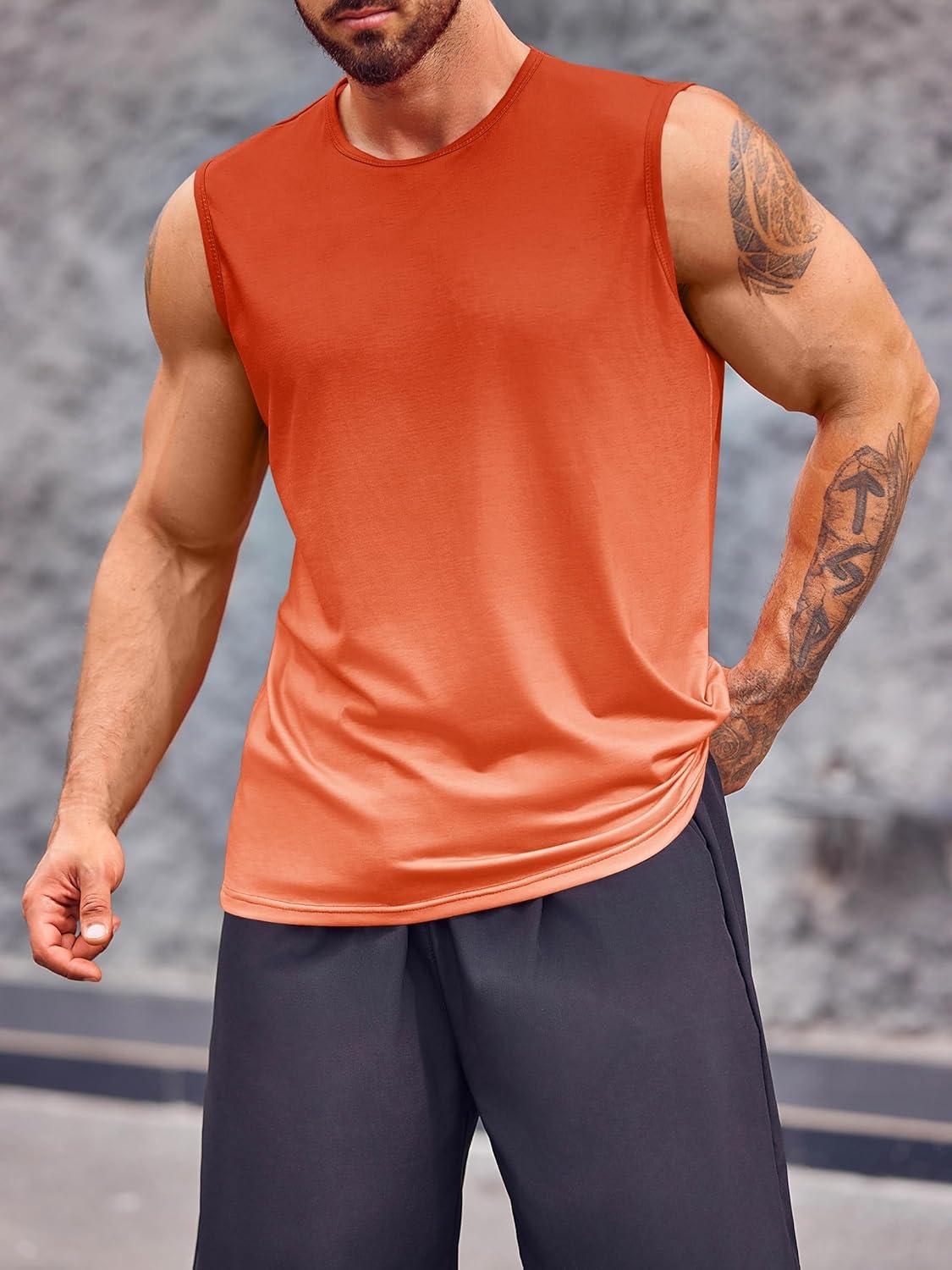 Runcati Mens Sleeveless Tank Tops Workout Muscle Gym T Shirts Crew Neck Gradient Tee Tops(Orange)
