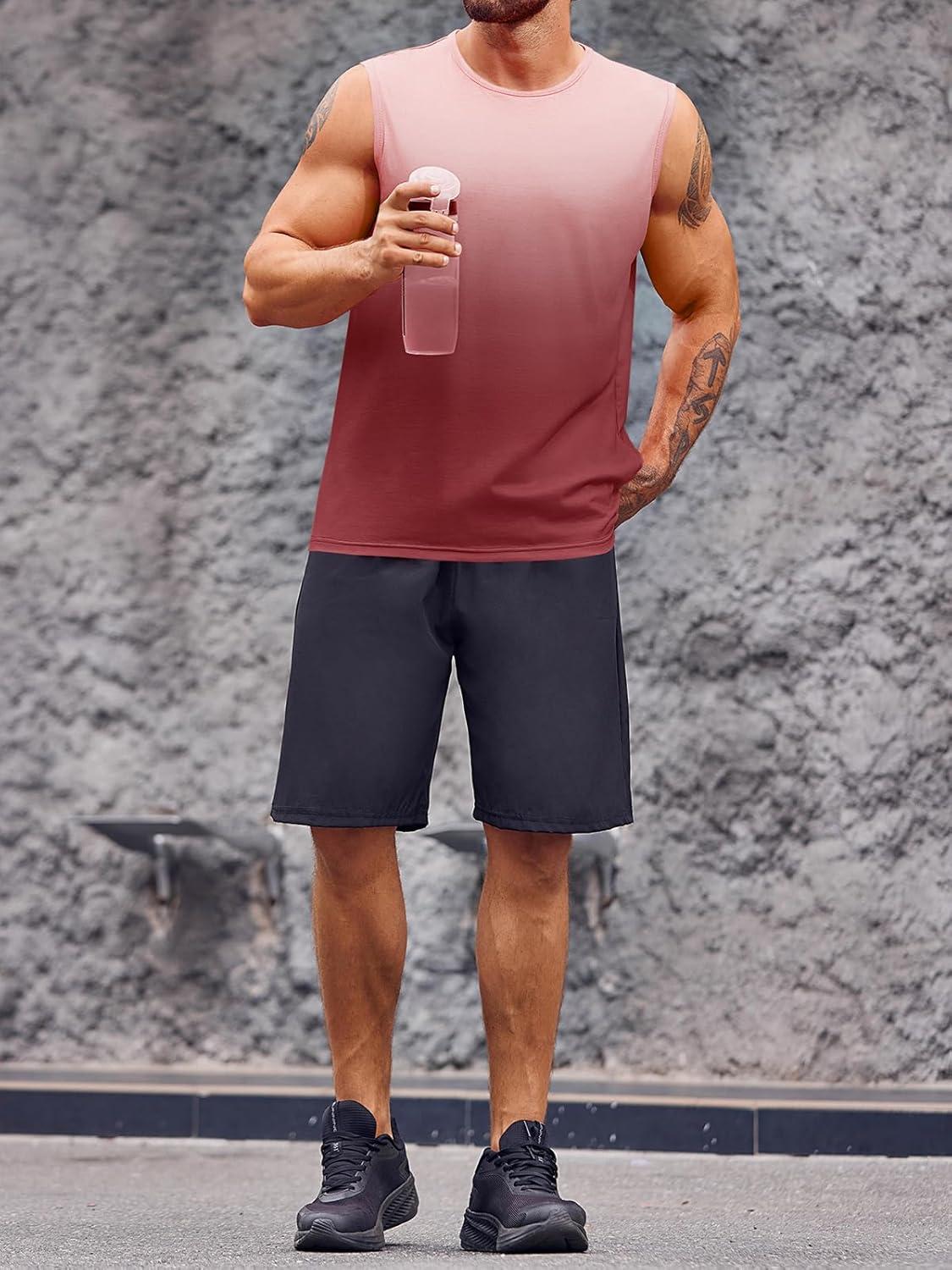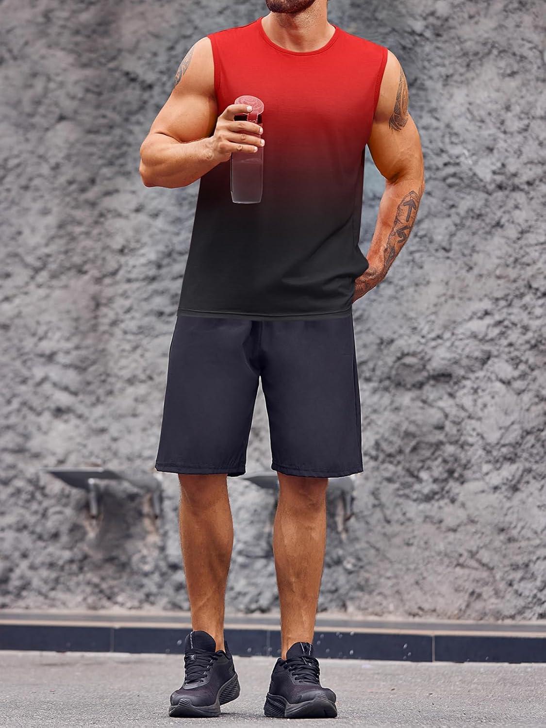Runcati Mens Sleeveless Tank Tops Workout Muscle Gym T Shirts Crew Neck Gradient Tee Tops(Red)