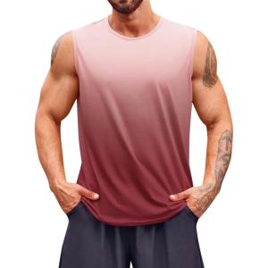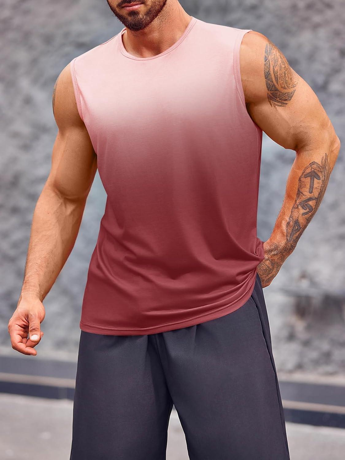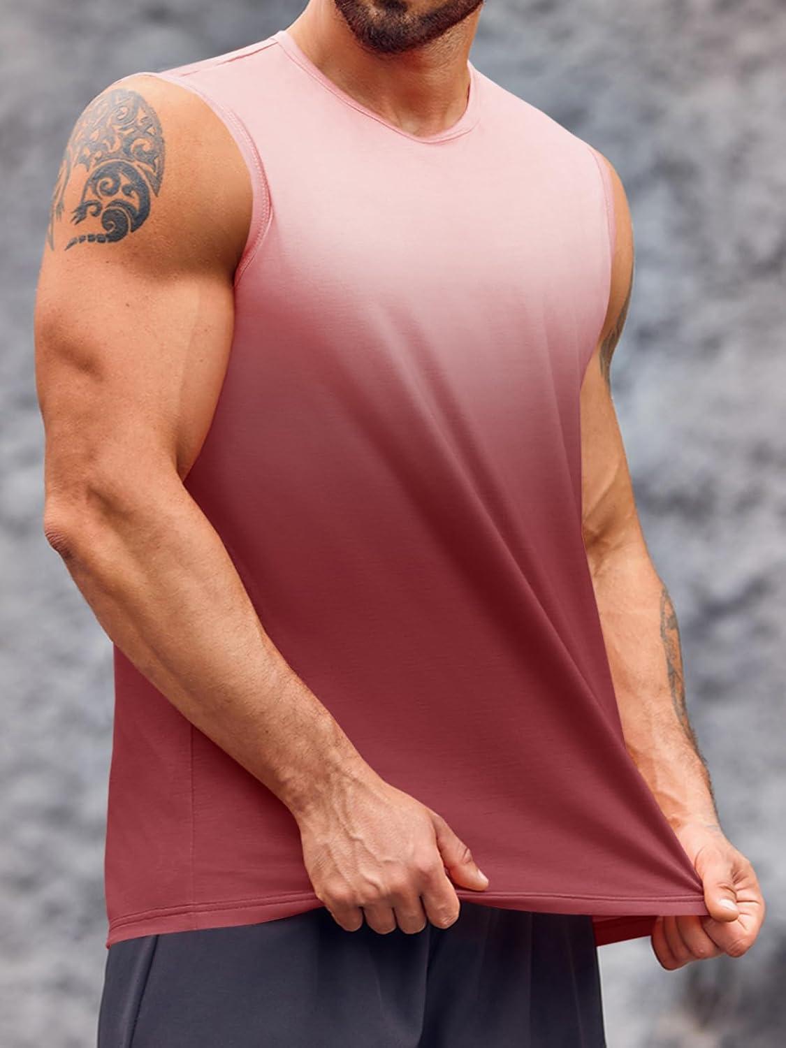 Runcati Mens Sleeveless Tank Tops Workout Muscle Gym T Shirts Crew Neck Gradient Tee Tops(Wine Red)