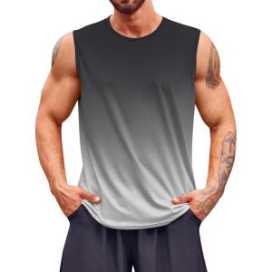 Runcati Mens Sleeveless Tank Tops Workout Muscle Gym T Shirts Crew Neck Gradient Tee Tops(Black)