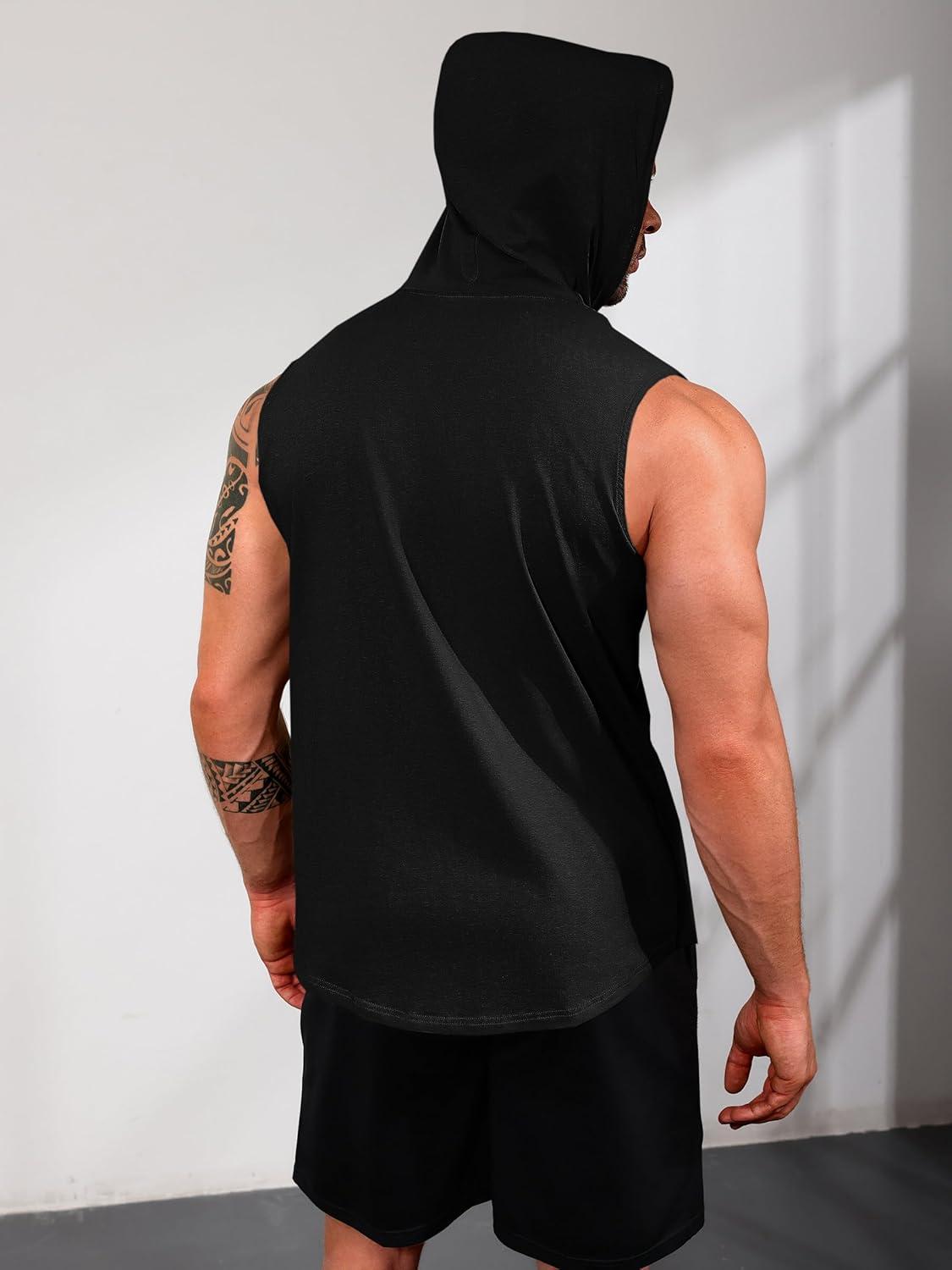 Runcati Mens Sleeveless Hoodies Workout Hooded Tank Tops Muscle Gym Bodybuilding Fitness Training T Shirts(Black)