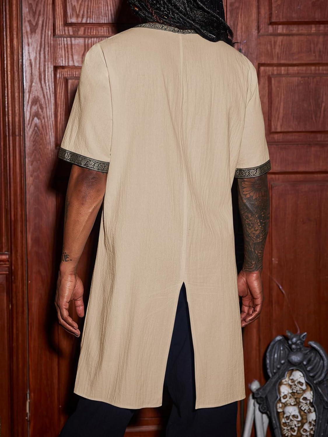Runcati Mens Medieval Pirate Costume Tunic Renaissance Knight Warrior Viking LARP Halloween Tops(A-light Khaki)