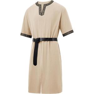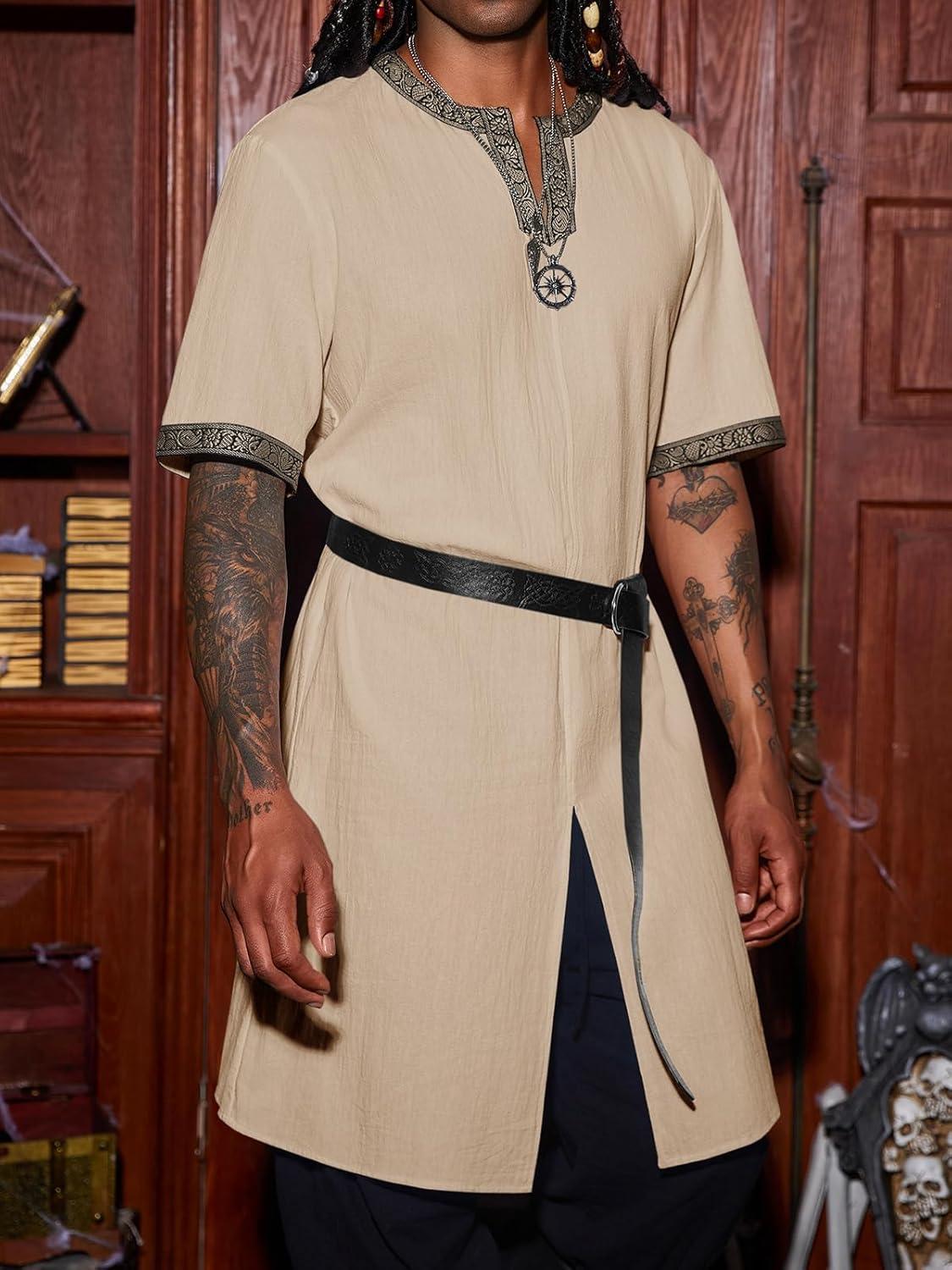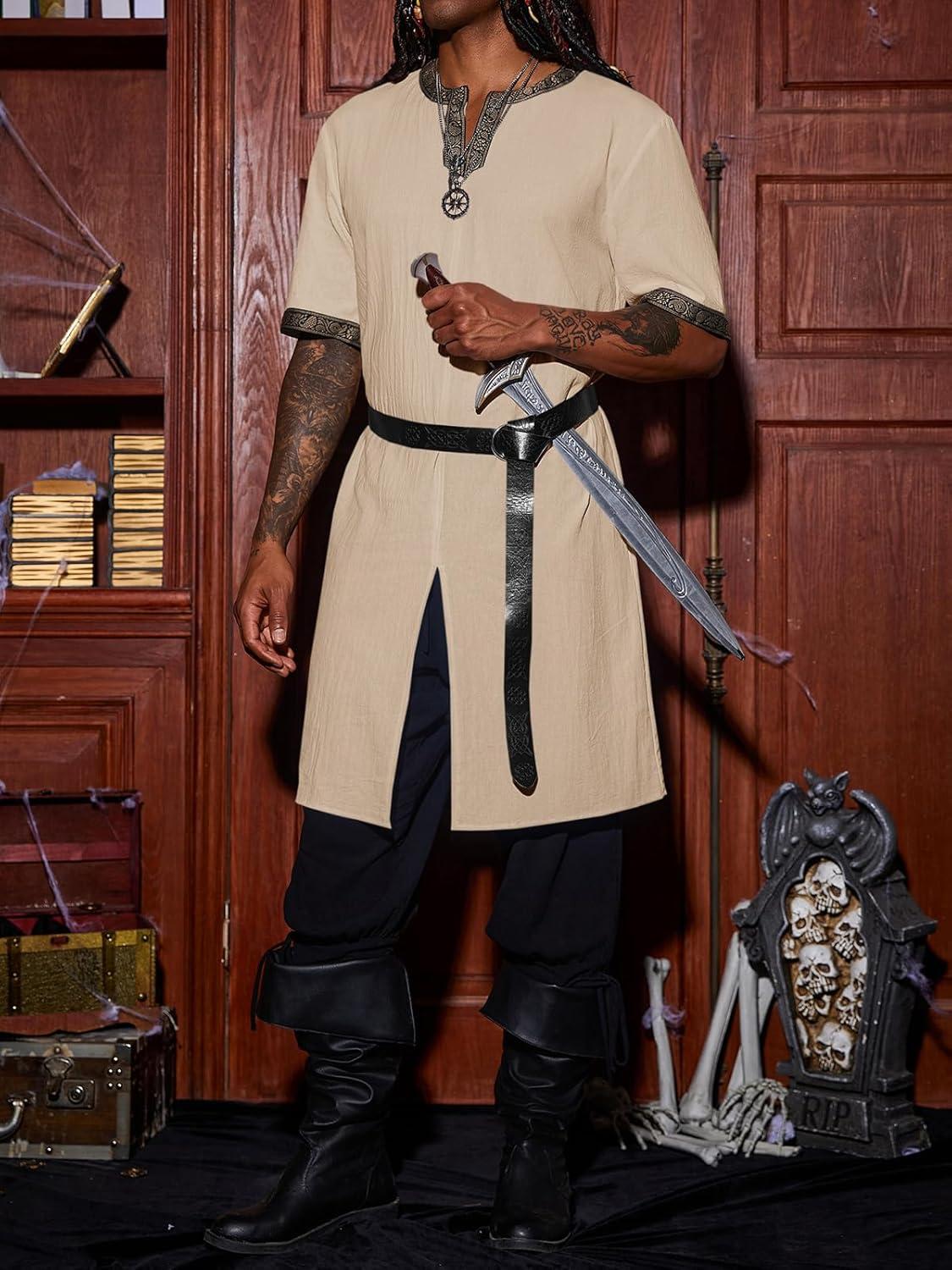• Runcati Mens Medieval Pirate Costume Tunic Renaissance Knight Warrior Viking LARP Halloween Tops(A-light Khaki)