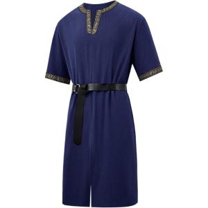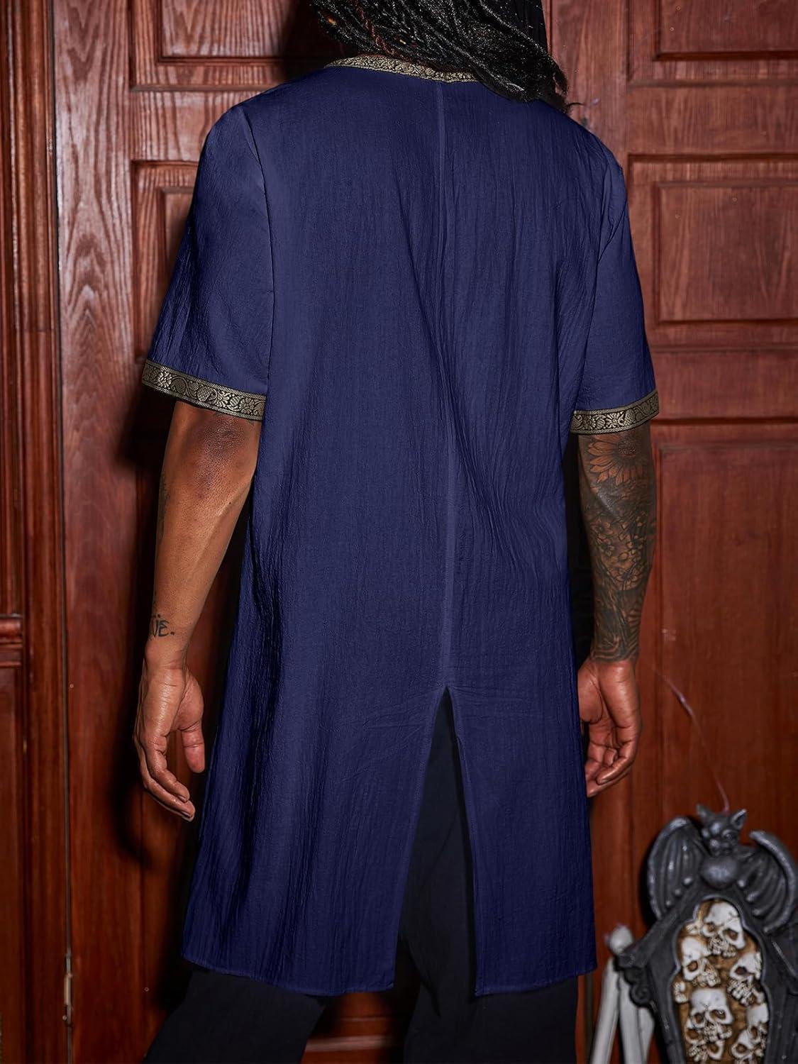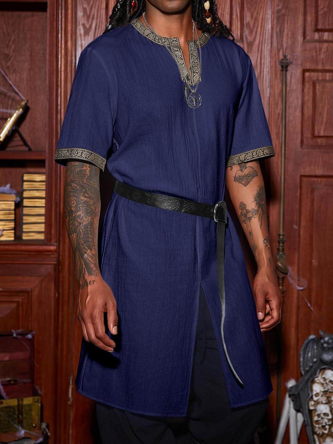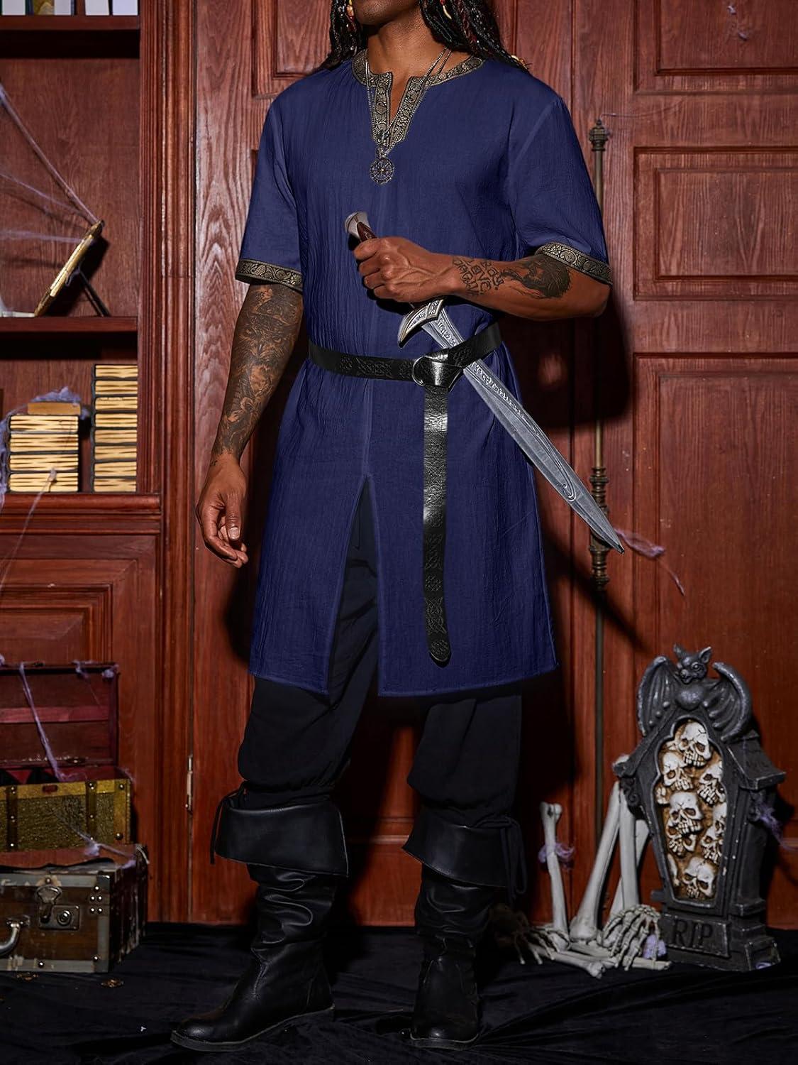• Runcati Mens Medieval Pirate Costume Tunic Renaissance Knight Warrior Viking LARP Halloween Tops(A-navy)