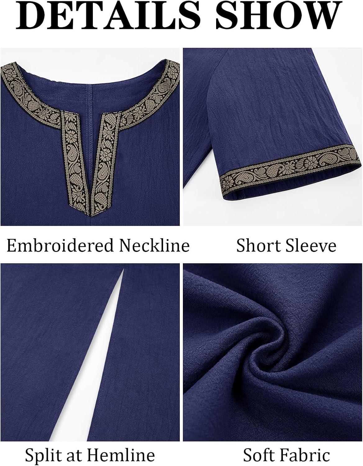 Runcati Mens Medieval Pirate Costume Tunic Renaissance Knight Warrior Viking LARP Halloween Tops(A-navy)