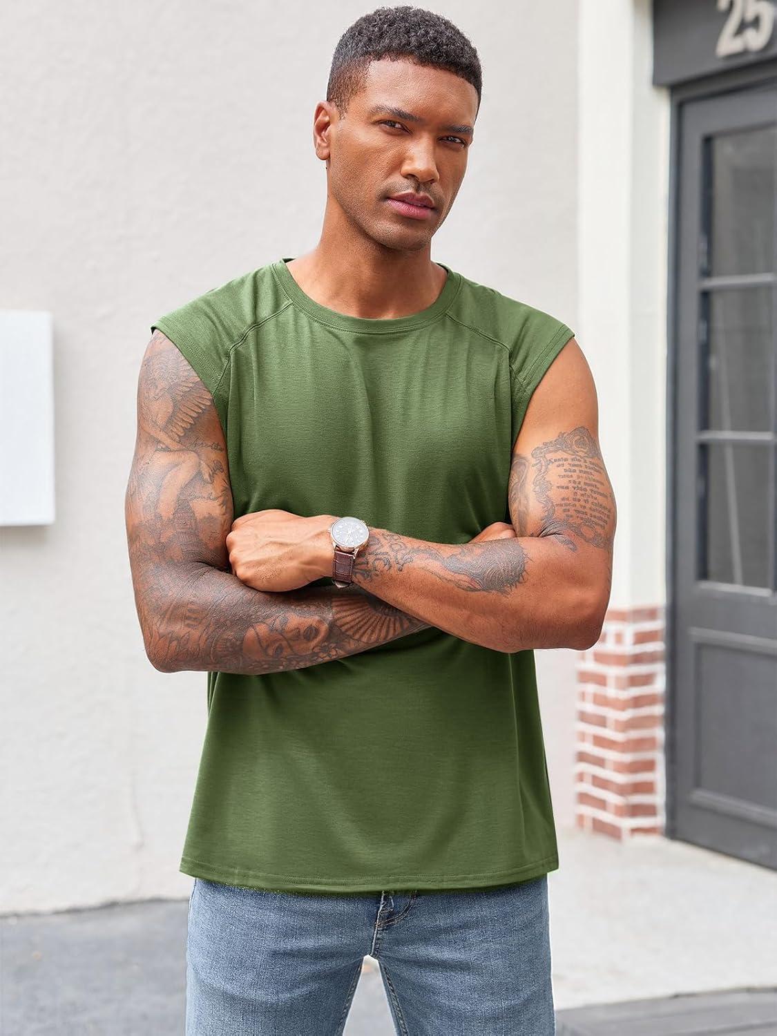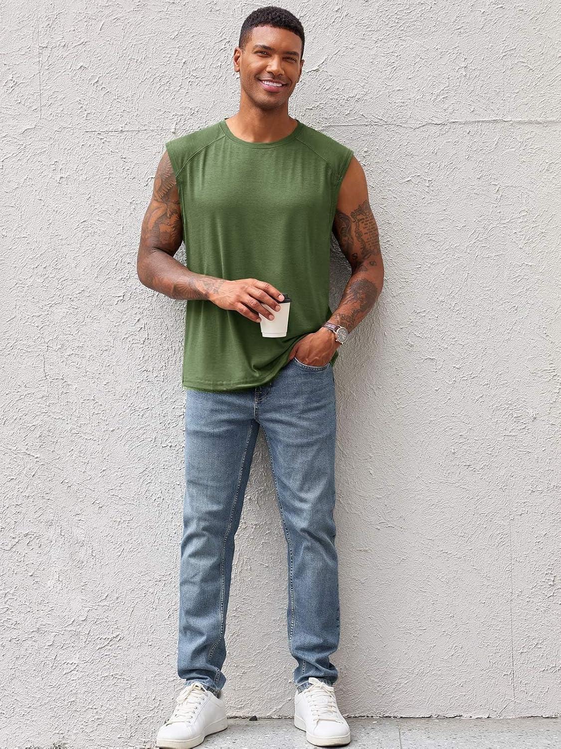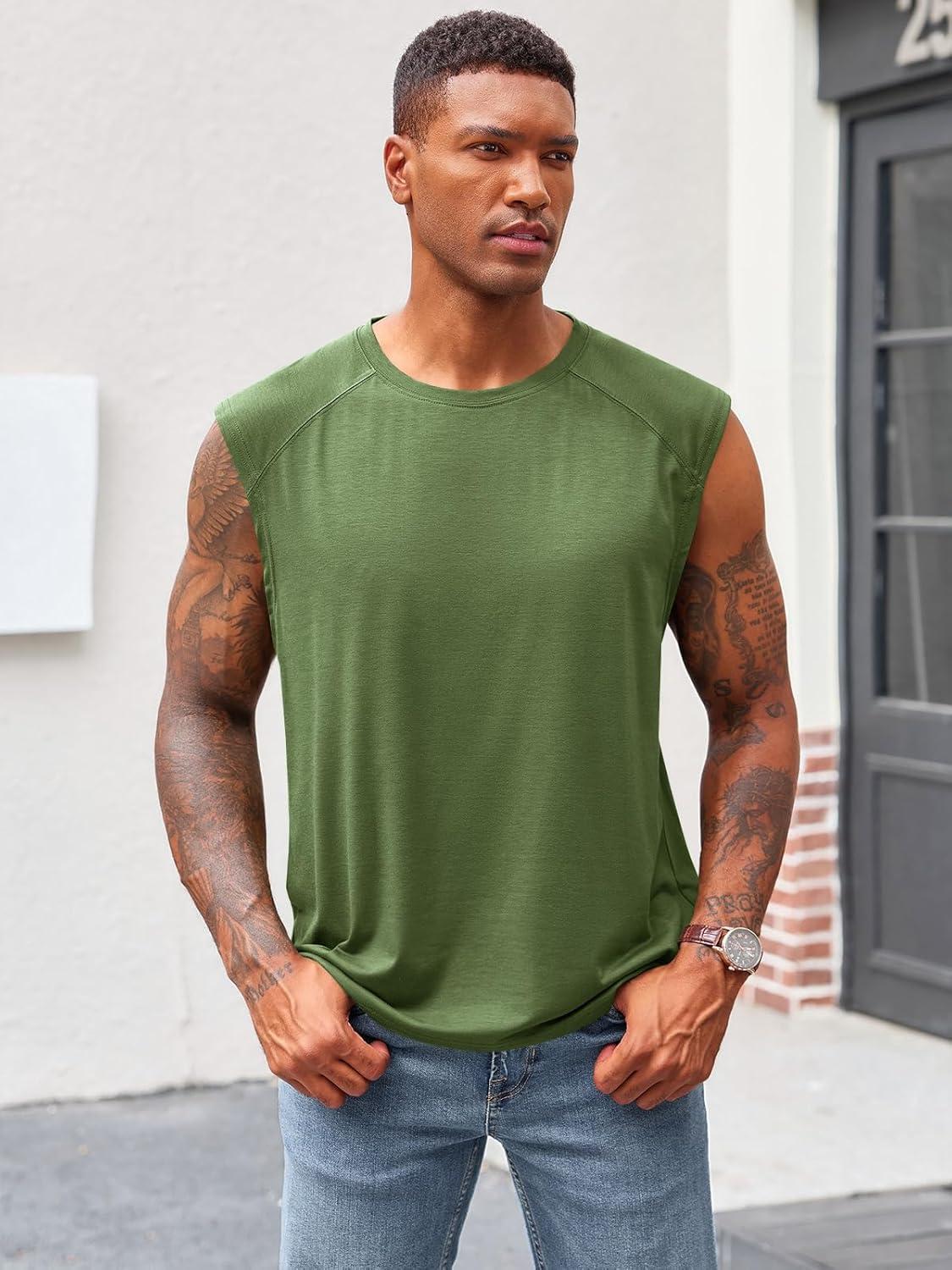 Runcati Mens Sleeveless Tank Tops Workout Cut Off Shirt Athletic Muscle Gym T Shirts(Army Green)