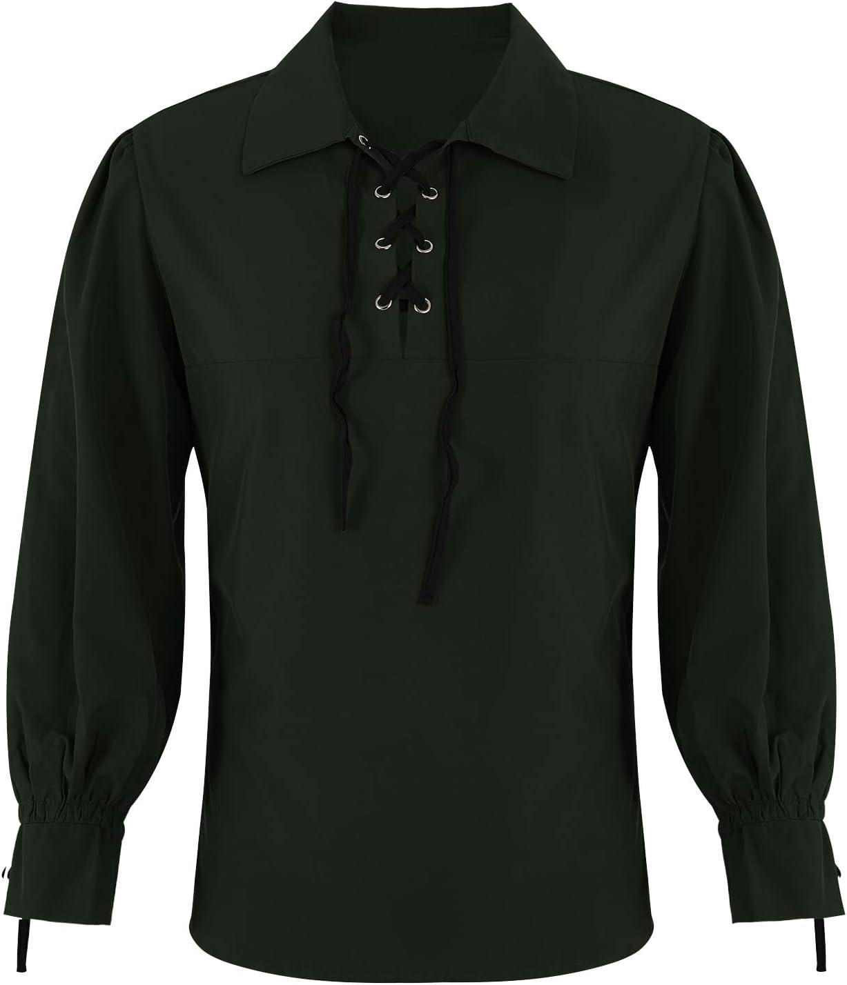 Mens Medieval Pirate Shirt Viking Renaissance Lace up Mercenary Halloween Scottish Jacobite Ghillie Tops(01 Army Green)