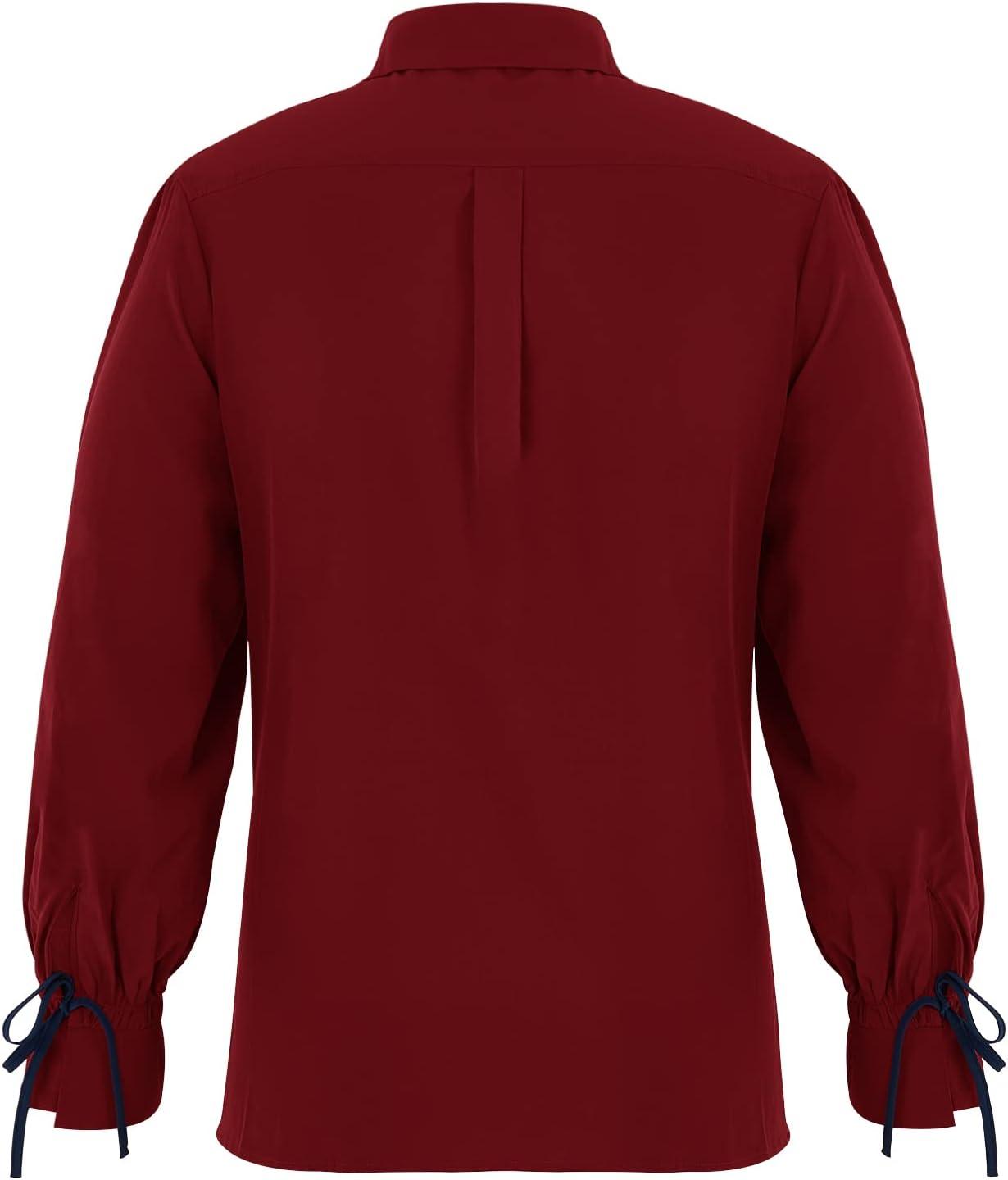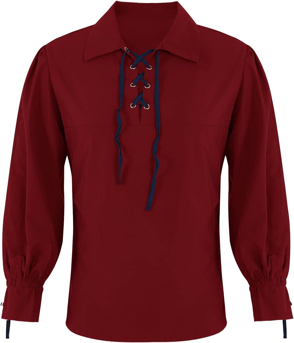 Mens Medieval Pirate Shirt Viking Renaissance Lace up Mercenary Halloween Scottish Jacobite Ghillie Tops(01 Red)